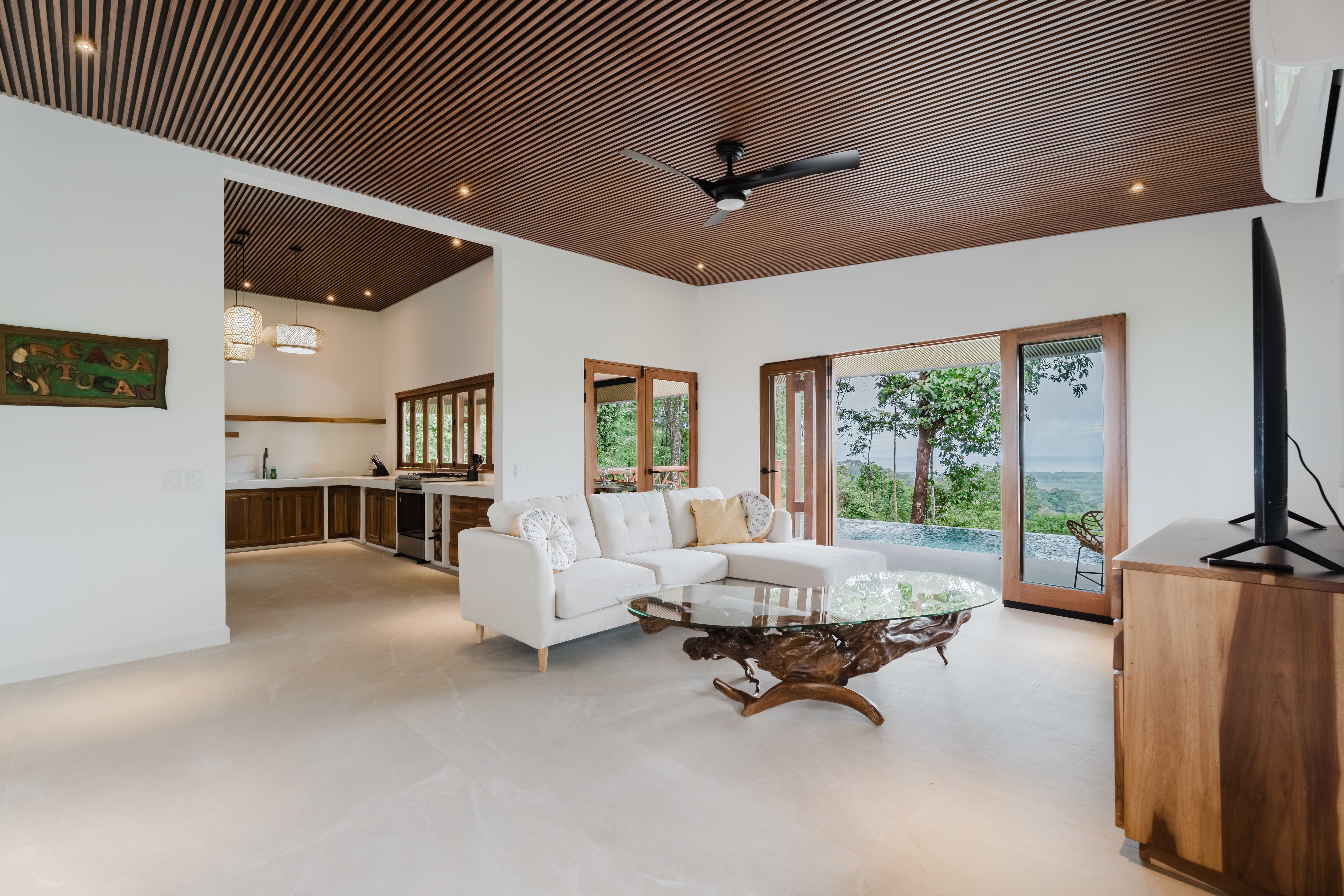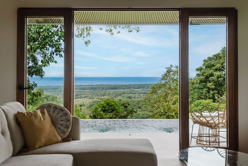Welcome to Casa Tucán; nestled in a private gated community in the lush mountains of Portasol, this breathtaking modern contemporary home offers a perfect blend of luxury and nature. This ocean view villa features panoramic vistas of the ocean and has its own private nature trail to a spring fed river with waterfalls bordering this property and minutes to the beach! This property could easily be expanded into a family compound!
