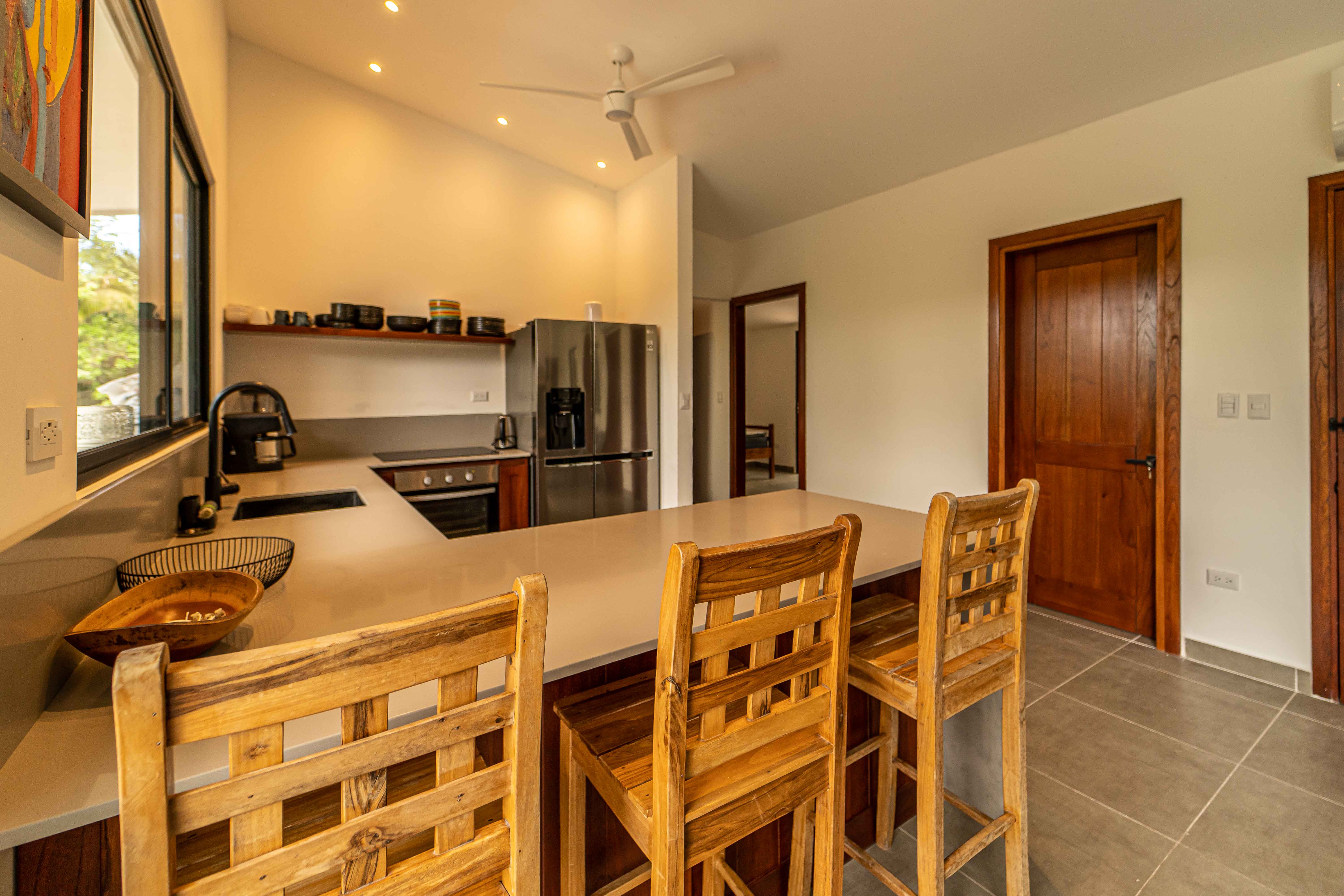 One of the highlights of Casa Guanacastes is the large front deck, complete with a refreshing pool and awe-inspiring views of the majestic mountains. Whether you're taking a dip in the pool or simply basking in the warm tropical sun, this outdoor oasis is a true haven of tranquility. Additionally, the property offers two smaller decks that overlook the lush jungle, providing a serene backdrop for your morning coffee or evening gatherings.