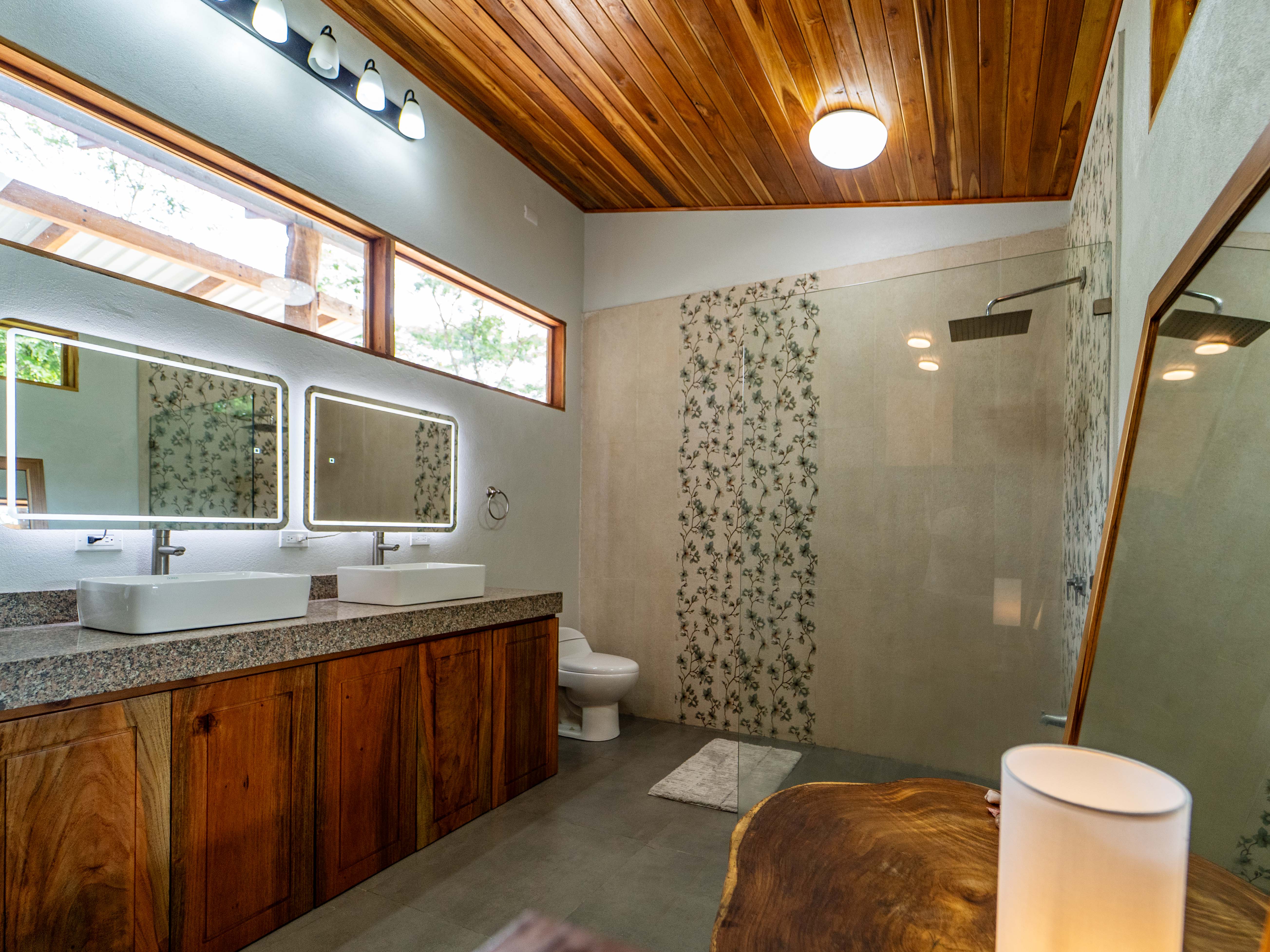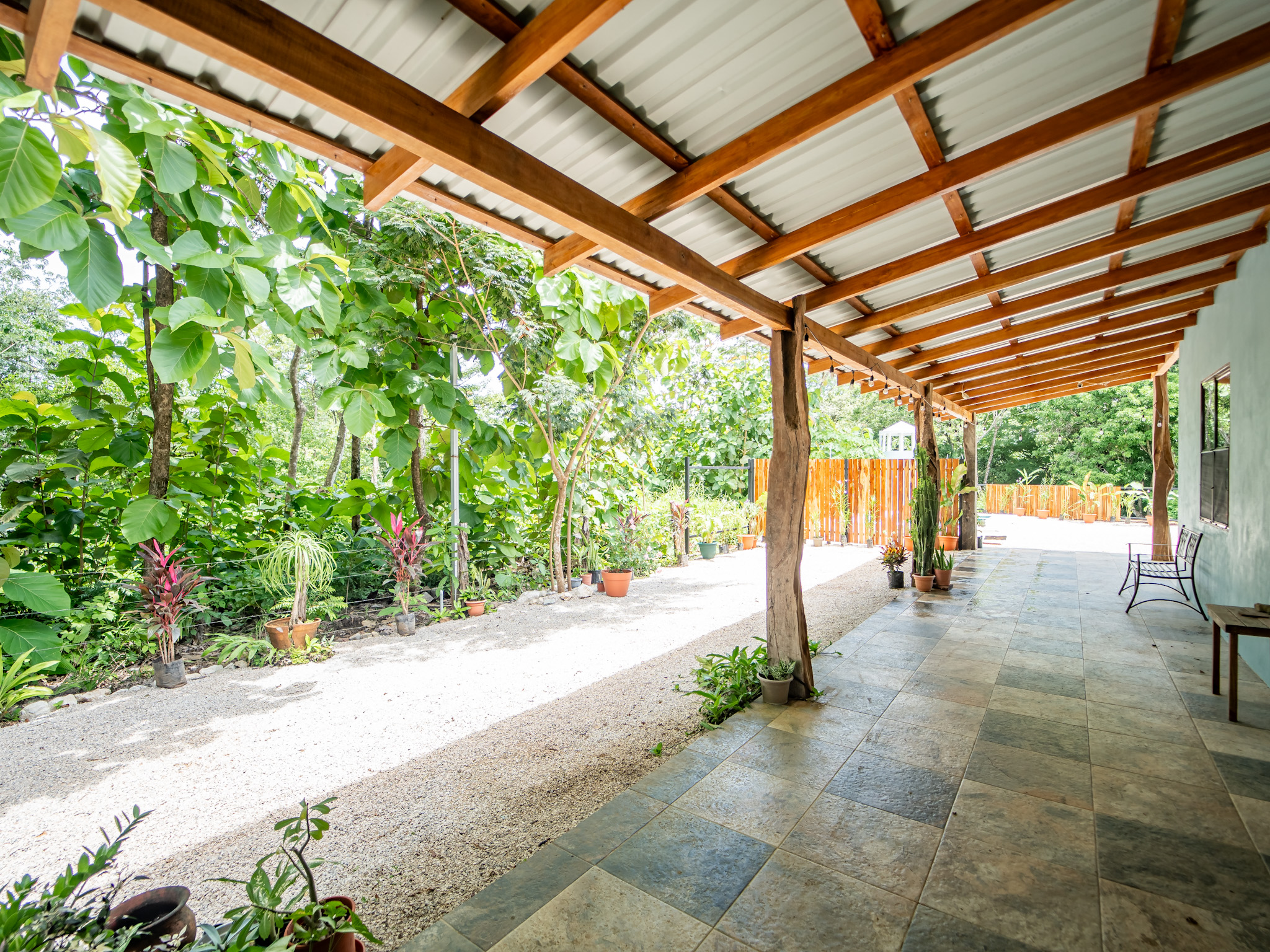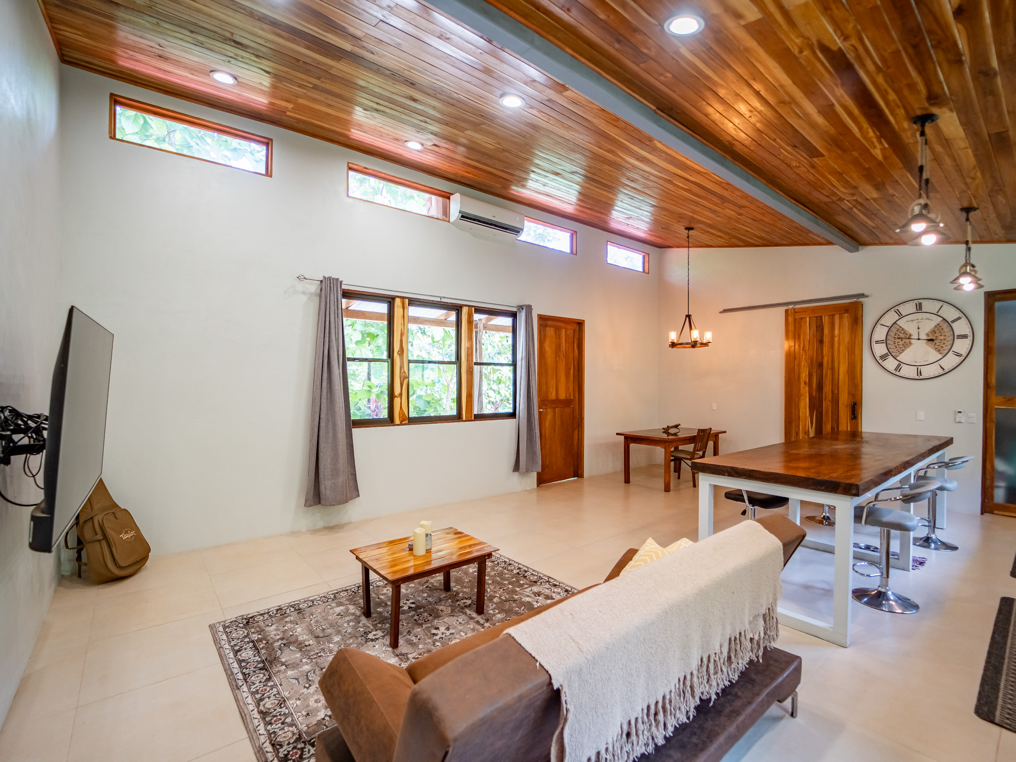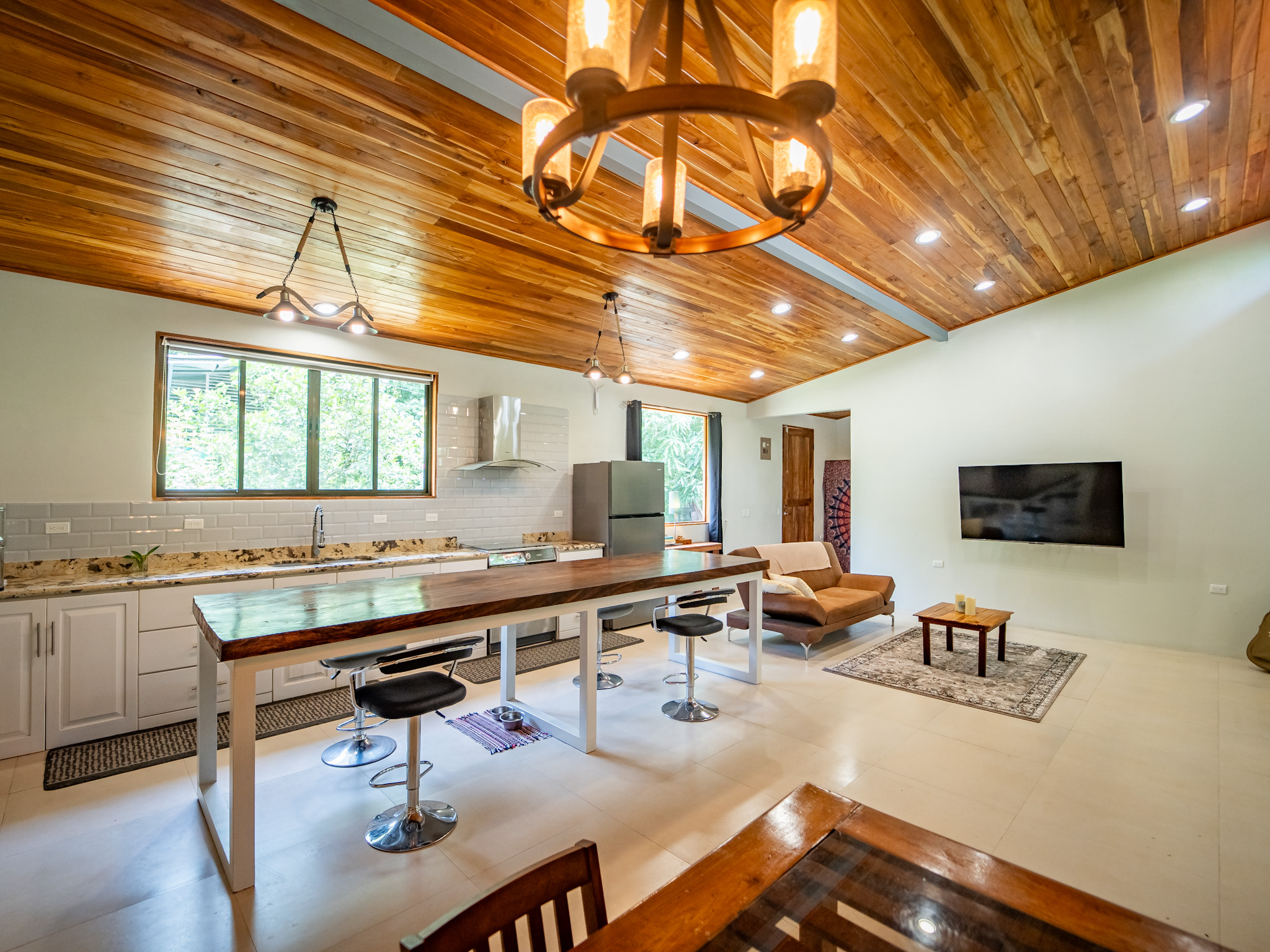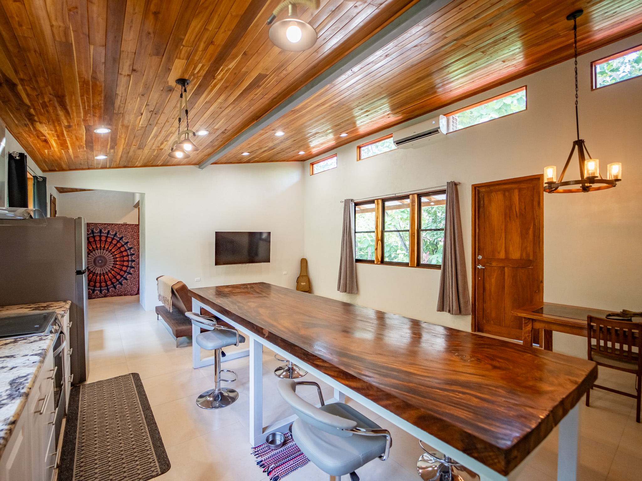 Set on a 792 m² lot with 250 m² under roof, Casa El Faro features high teak ceilings, a spacious open-concept layout, and lush landscaping. The modern kitchen is the heart of the home, featuring a stunning 3.5-meter center island crafted from Monkeypod wood and a full induction stovetop and oven. The bright living area connects to a large, fully covered outdoor deck that runs the length of the house—ideal for relaxing, entertaining, or enjoying the surrounding nature. The house is partially furnished and is shown with some tenant-owned items. A full inventory list is available.