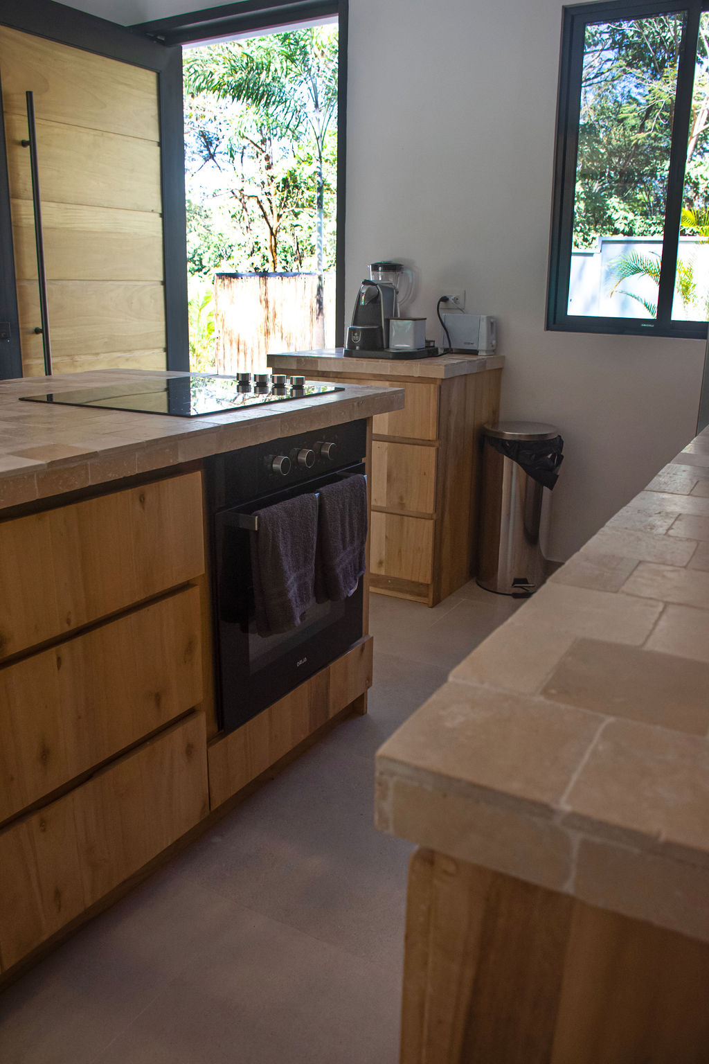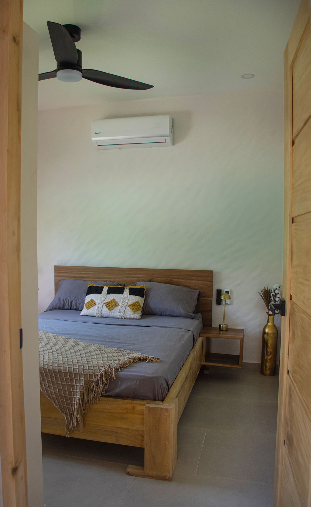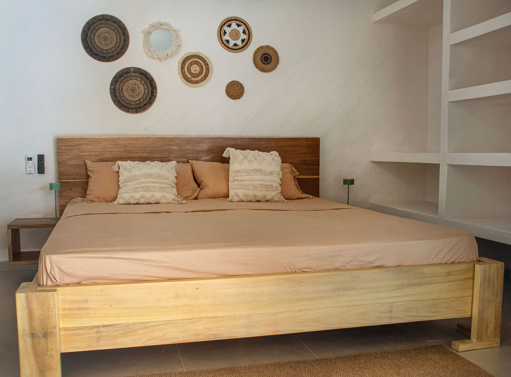 The property features air-conditioned interiors, a private swimming pool, a charming garden, and a large mature Guanacaste tree adding shade and character. Outdoor spaces are designed for comfort and relaxation.