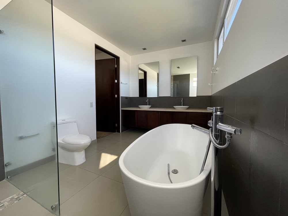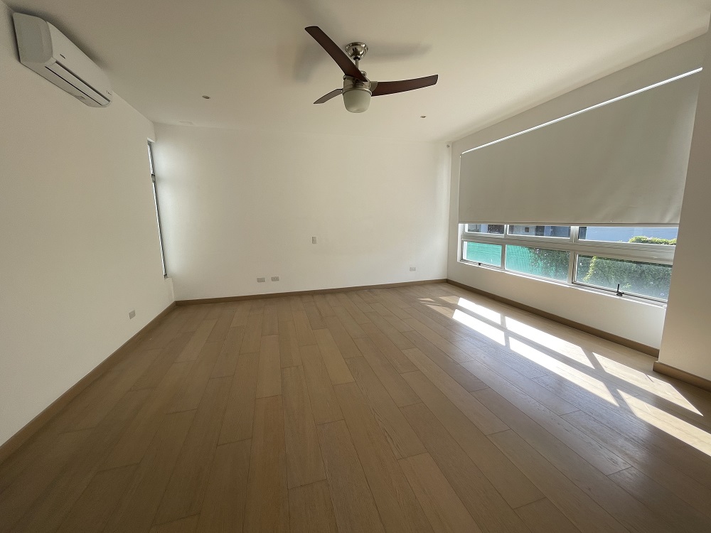 En el segundo nivel el ala este esta dedicada a la alcoba principal, muy amplia con walkin-closet y un baños muy espacioso de con doble lavatorio, ducha y tina. Algo poco usual de encontrar en casas de este tamaño.