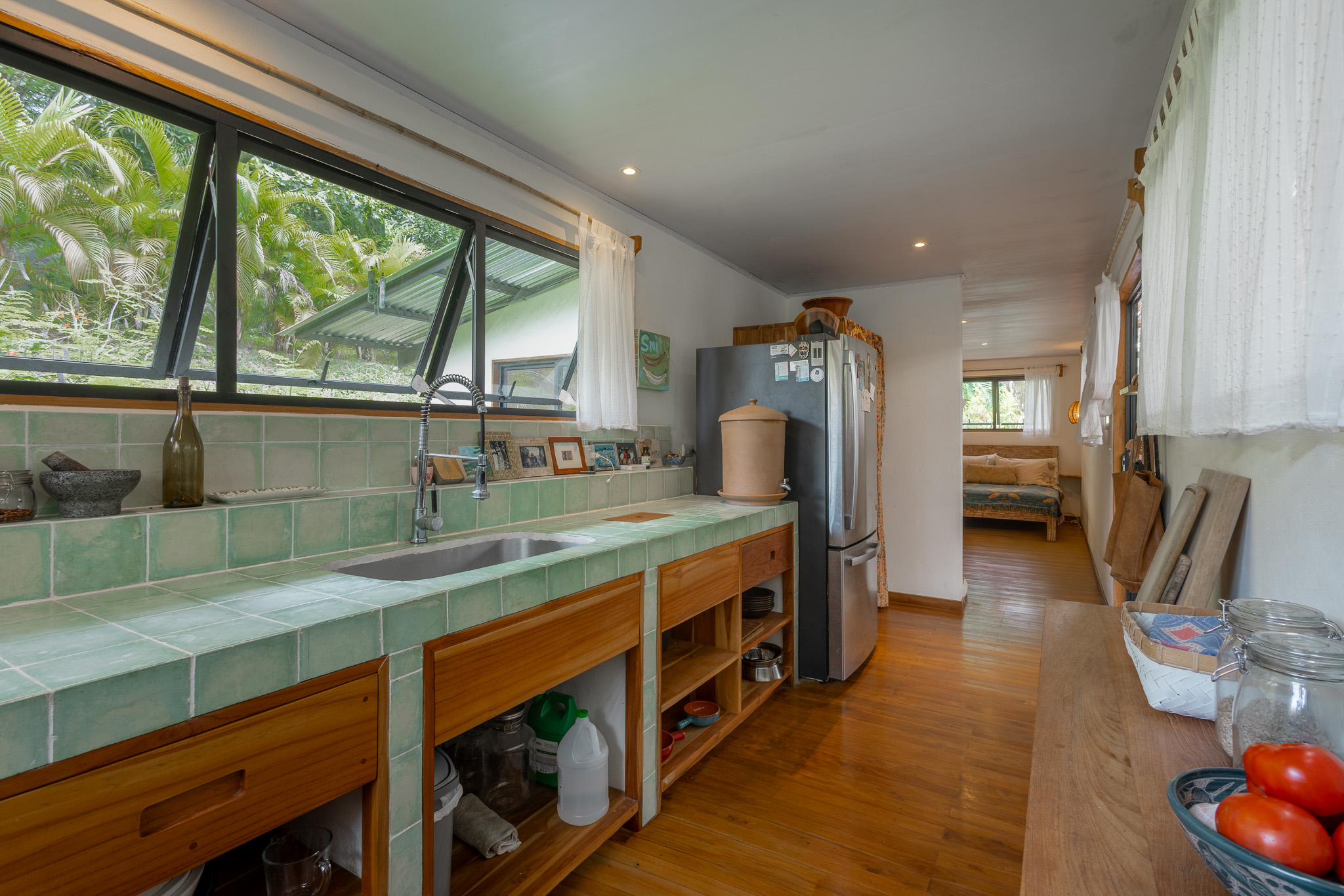 Discover this incredible property, ideally situated on the main road that connects San Isidro with Playa Hermosa. This unique plot features a charming container home with three bedrooms connected with an open space outdoor cozy comfortable lounge area , a kitchen, a bathroom, and a storage room.