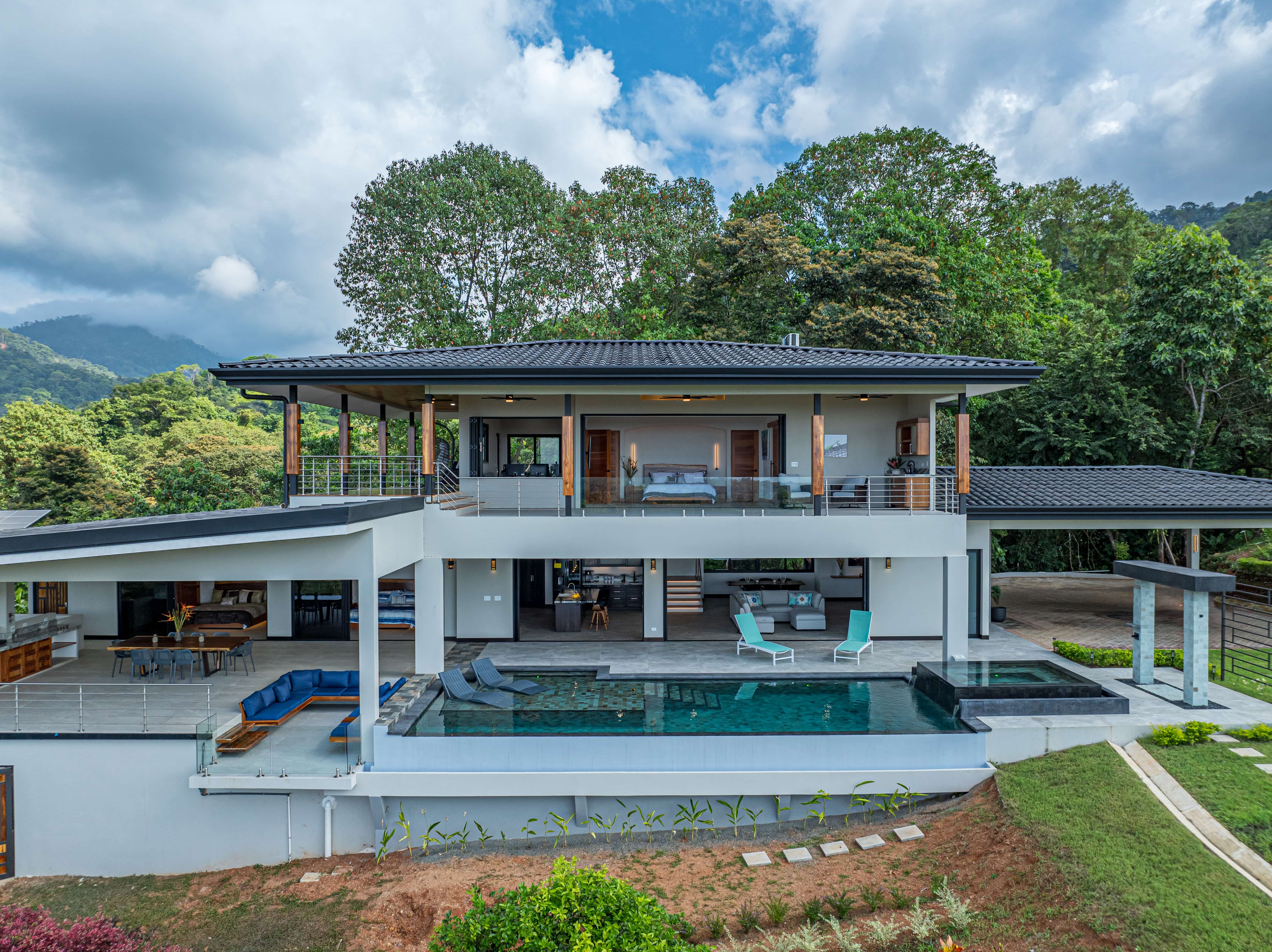 Nestled atop a pristine, forested hillside with uninterrupted ocean panoramas and breathtaking year-round sunsets, The Crystal Shire is a sanctuary of refined living and self-sufficiency. Spanning four acres of lush Costa Rican paradise, this estate seamlessly merges architectural excellence with natural splendor — all within minutes of the coastal highway and the Pez Vela Marina, a hospital, a regional airport, and Manuel Antonio National Park.
