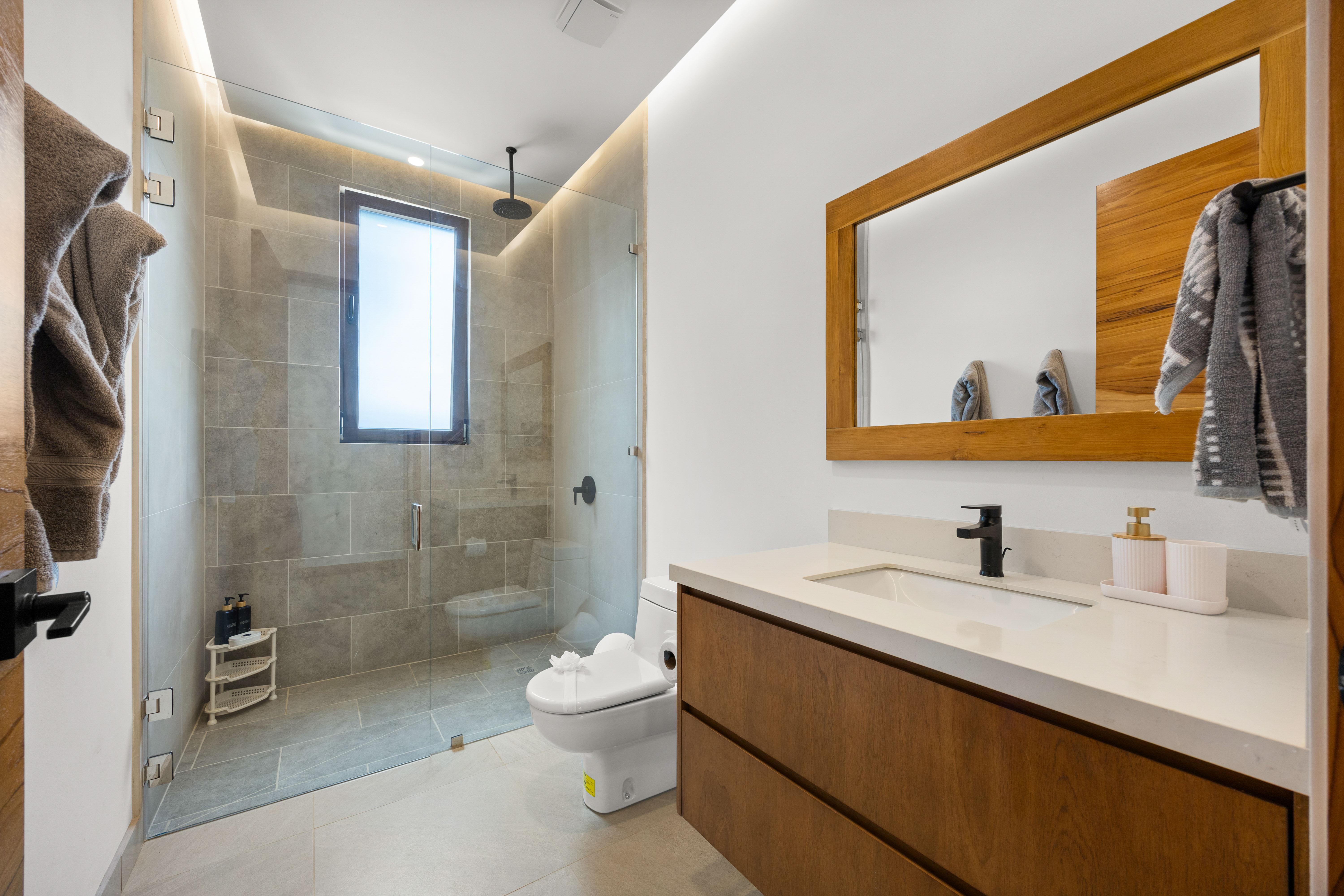 Every house will come with its own pool with sodium hypochlorite water; electricity will be underground. The homes will have high end/quality finishes and materials, such as KOHLER for all bathrooms, Mitsubishi for all AC with 7 year warranty, thermo panels for all roofing and EUROVISTAS insulated windows and movable doors. Buyers are also having the option to choose Furniture packages.