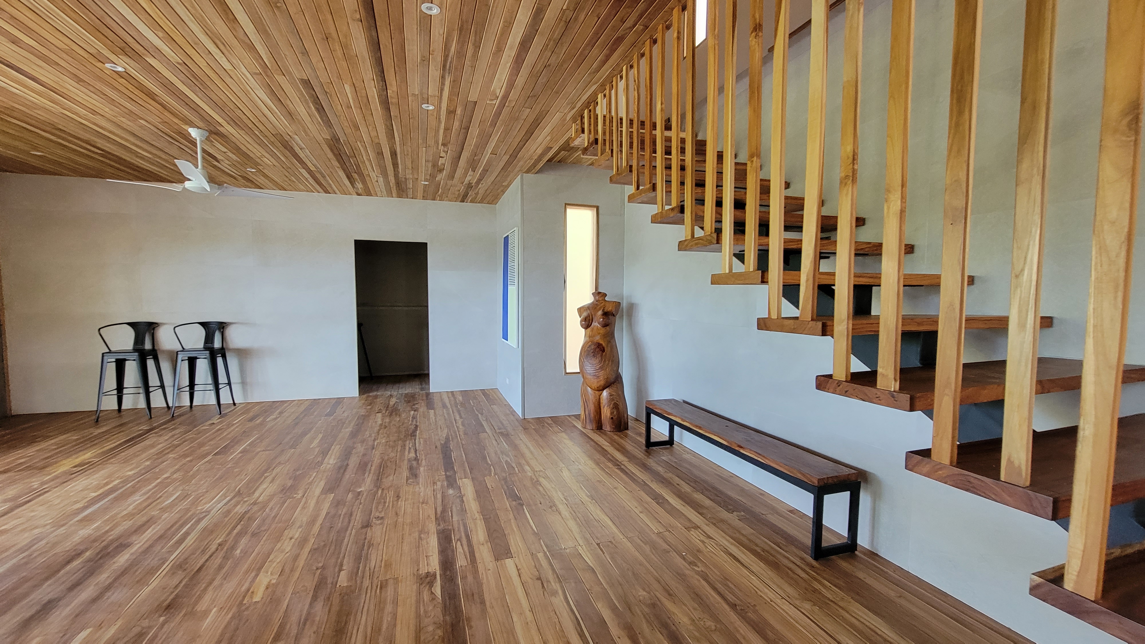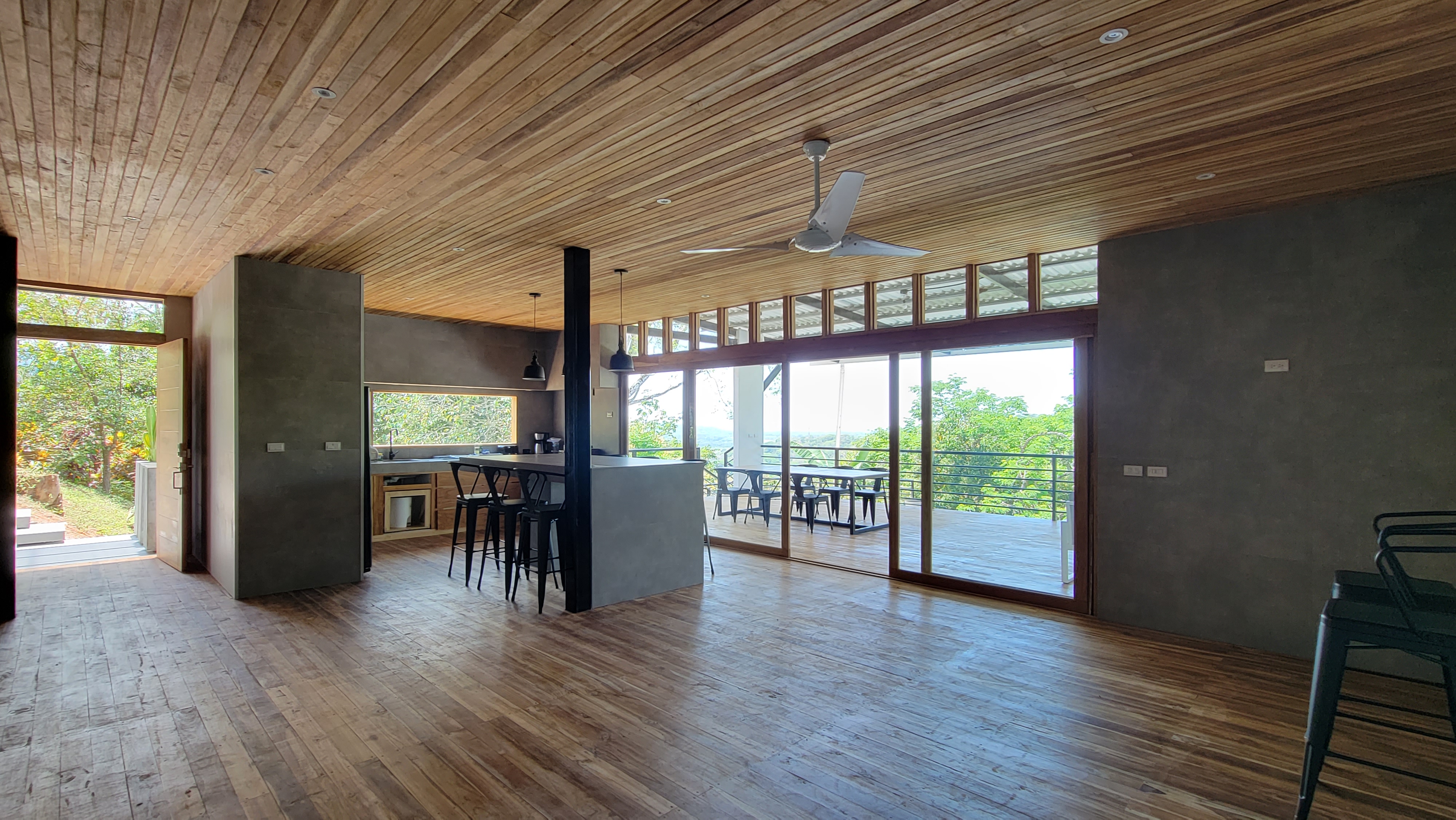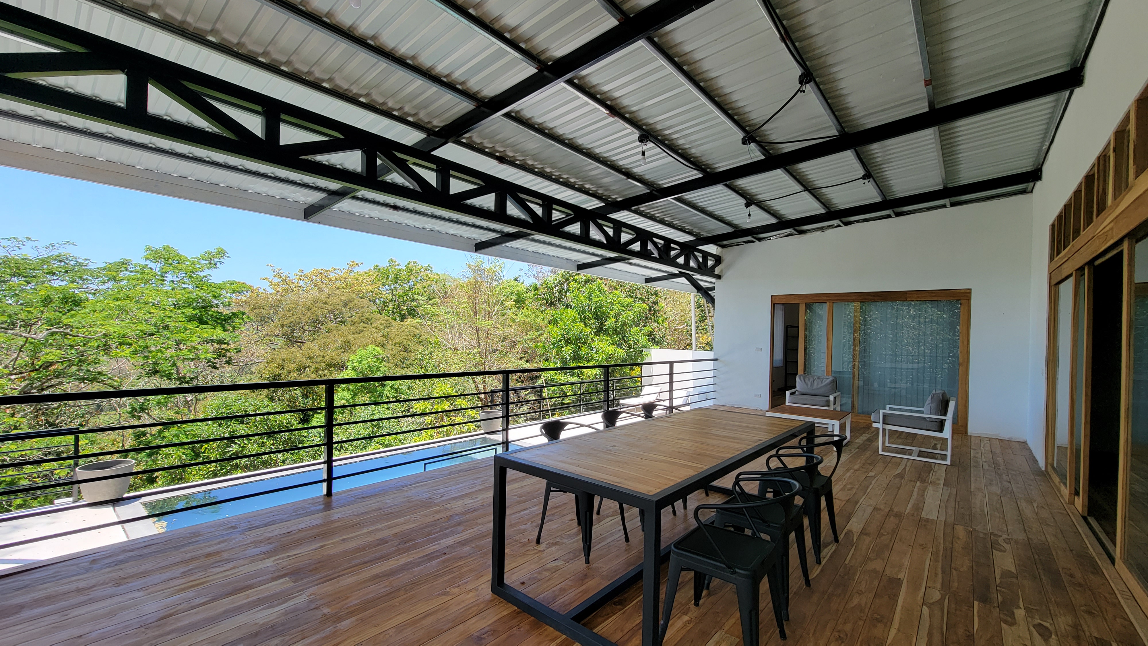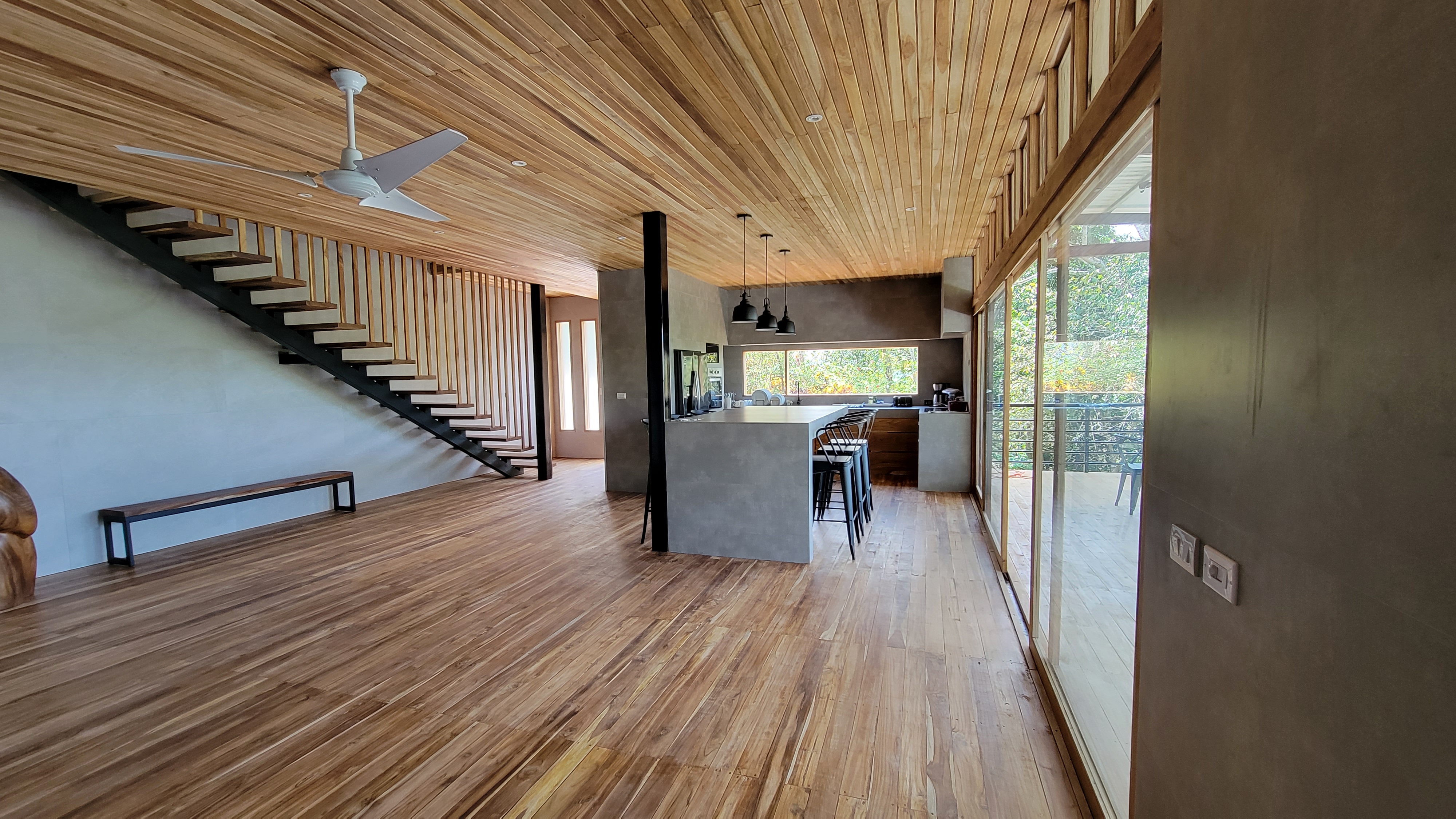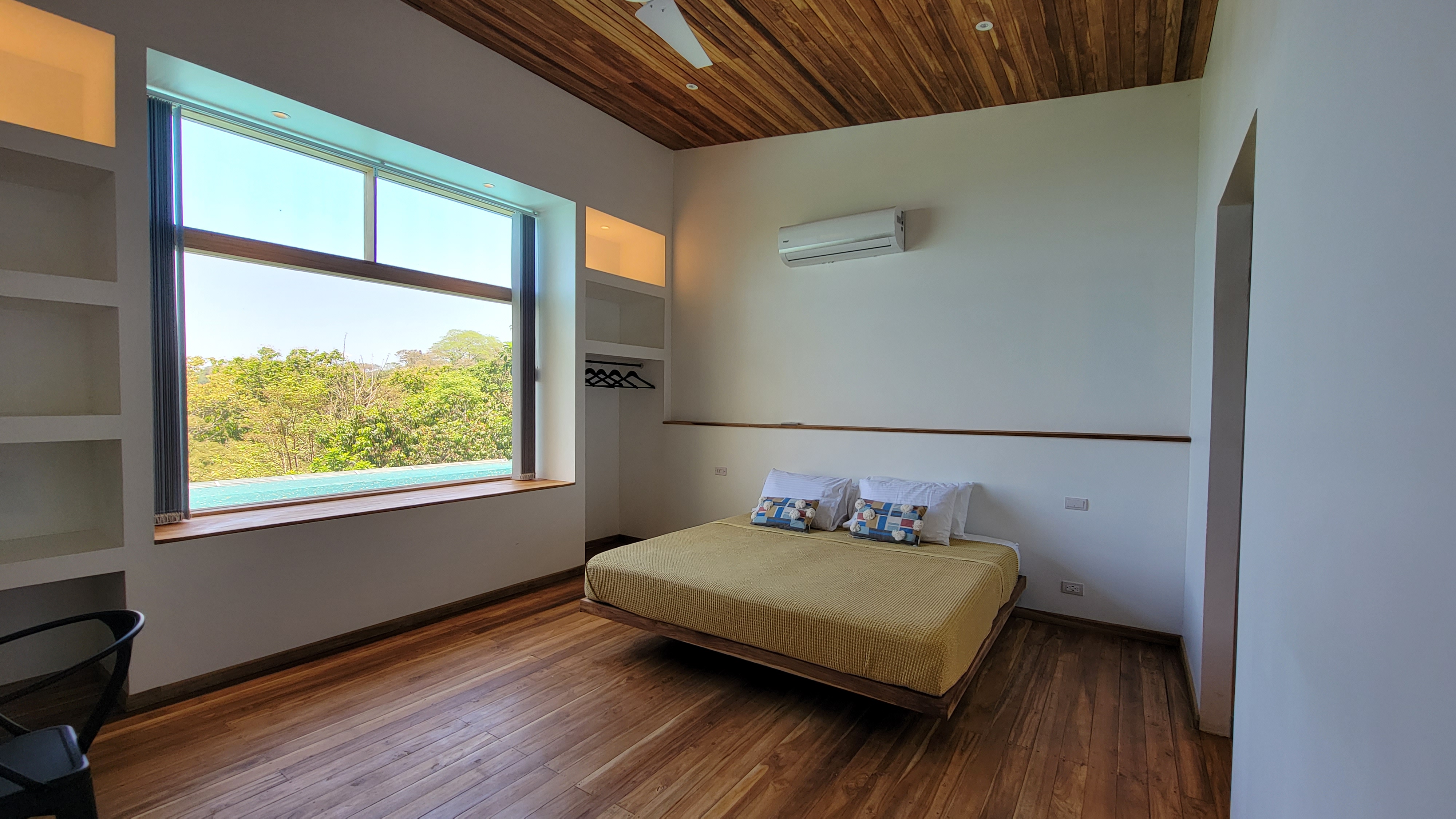 The first thing you notice when you walk into this stunningly beautiful home, are the beautiful teak wood floors and ceilings that provide an inviting warm feeling. Next you notice the breathtaking views through the floor to ceiling glass sliding doors which open to a beautiful covered teak wood entertainment deck overlooking the stunning rainforest river valley below. On top of the views being incredible, they can never be obscured as this home abuts the permanently protected Carara National Park Nature Preserve. With acres and acres of rainforest as your backyard backdrop, you will delight to see and hear all sorts of tropical birds, including toucans, humming birds, scarlet macaws and other wildlife, including monkeys, iguanas and coatis.