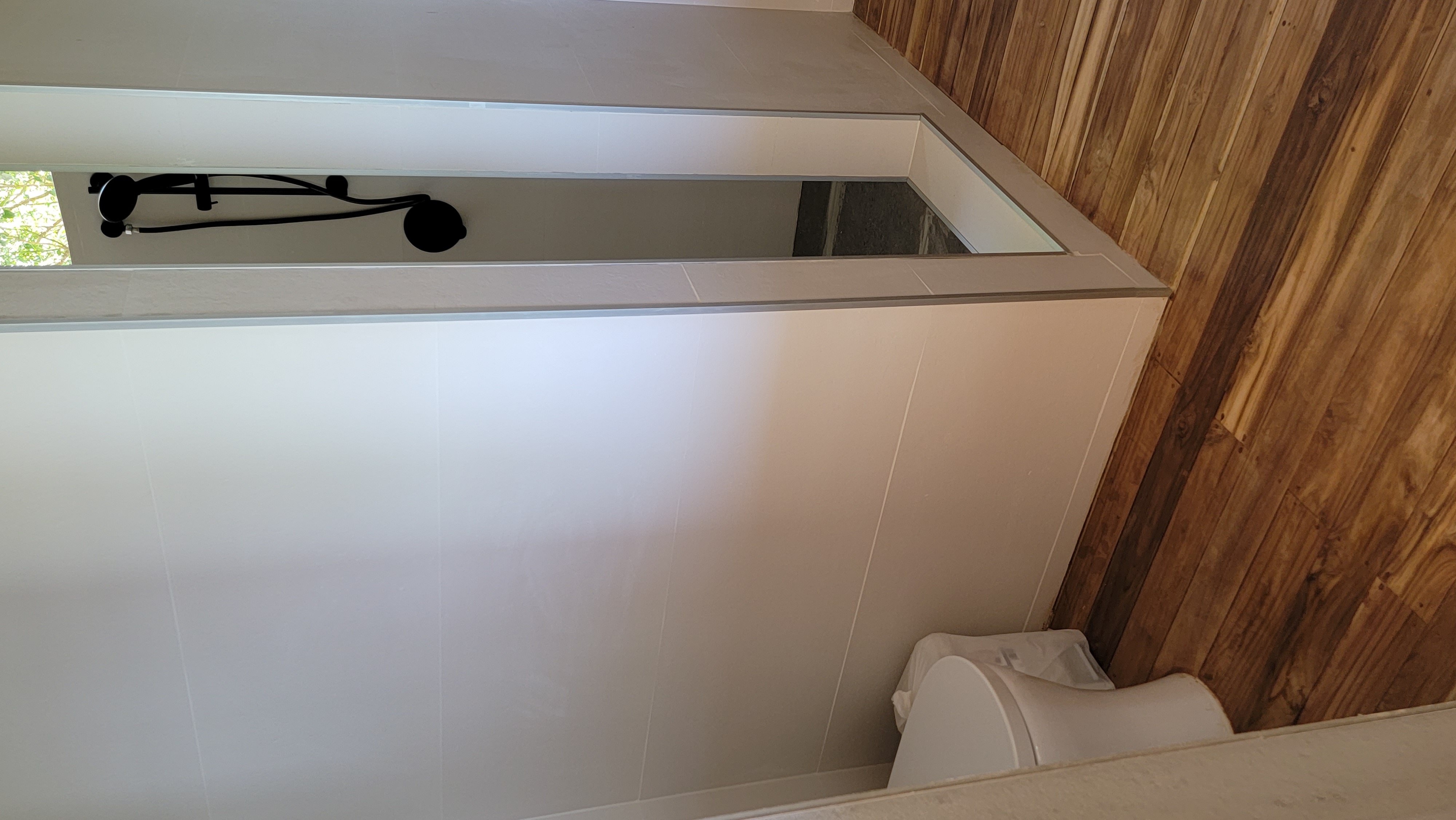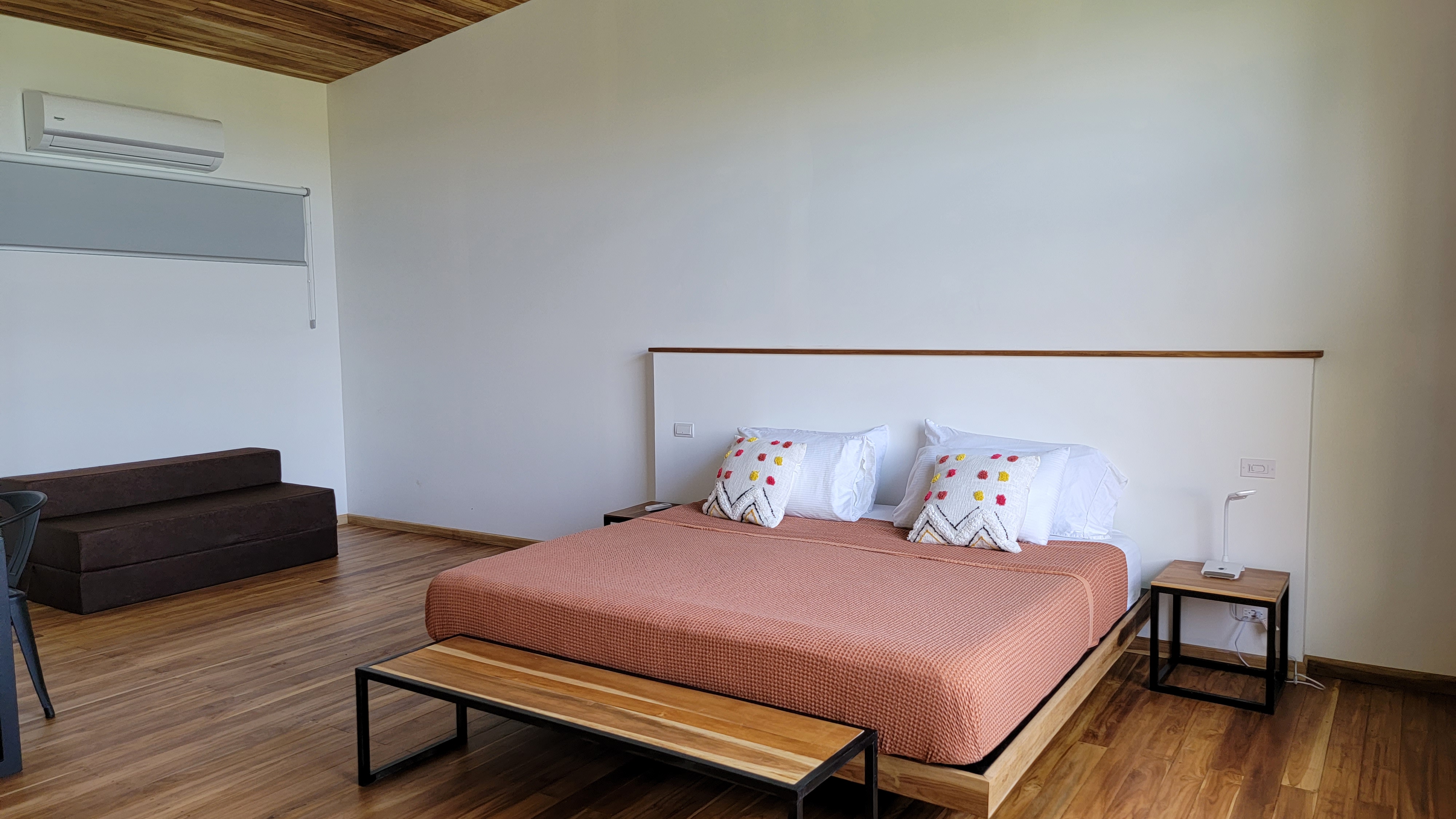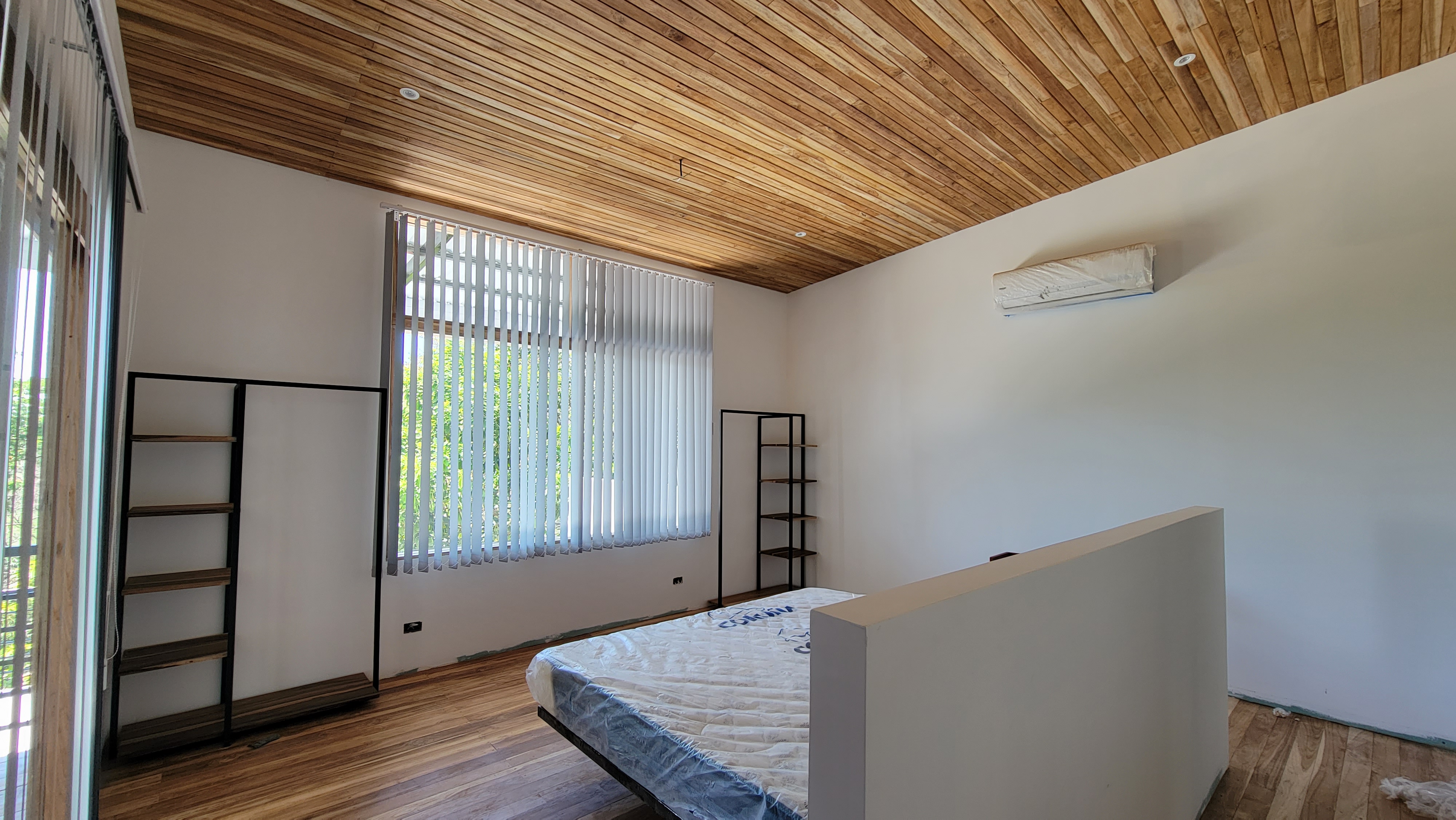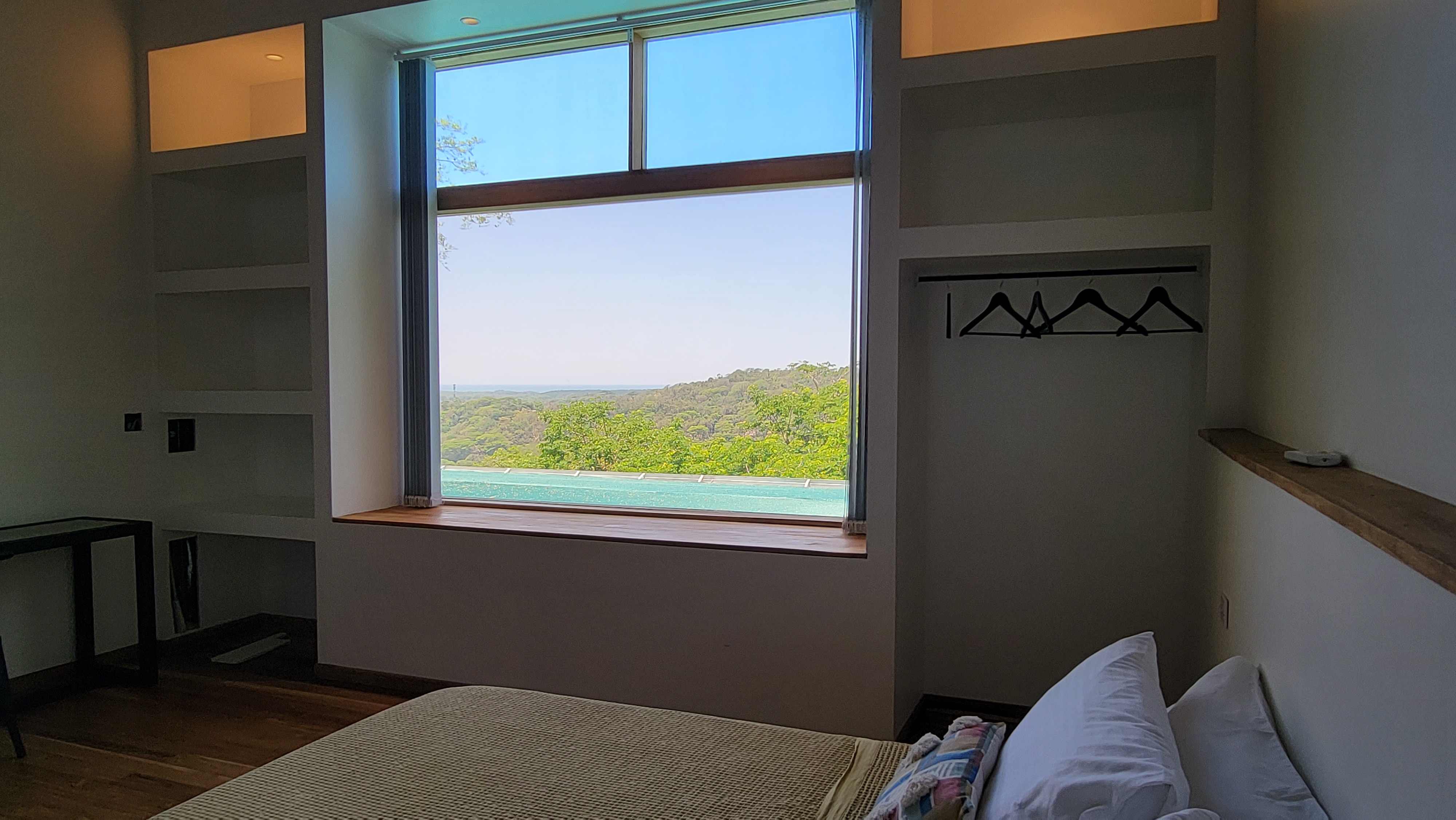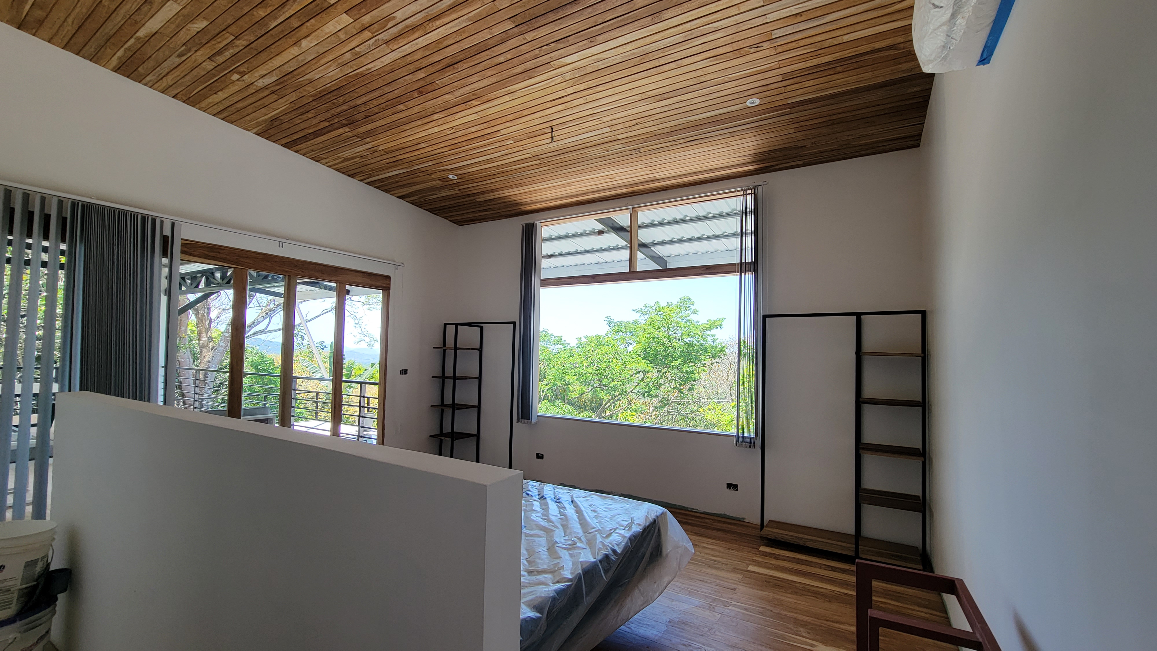 A set of beautiful wood stairs leads you up to the second floor landing leading to two separate huge master bedroom suites, each with built in closets and en suite baths and giant picture windows to admire the beautiful views. The bath rooms are sleek and modern with a European flair, having been designed by a French architect. Though surrounded by jungle, you are living in comfort and style.