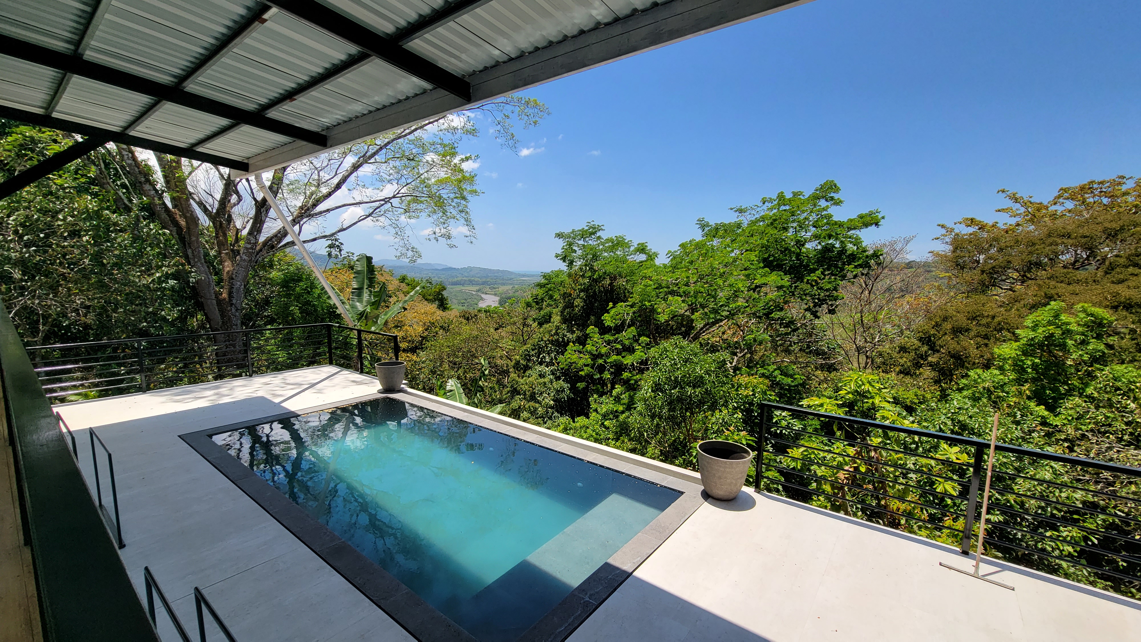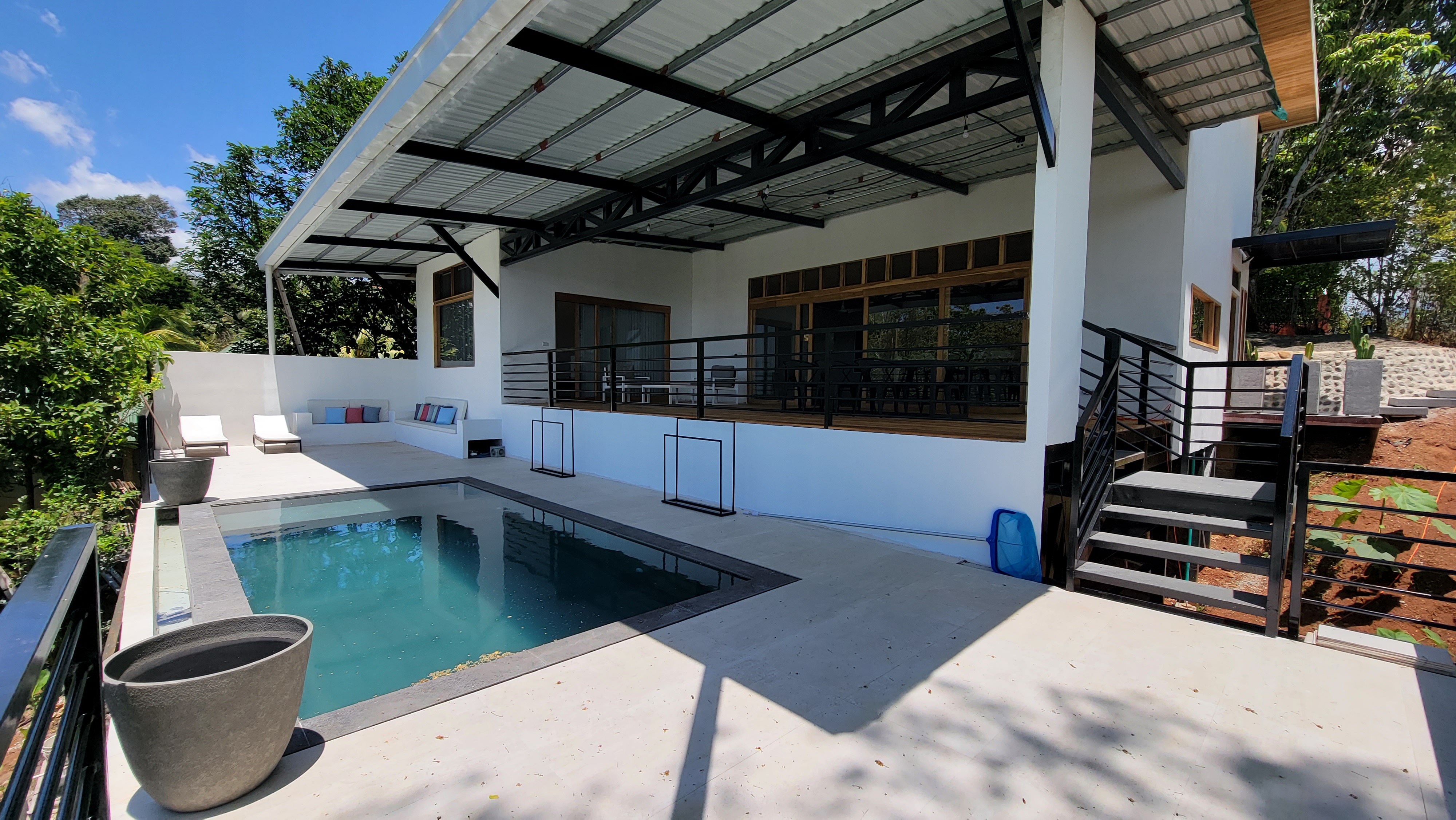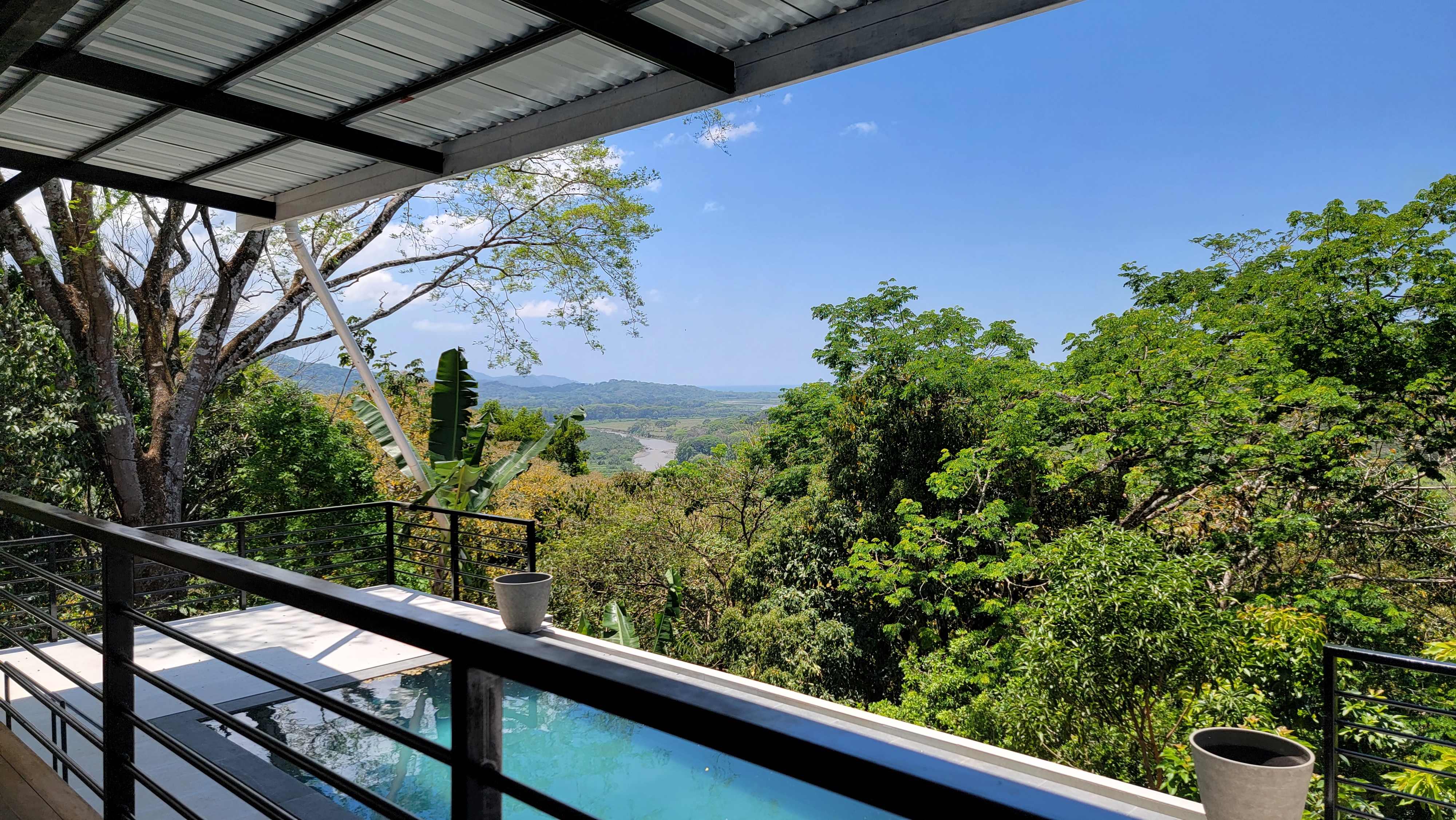 This brand new ultra modern home offers breathtaking views of the rainforest river valley and ocean just beyond. Located in the hills above Carara National Park, it is just 15 minutes from some of Costa Rica's most coveted calm water beaches, Playa Agujas, Playa Mantas and the hidden gem, Playa Bochinche. And the international airport in San Jose is just 45 minutes away, so you can have your toes in the sand or your sights in the jungle within one hour of leaving the airport! Even better, all the shops, clinics, restaurants, nightlife and eco adventure tours of the bustling beach town of Jaco are just 30 minutes away. And if you like to play tennis, golf or go sport fishing, Los Suenos Marriott Resort and Marina is just 20 minutes away in Herradura.