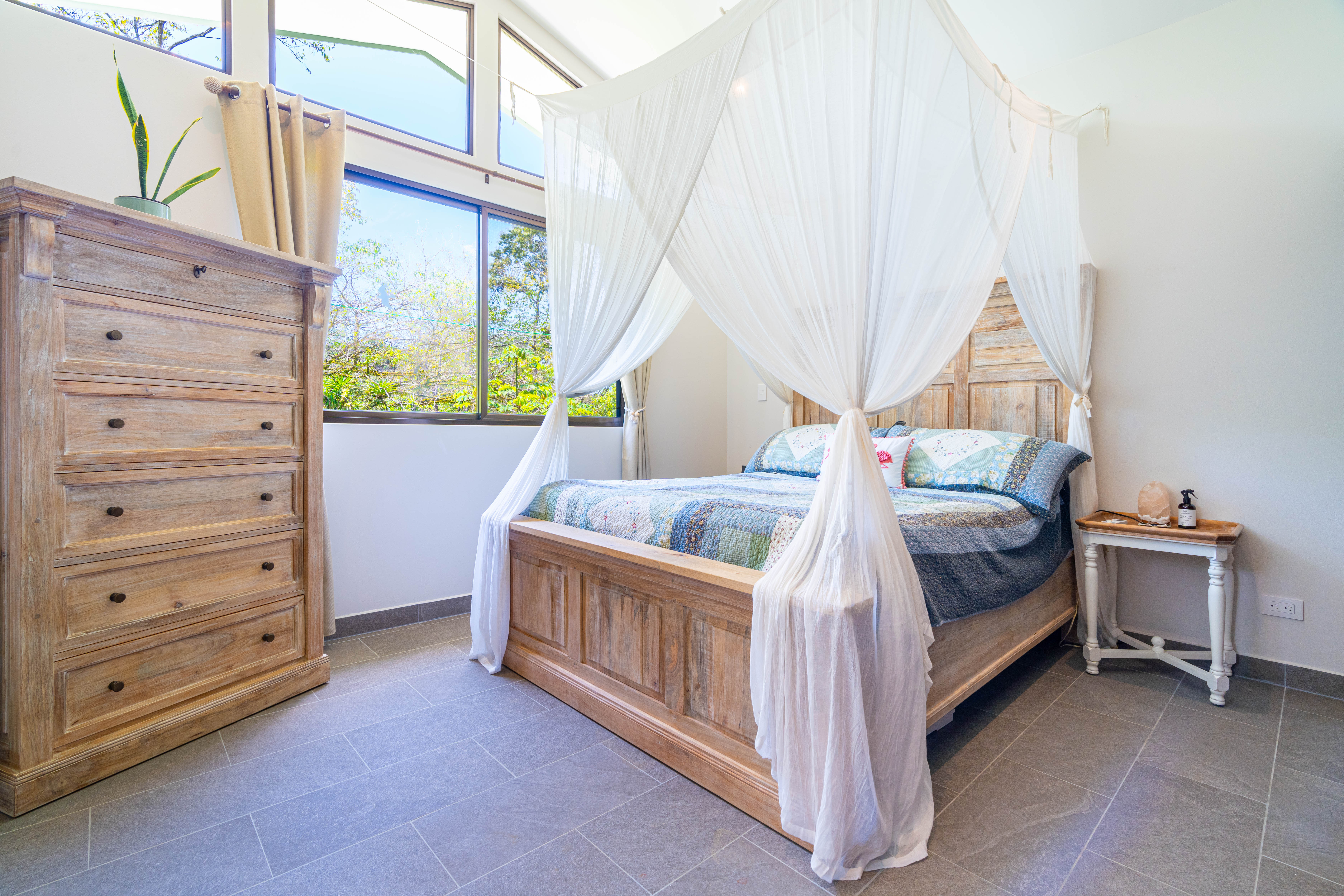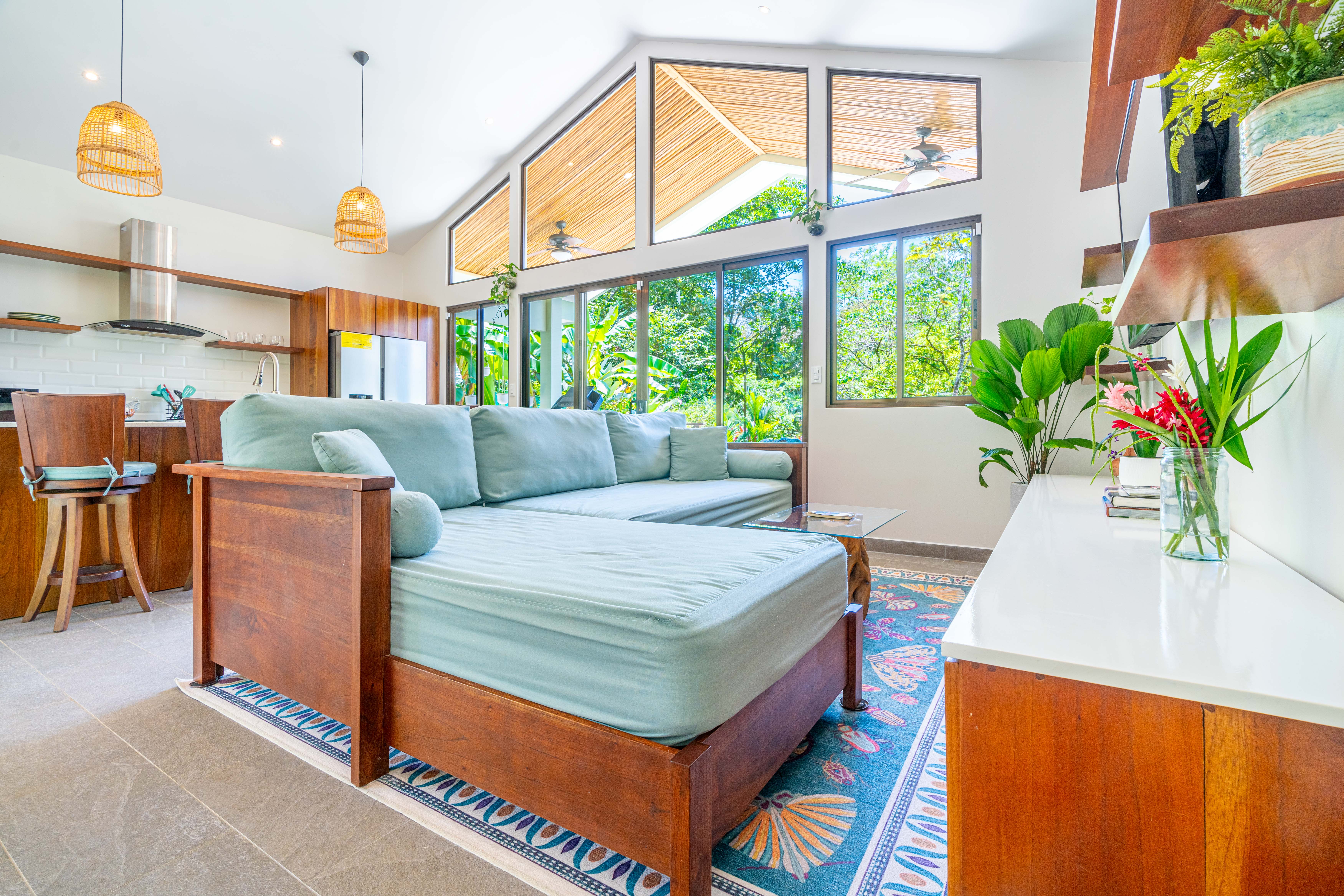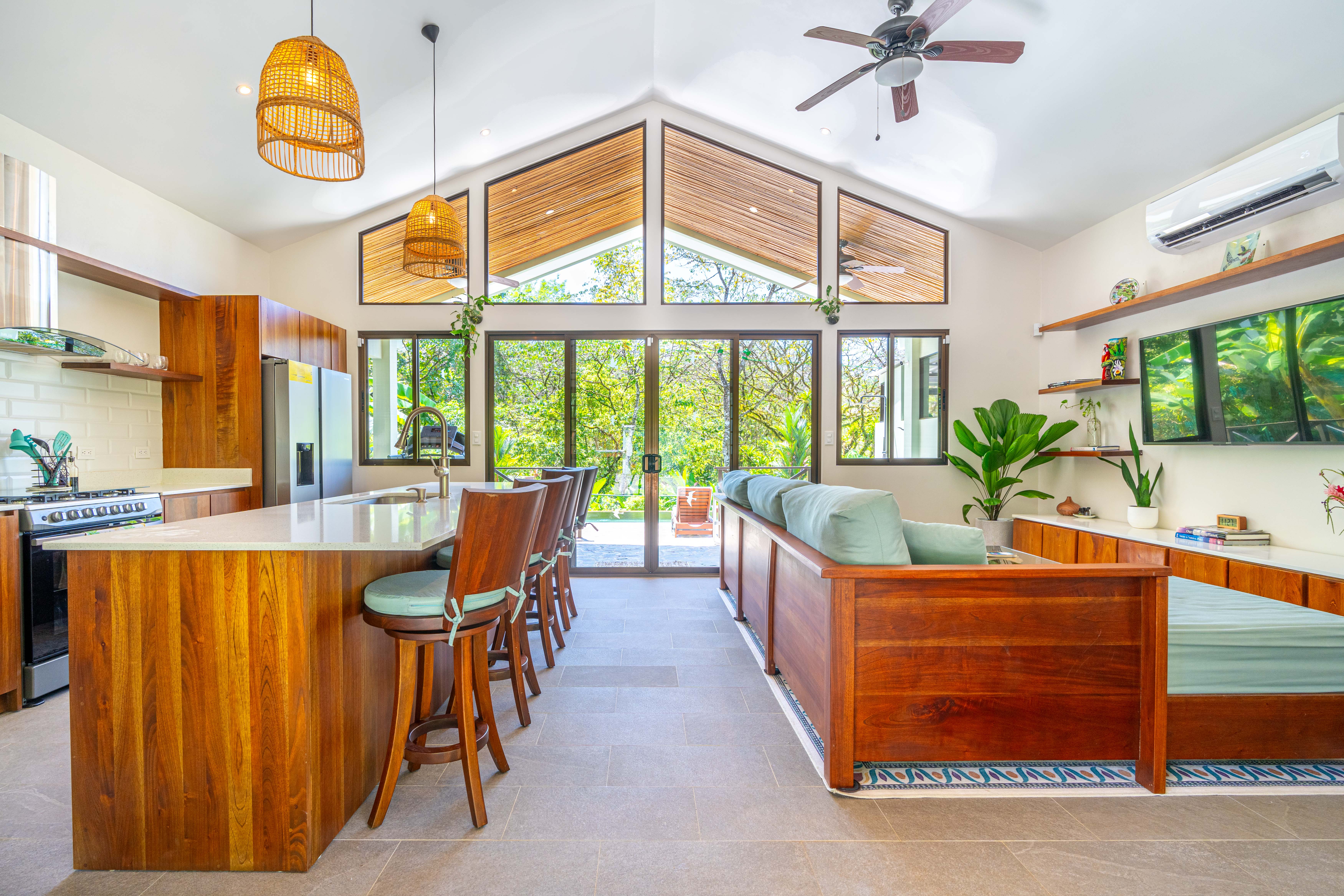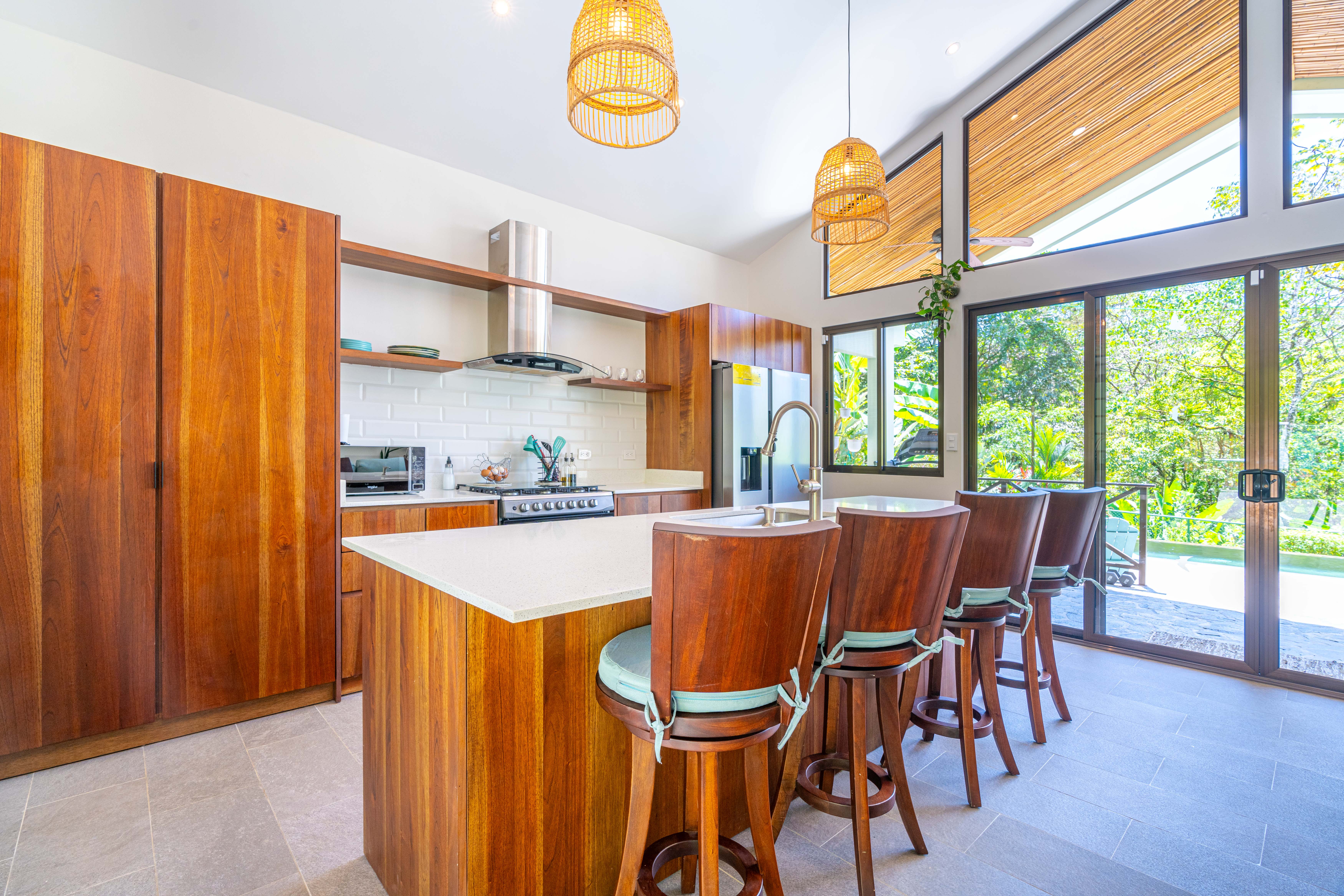 • Premium Materials – Quartz countertops throughout the kitchen and bathrooms, handcrafted cedar cabinetry, and high-quality mango wood furniture in the master bedroom.