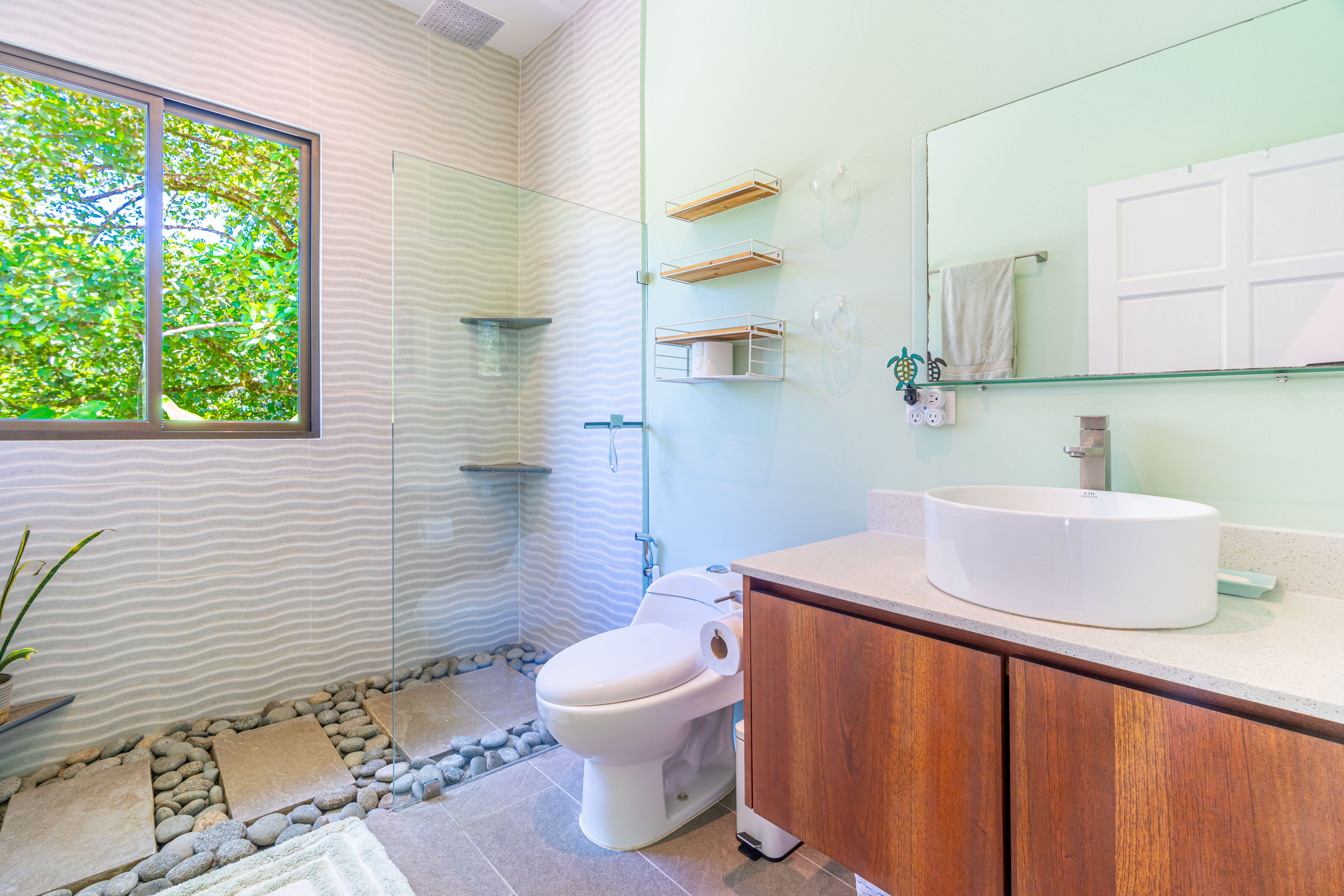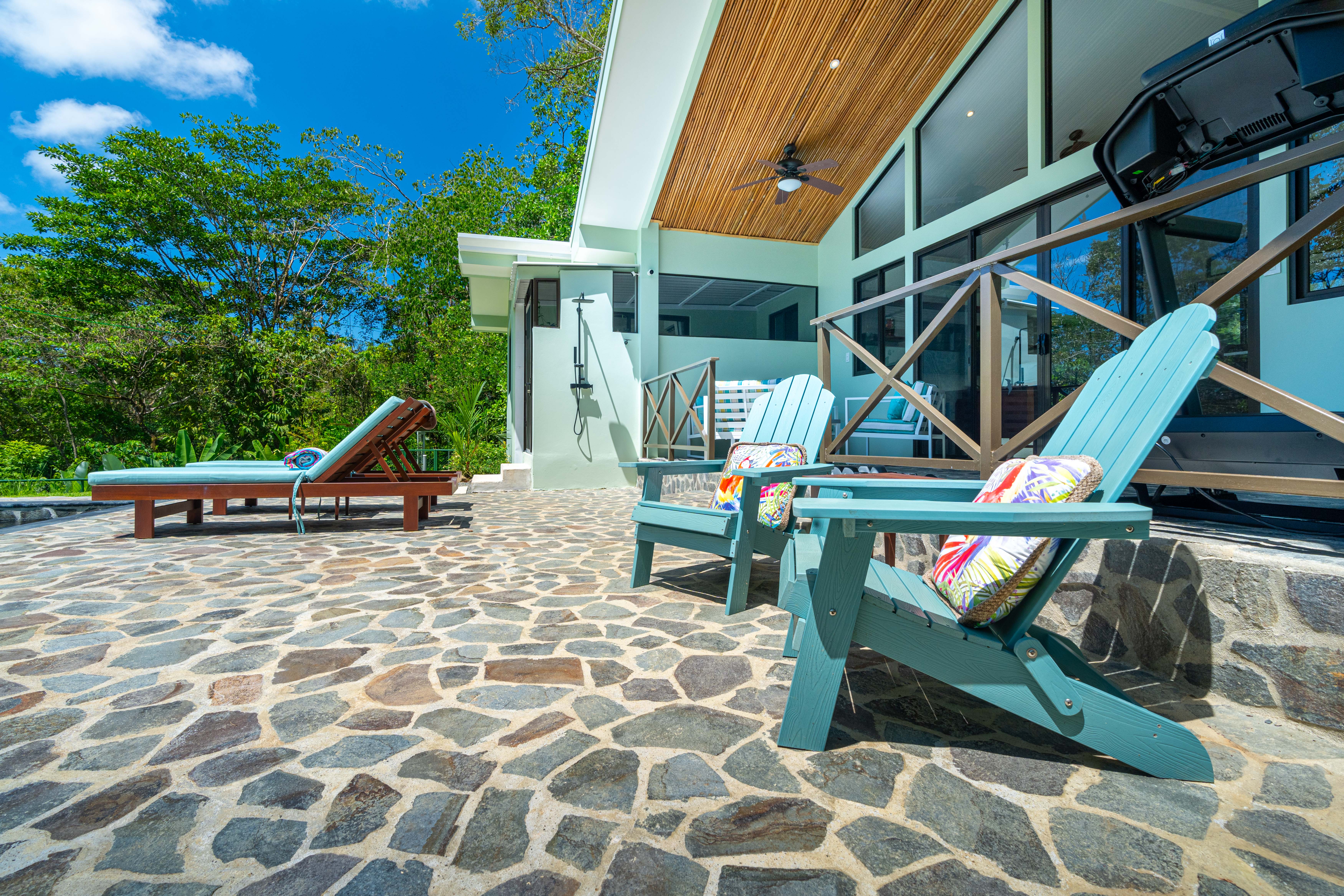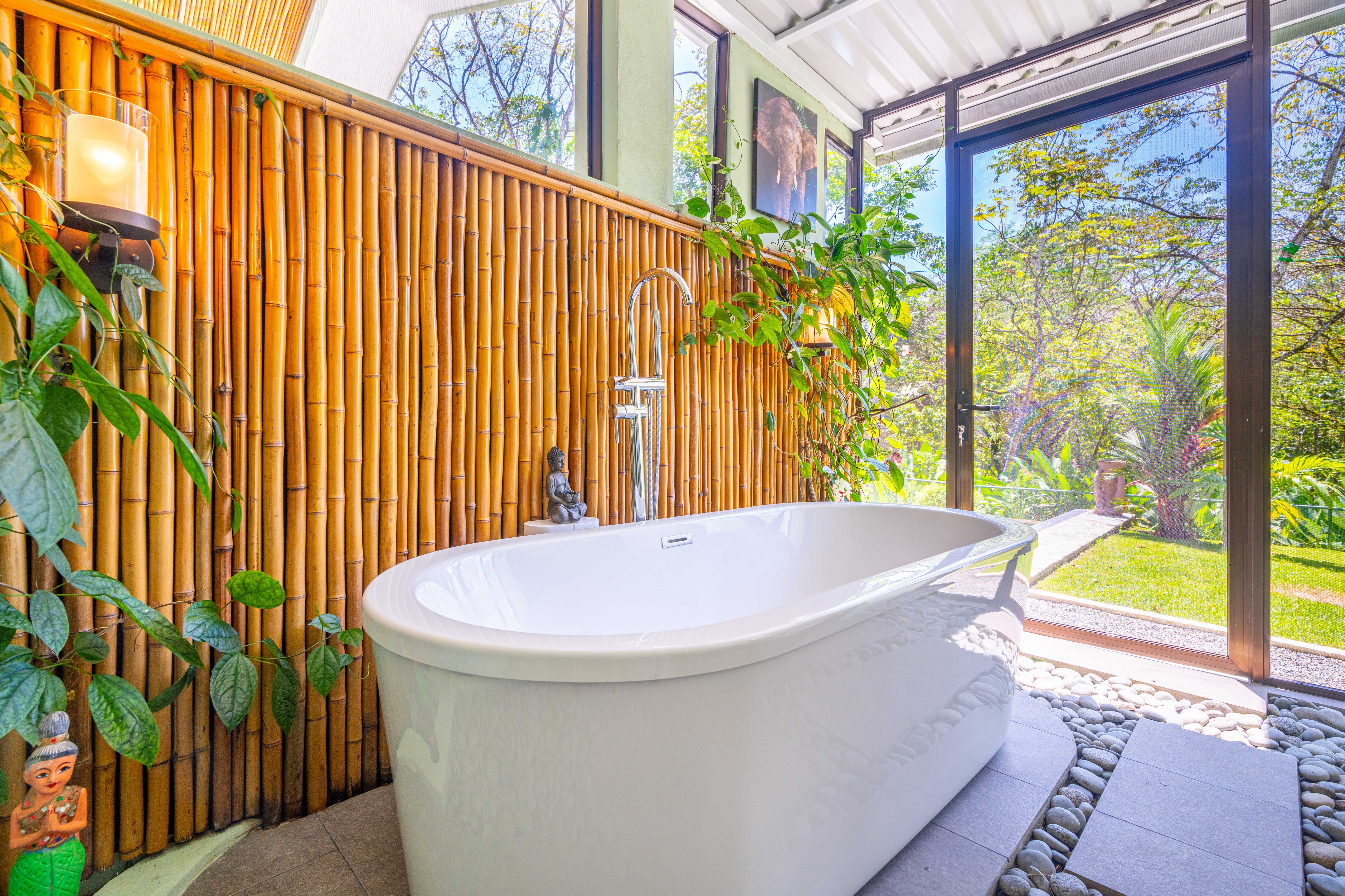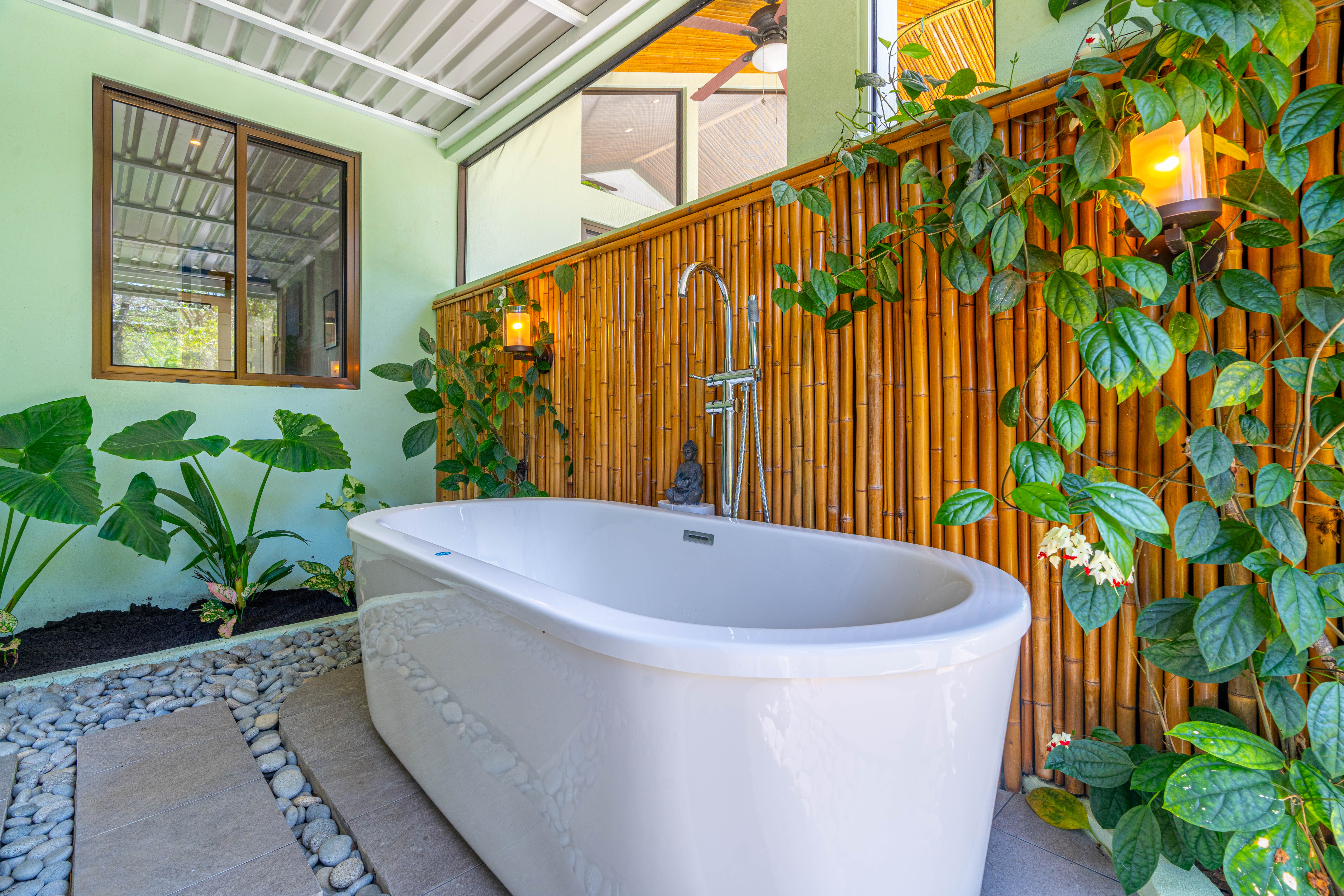 • Screened Spa Retreat – The master suite extends into a private spa space featuring an upgraded freestanding bathtub set on river rocks, mirroring the design of the luxurious master shower. Listen to the soothing sounds of jungle rain without worrying about mosquitos, thanks to fully screened windows and doors.