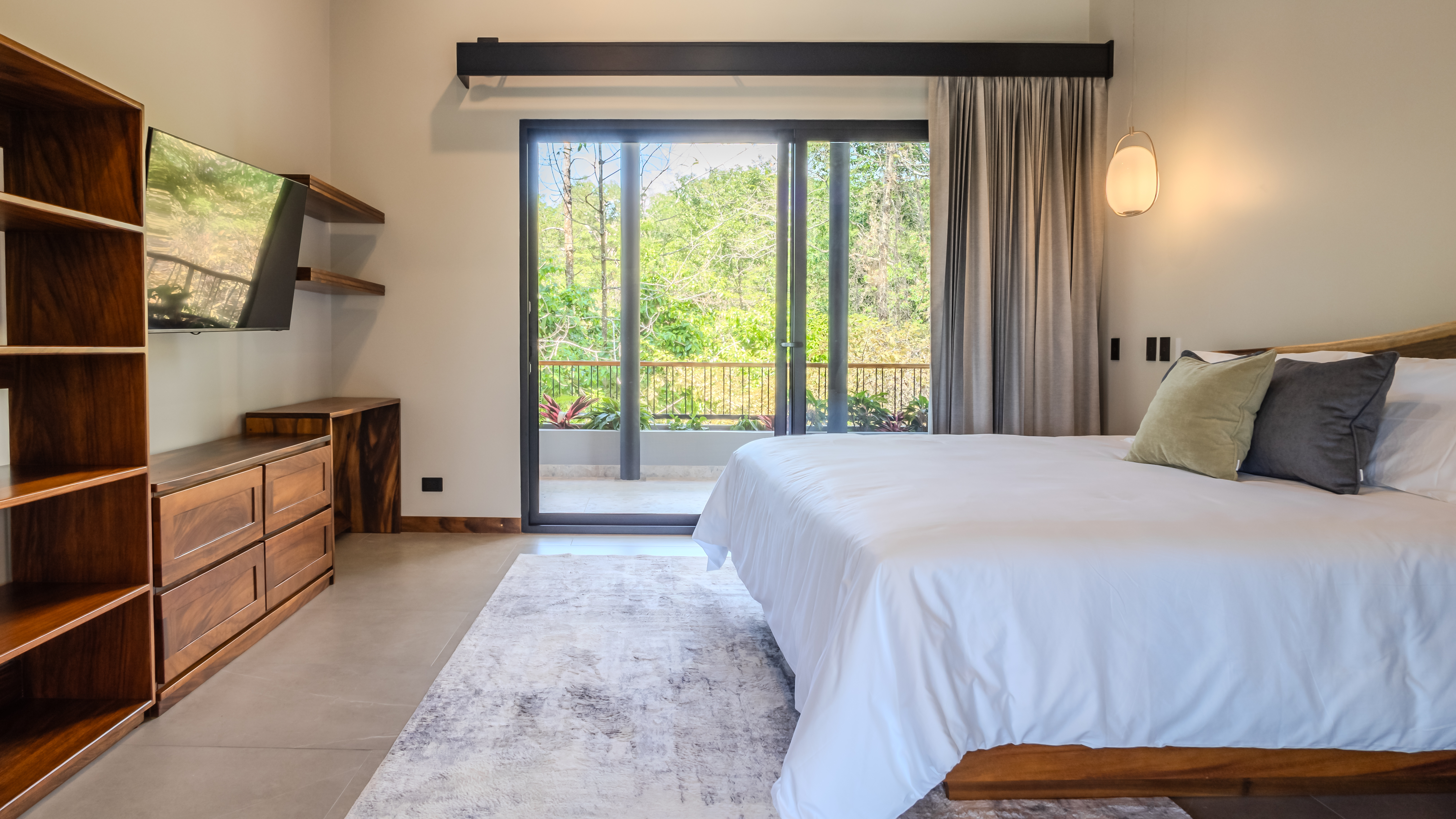 Three Luxurious Suites: Each bedroom boasts private bathrooms, walk-in closets, and sweeping views of the verdant jungle. The master suite offers a king-size bed and ultimate comfort, complemented by two additional suites with queen-sized beds.