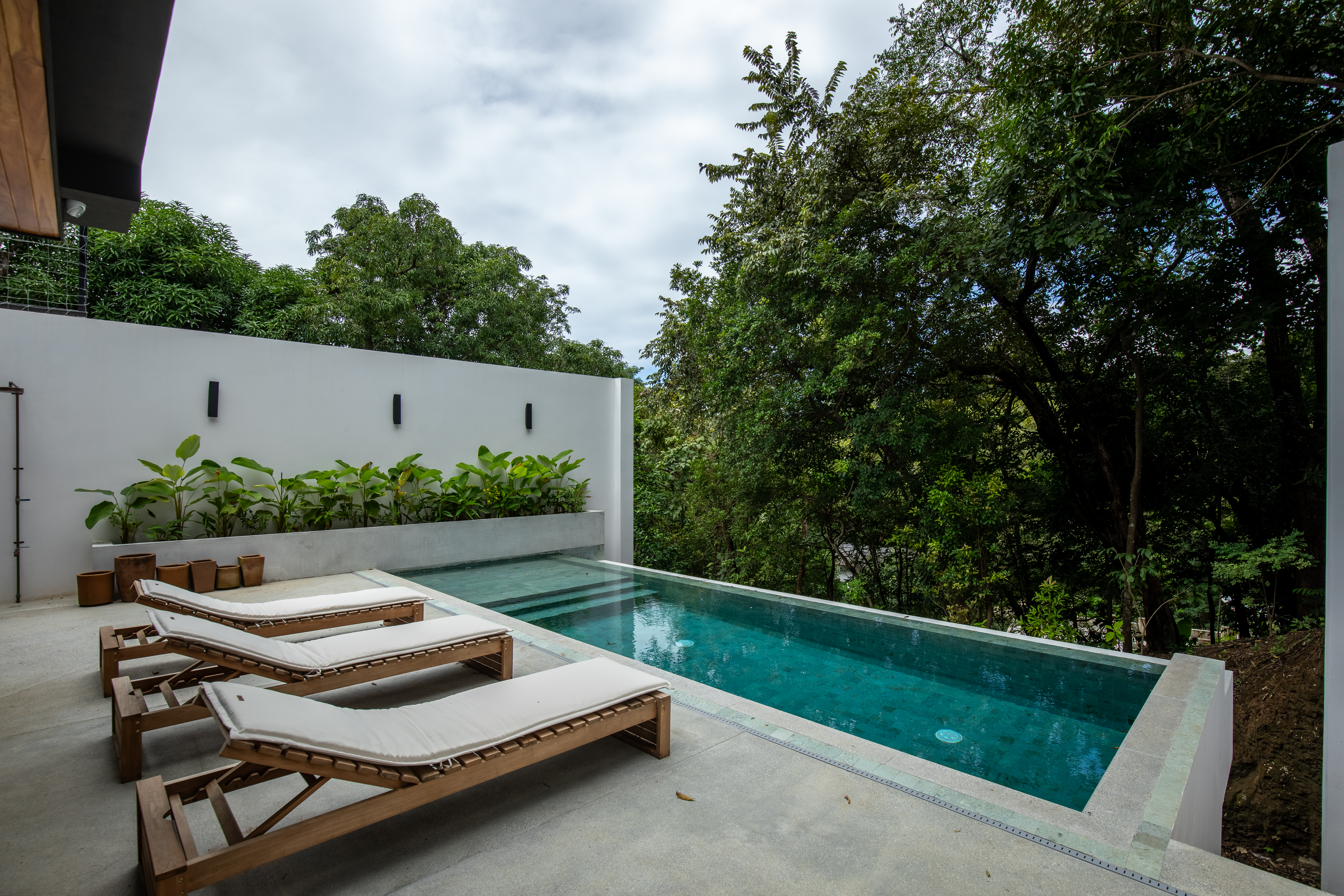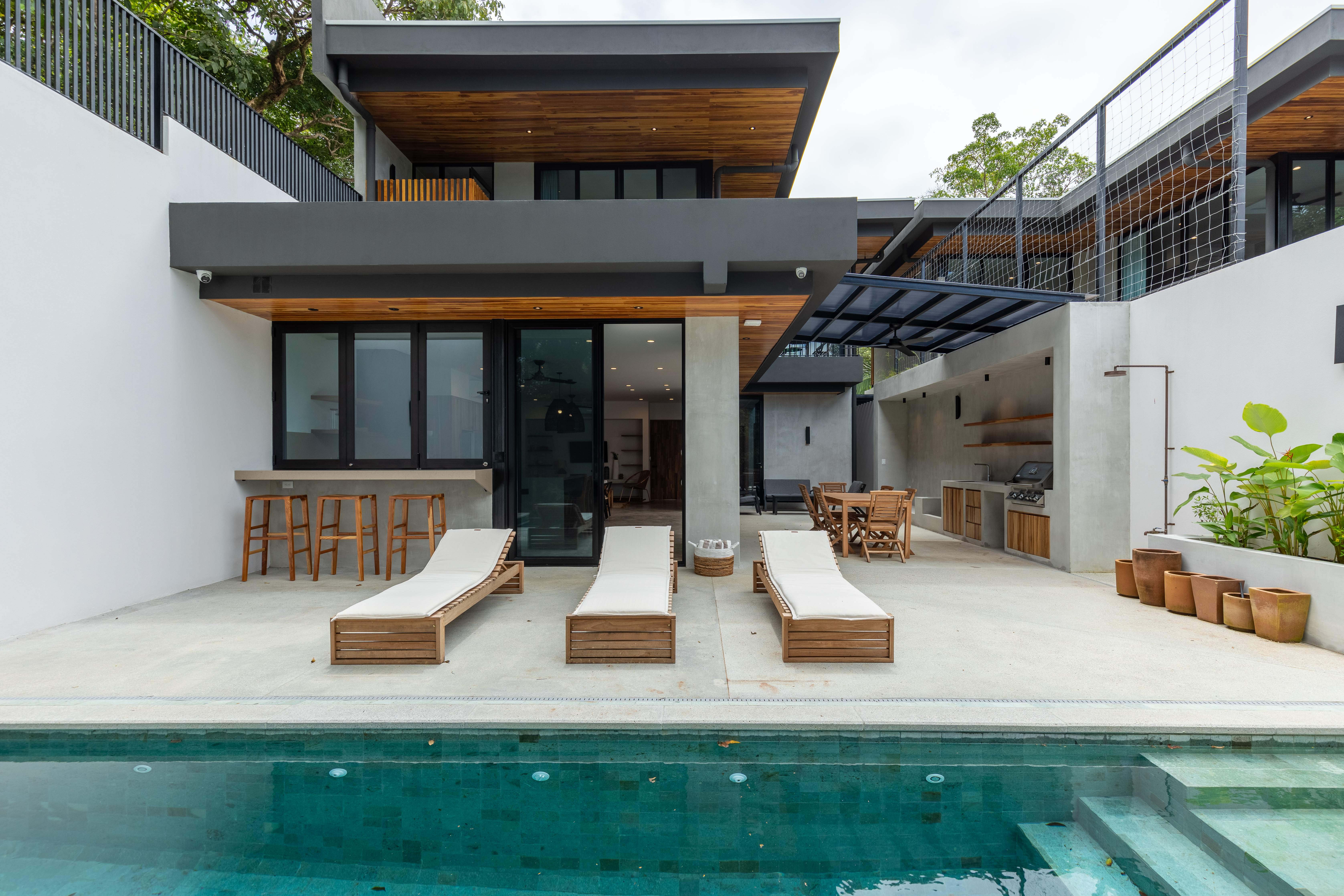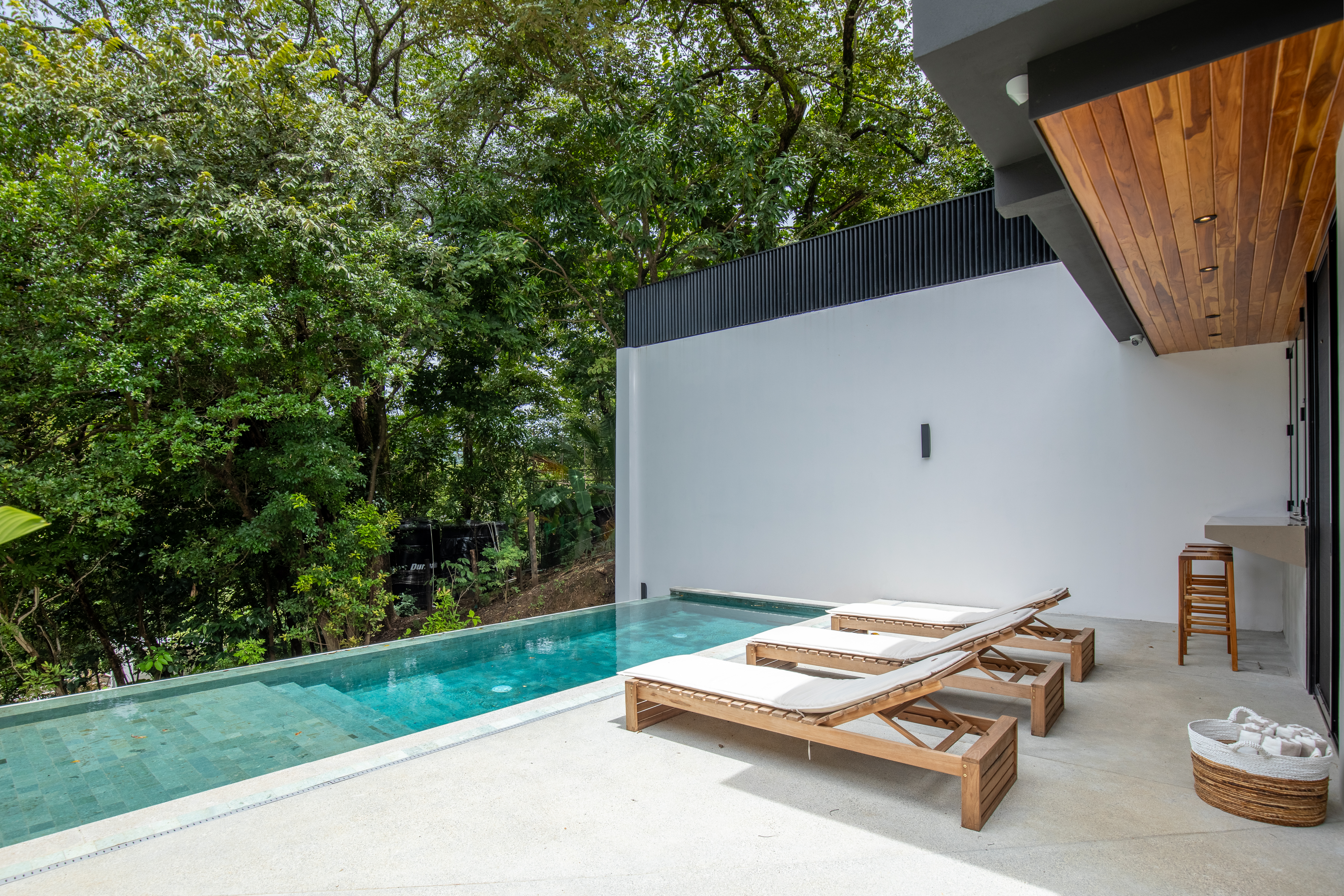 Private Pool with Jungle Views: Lounge by the pool on elegant sunbeds or cool off in the outdoor shower after a day at the beach.