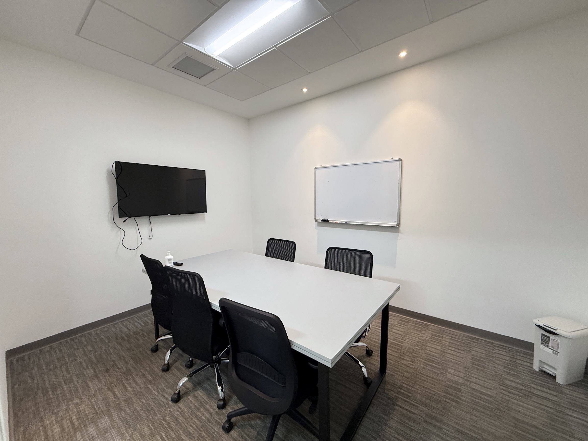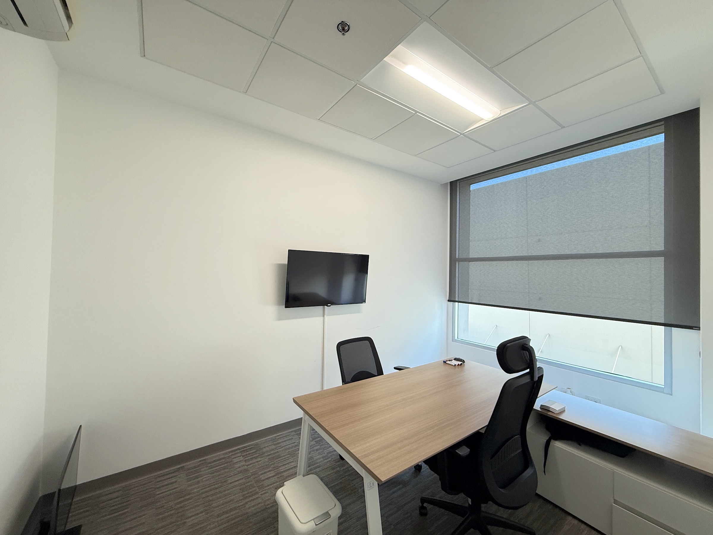 The office features a functional layout: upon entry, you are welcomed by a reception or lounge area. It includes two private offices with good natural lighting, one enclosed conference room, a spacious coworking area, and a kitchenette. The space is equipped with both central and independent air conditioning.