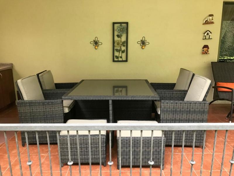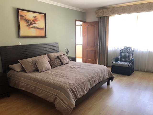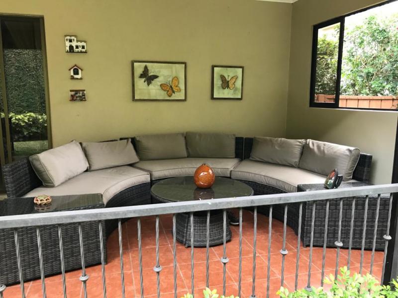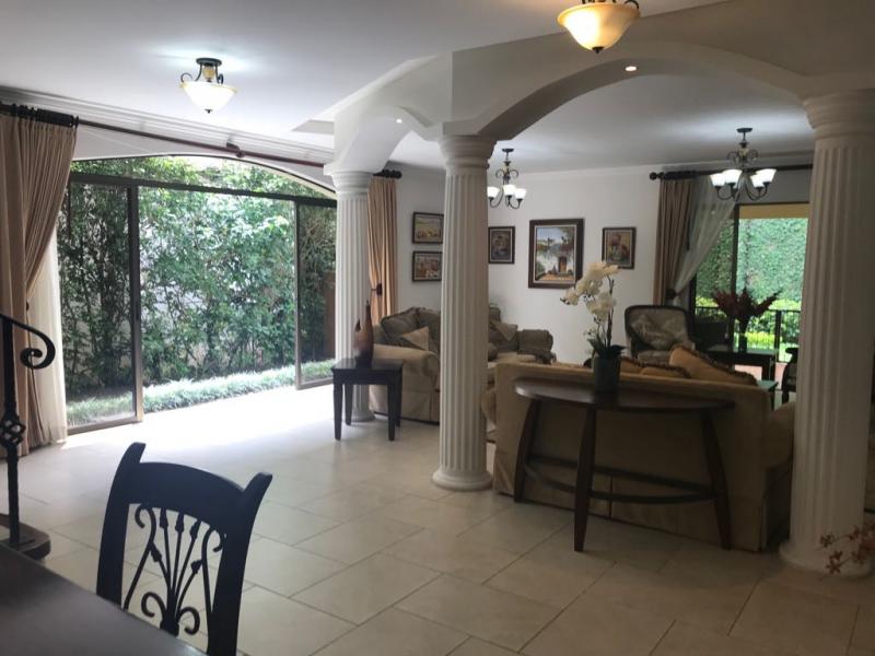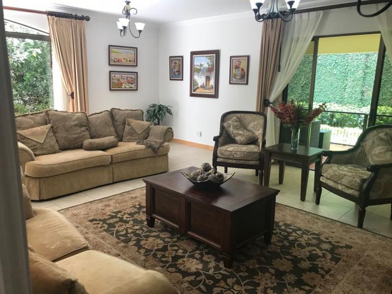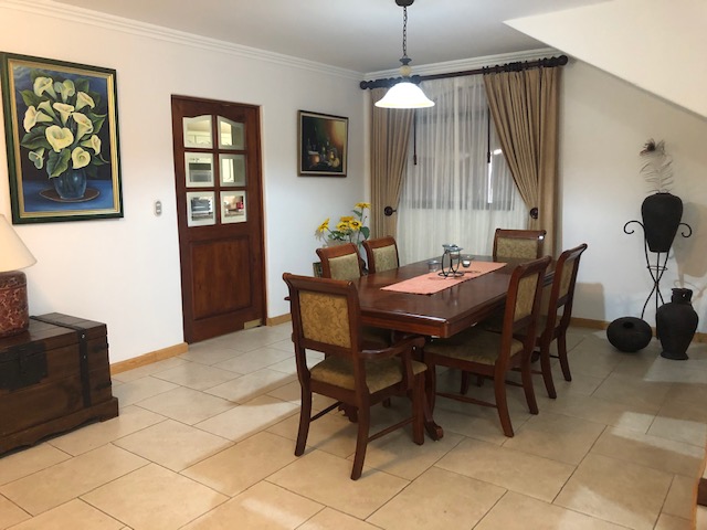Hermosa Casa en Condominio en Lomas de Ayarco. This beautiful two-story residence is located in a condominium of independent houses. The house is distributed as follows: At the entrance there is a beautiful hall that gives access to the living room and dining room. First Floor: Dining room, independent kitchen with wooden furniture, space for breakfast or breakfast area, utility room with bathroom, laundry room, and clothesline. It also has a half bathroom for visitors. The living room has access to a terrace with a large patio in the back. It also has a beautiful garden in the front. Second floor: Large master bedroom with bathroom with Jacuzzi, walking closet and a small balcony or terrace, three more bedrooms, each with its own bathroom and furniture and with its respective walking closet. All bedrooms have laminate flooring. It also has a TV room and a small office. The house has good natural lighting and ventilation, and fine finishes with wood details. It has a covered garage for two cars and outside there is space for 4 more cars. The maintenance fee is 130,000 colones per month. It has 24/7 security and a children's play area. Pets are allowed.