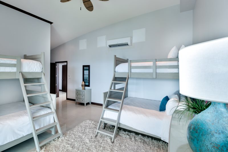 The ground level hosts 3 bedrooms and 3.5 bathrooms along with the kitchen and living area. Each bedroom has a private in suite bathroom and the master bathroom has an incredible ocean view bathtub. The second floor has a 4th bedroom and bathroom as well as a loft with kitchen bar, work station, and TV area.
