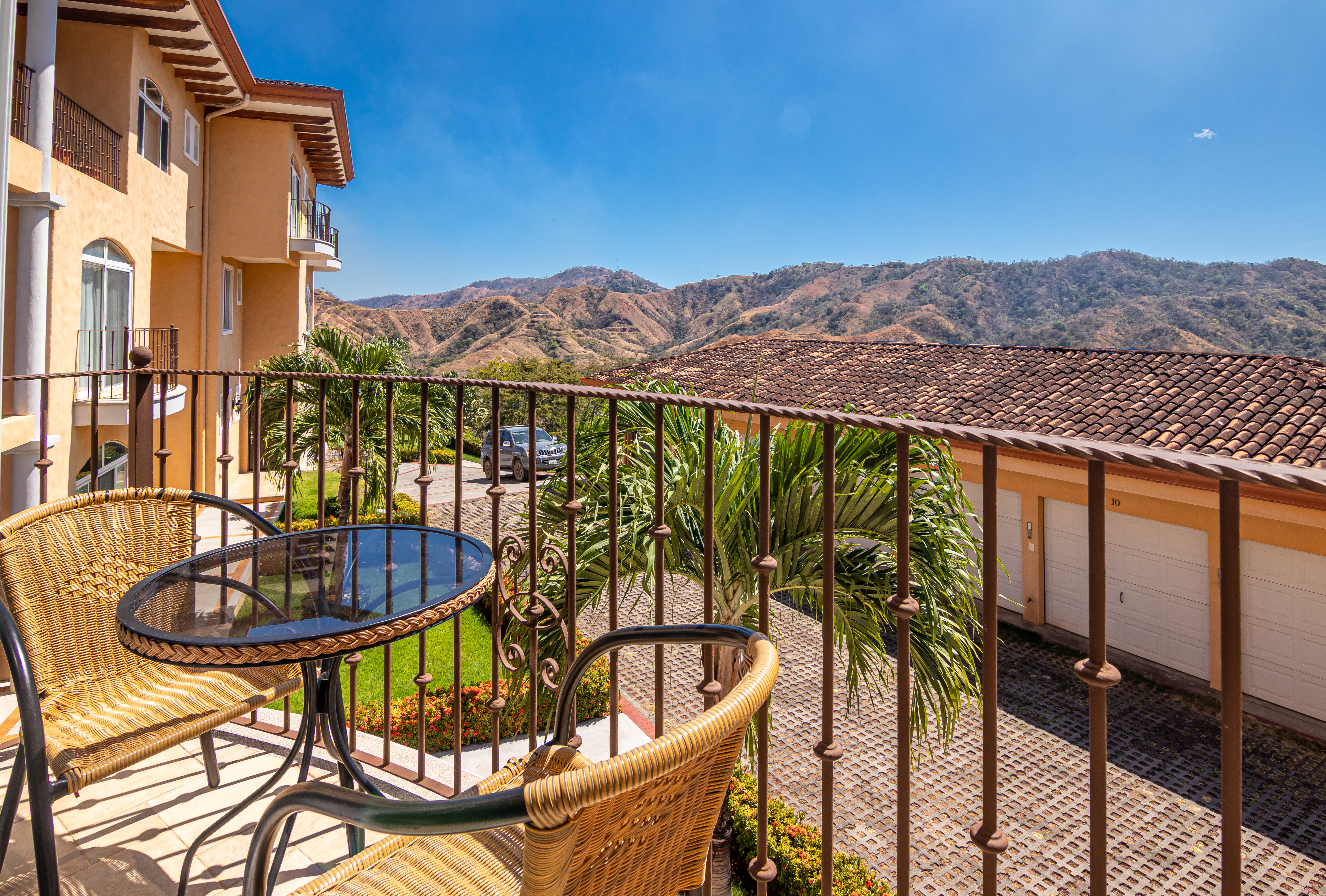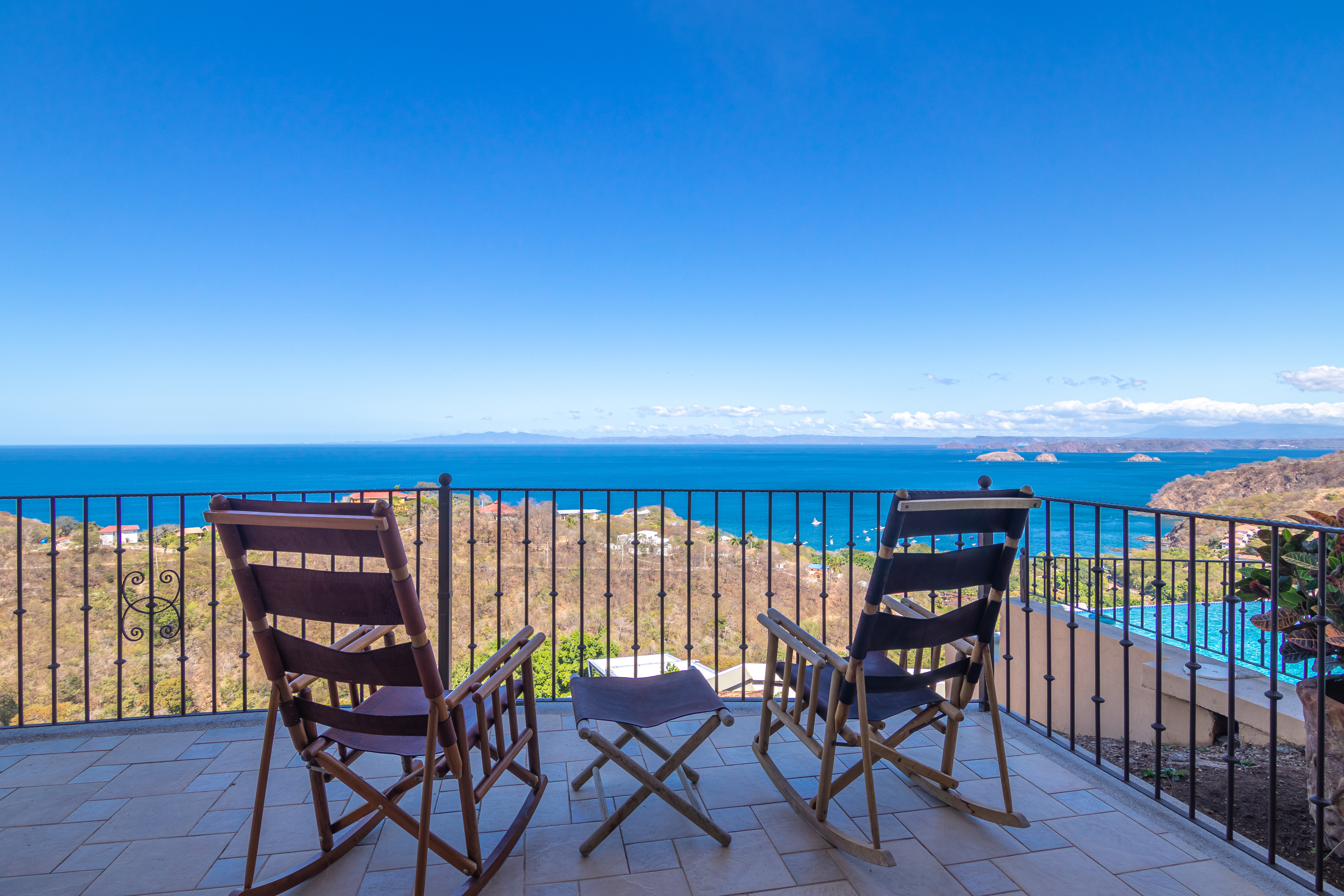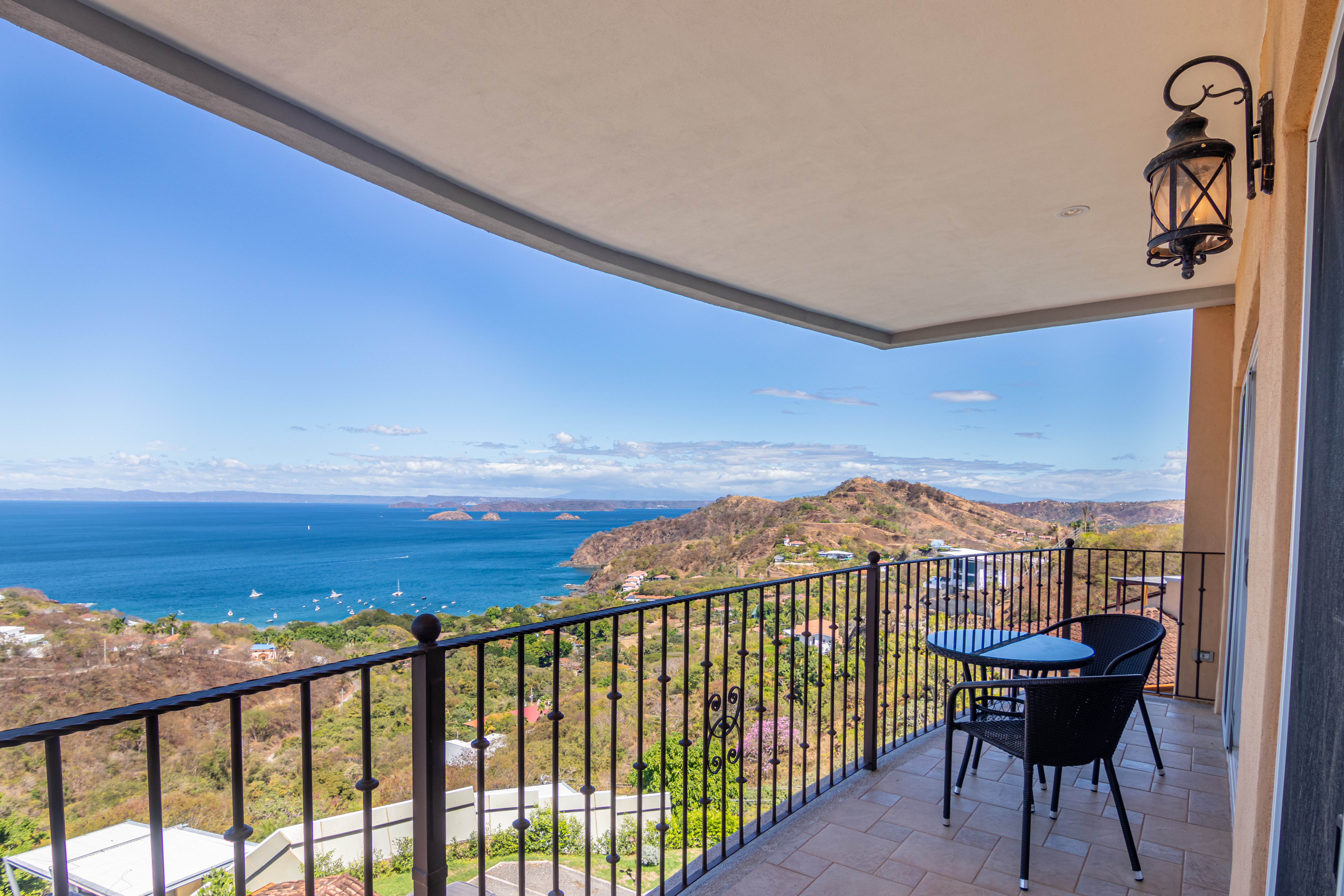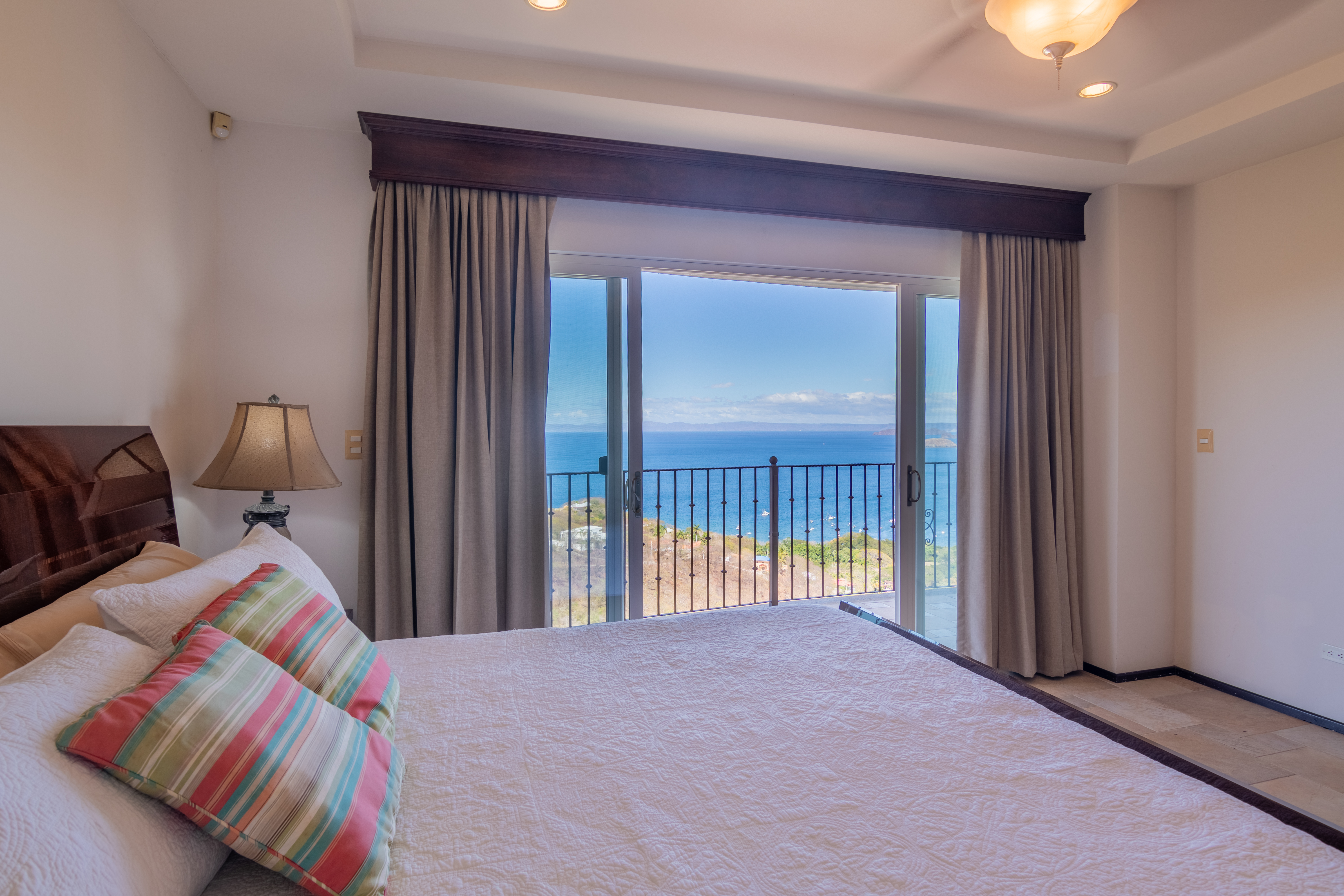 Enjoy luxury living in Corona Del Mar gated development with only 12 units offering the best ocean views’ condos in the area. Be amazed by the spectacular panorama of the Pacifico Ocean, mountains and Santa Rosa National park as you enter the main door of this two-level 2,860 sf fully furnished and equipped unit. Living and dining areas offer ample space for entertaining and open up to a large balcony. The spacious kitchen has hardwood cabinets, granite countertops and stainless-steel appliances. One of the bedrooms is conveniently located on the main level. Second level accommodates three more bedrooms. The master suite includes a walk-in-closet and en-suite bath. All upper bedrooms have good size patios to enjoy the magnificent views all around. This condo is located very close to the oversized infinity pool that comes with a lounge and BBQ areas. Each unit has a separate enclosed garage and a storage unit. The development offers an equipped ocean view gym, gated entry and a guard on site. Only few minutes to most beautiful beaches, 10 minutes from center of Playas del Coco with all the amenities, and 30 minutes to Liberia International Airport. Don’t delay living your dreams and call today to inquire!