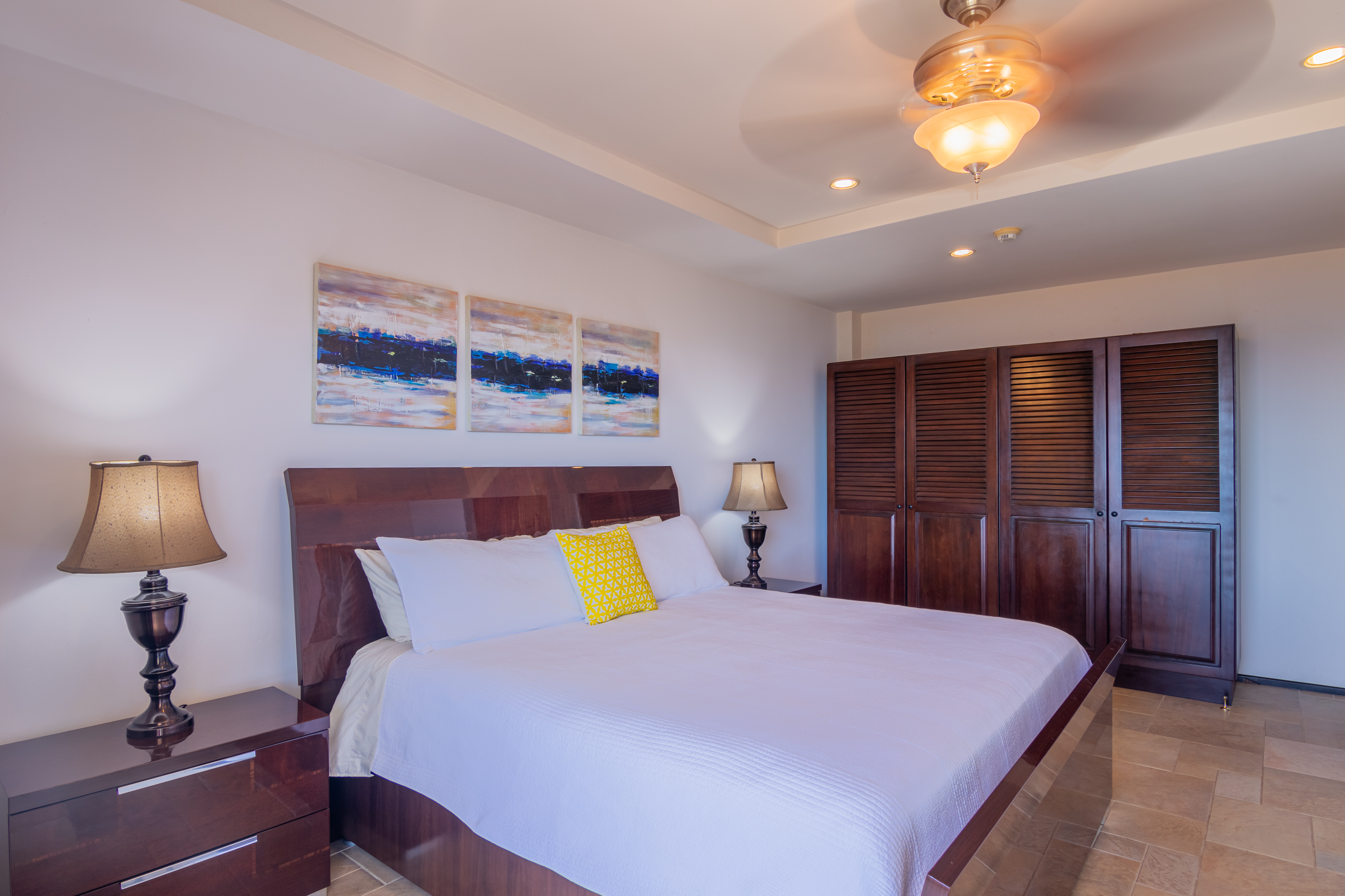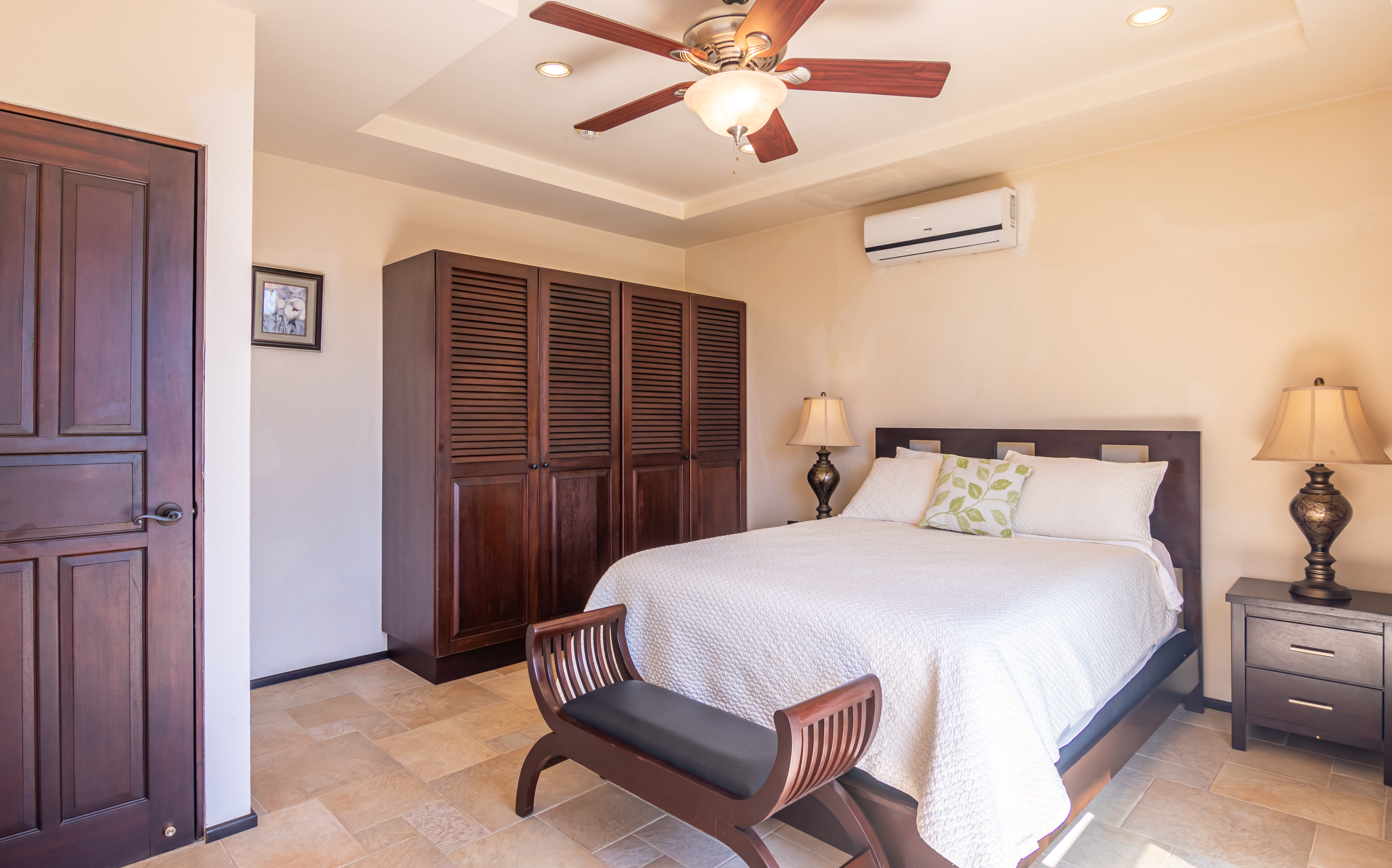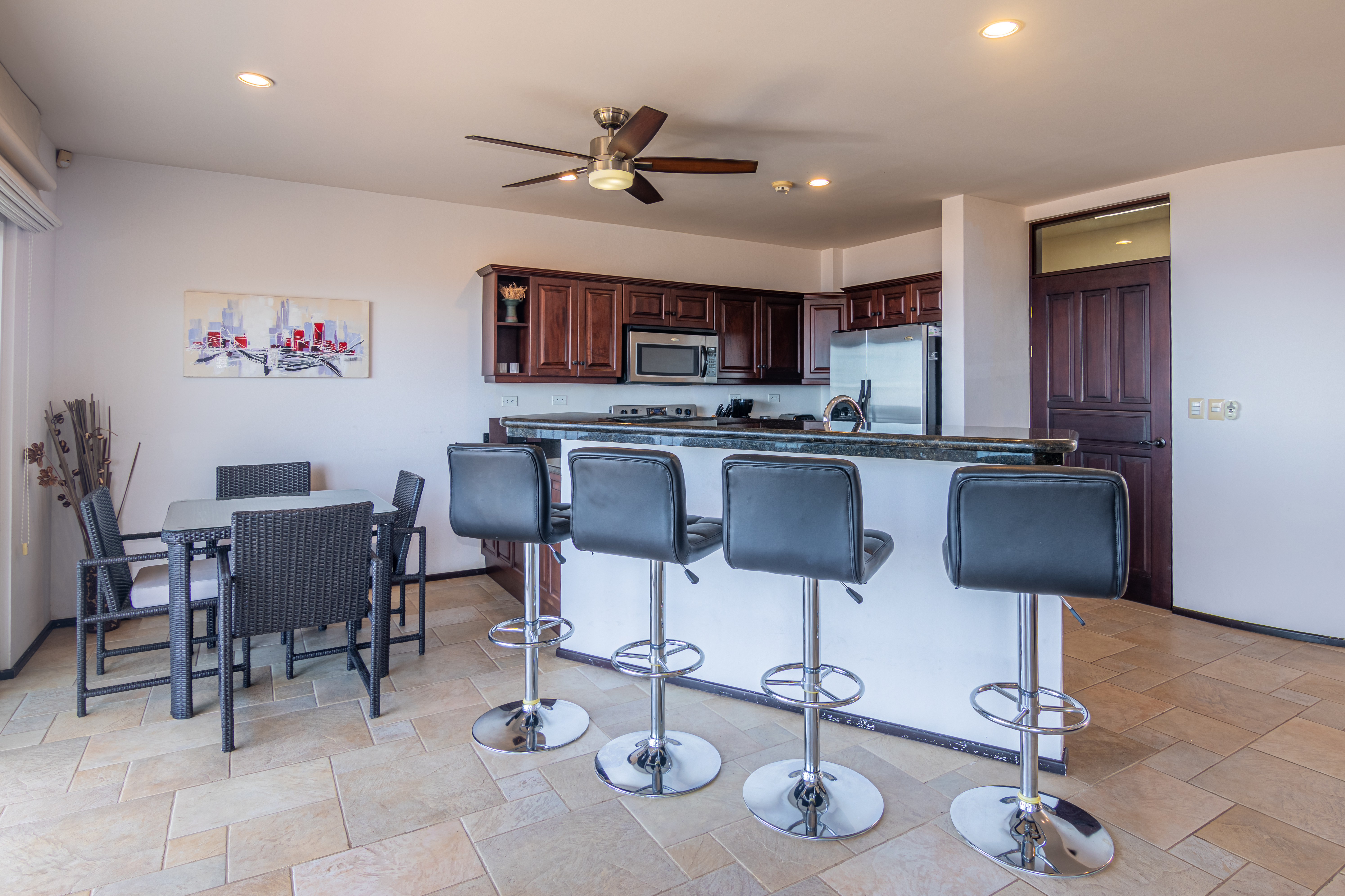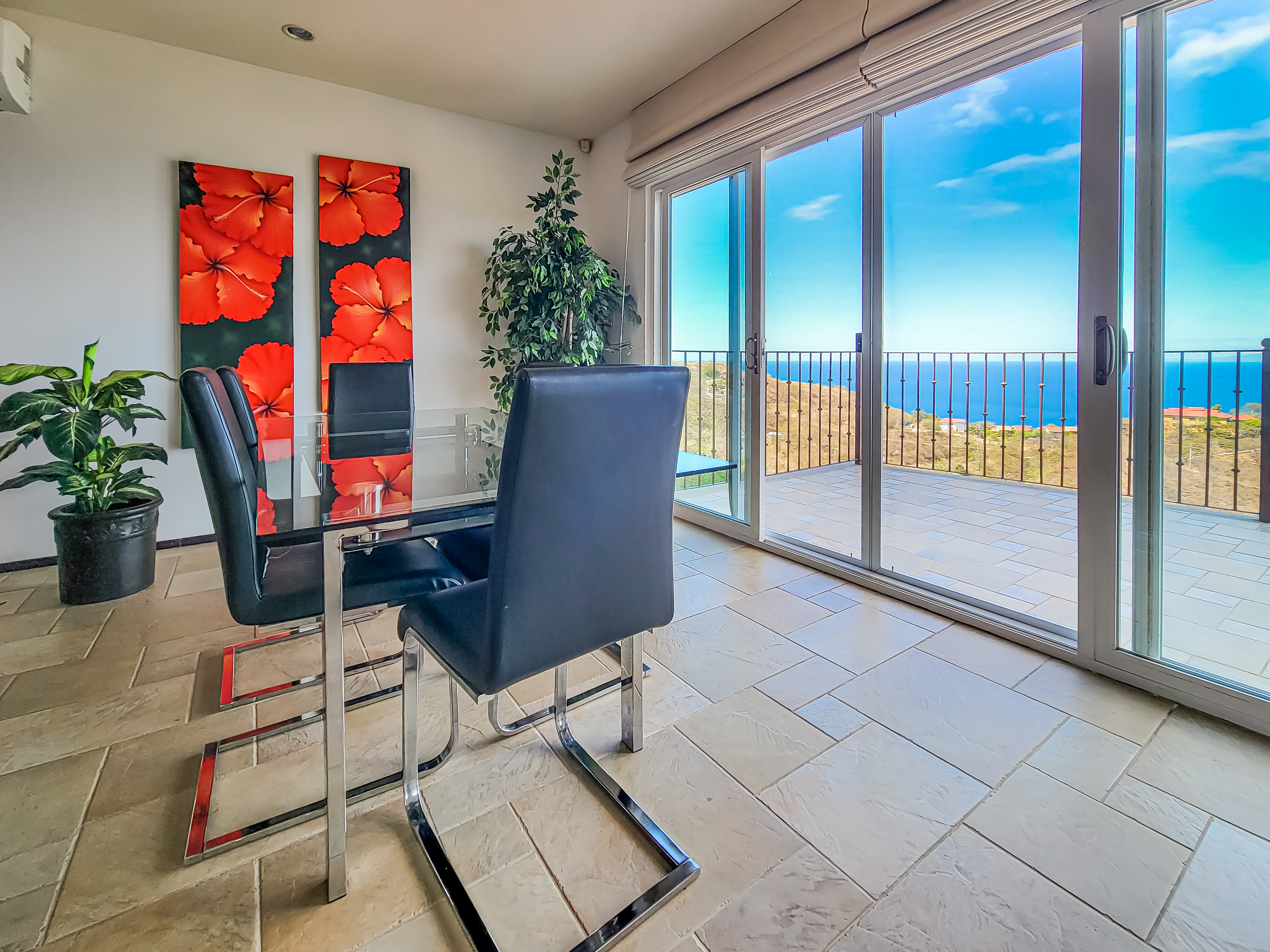 Enjoy luxury living in Corona Del Mar gated development with only 12 units offering the best ocean views’ condos in the area. Be amazed by the spectacular panorama of the Pacifico Ocean, mountains and Santa Rosa National park as you enter the main door of this two-level 2,860 sf fully furnished and equipped unit. Living and dining areas offer ample space for entertaining and open up to a large balcony. The spacious kitchen has hardwood cabinets, granite countertops and stainless-steel appliances. One of the bedrooms is conveniently located on the main level. Second level accommodates three more bedrooms. The master suite includes a walk-in-closet and en-suite bath. All upper bedrooms have good size patios to enjoy the magnificent views all around. This condo is located very close to the oversized infinity pool that comes with a lounge and BBQ areas. Each unit has a separate enclosed garage and a storage unit. The development offers an equipped ocean view gym, gated entry and a guard on site. Only few minutes to most beautiful beaches, 10 minutes from center of Playas del Coco with all the amenities, and 30 minutes to Liberia International Airport. Don’t delay living your dreams and call today to inquire!