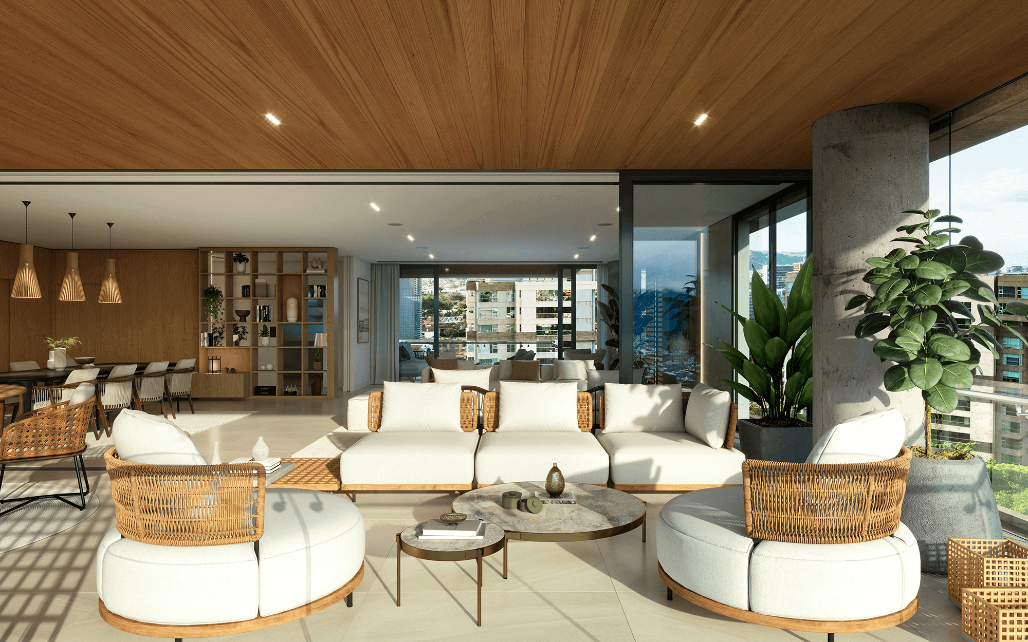 Residence 202 at Arcadia Central Park is an expansive luxury residence designed to showcase sweeping city and mountain panoramas through 270-degree exposure. Defined by its generous scale and outdoor living, the residence features an oversized triple-exposure terrace complemented by a secondary balcony, extending the living experience across multiple outdoor environments within Central Park Escazú.