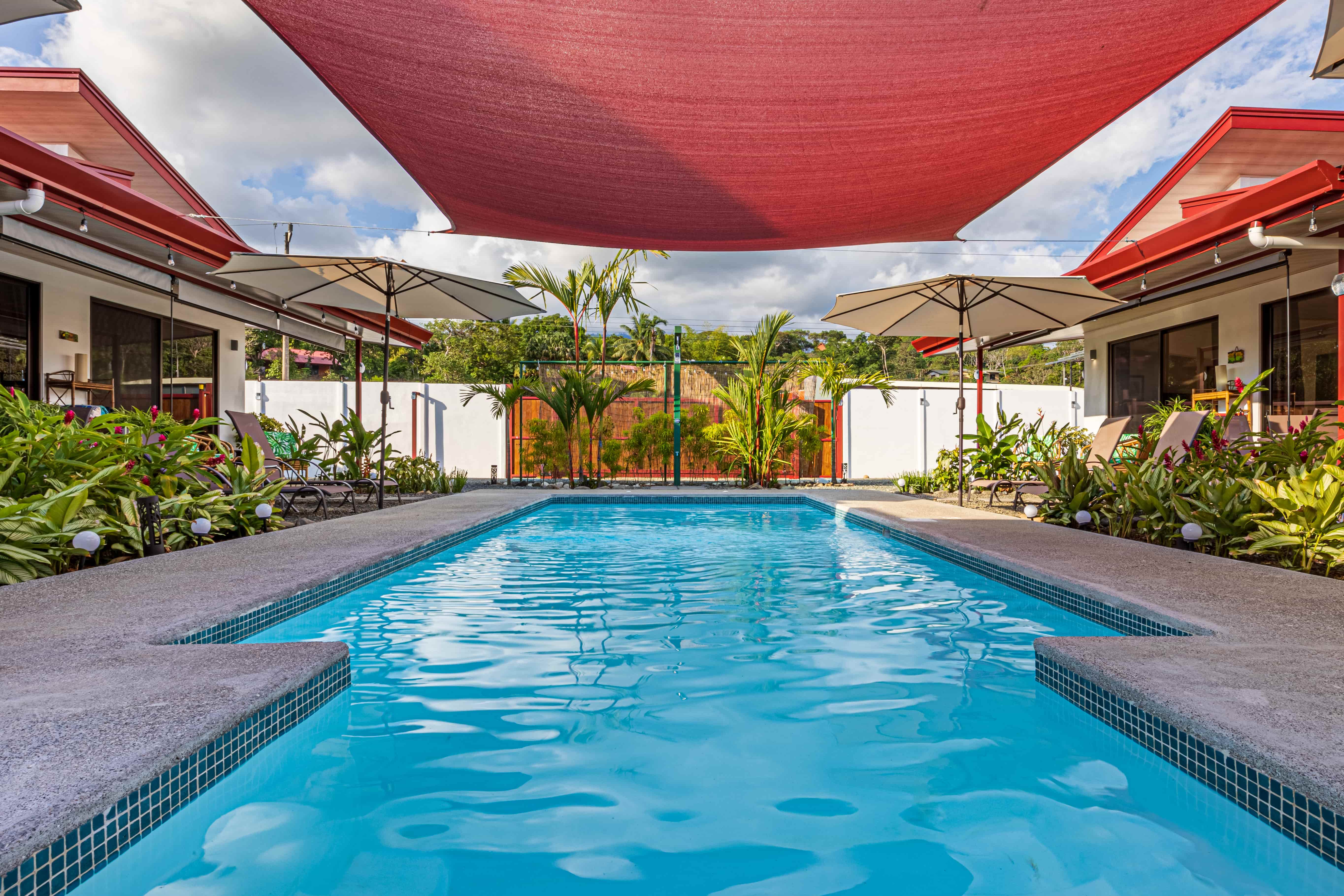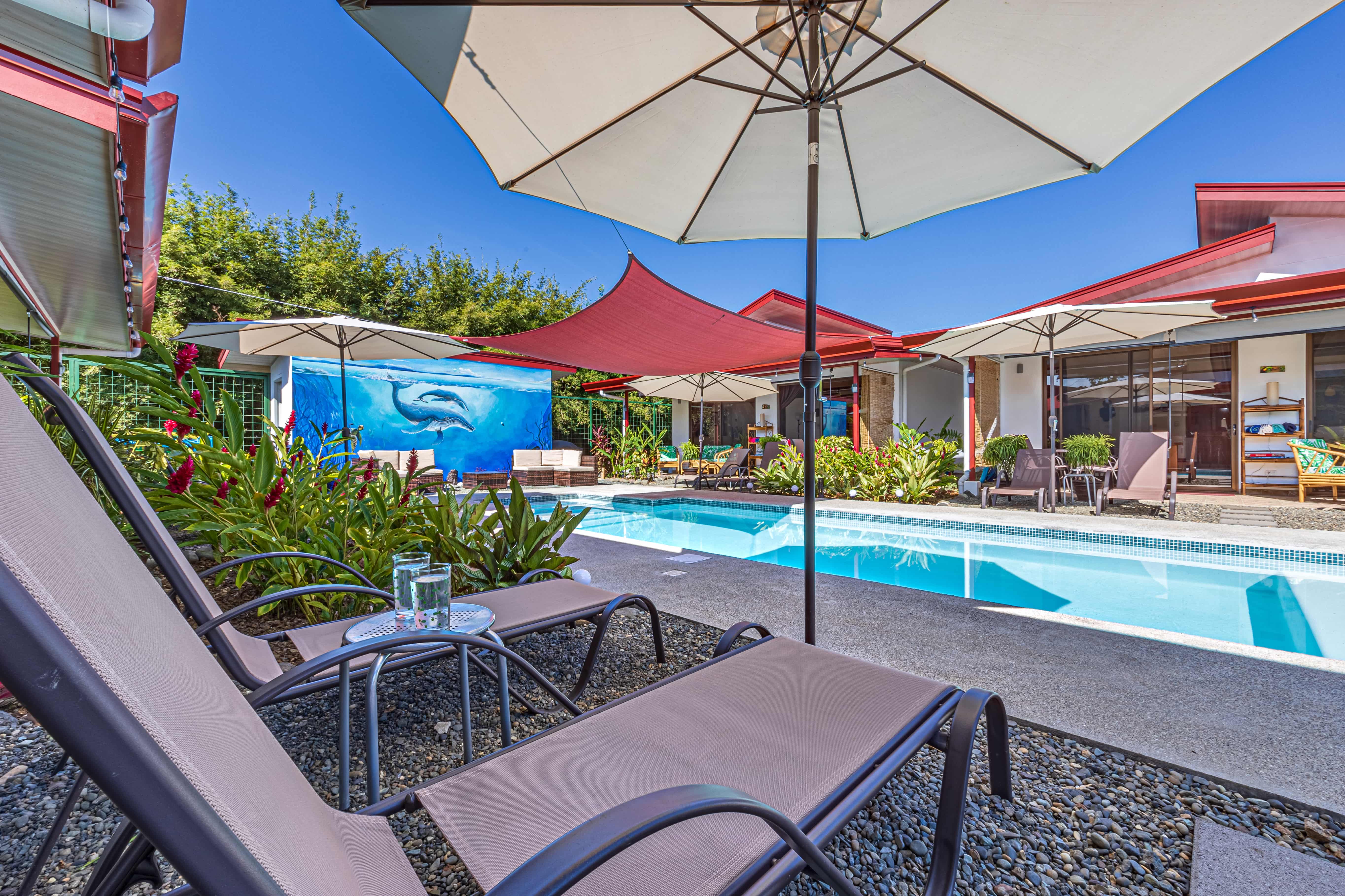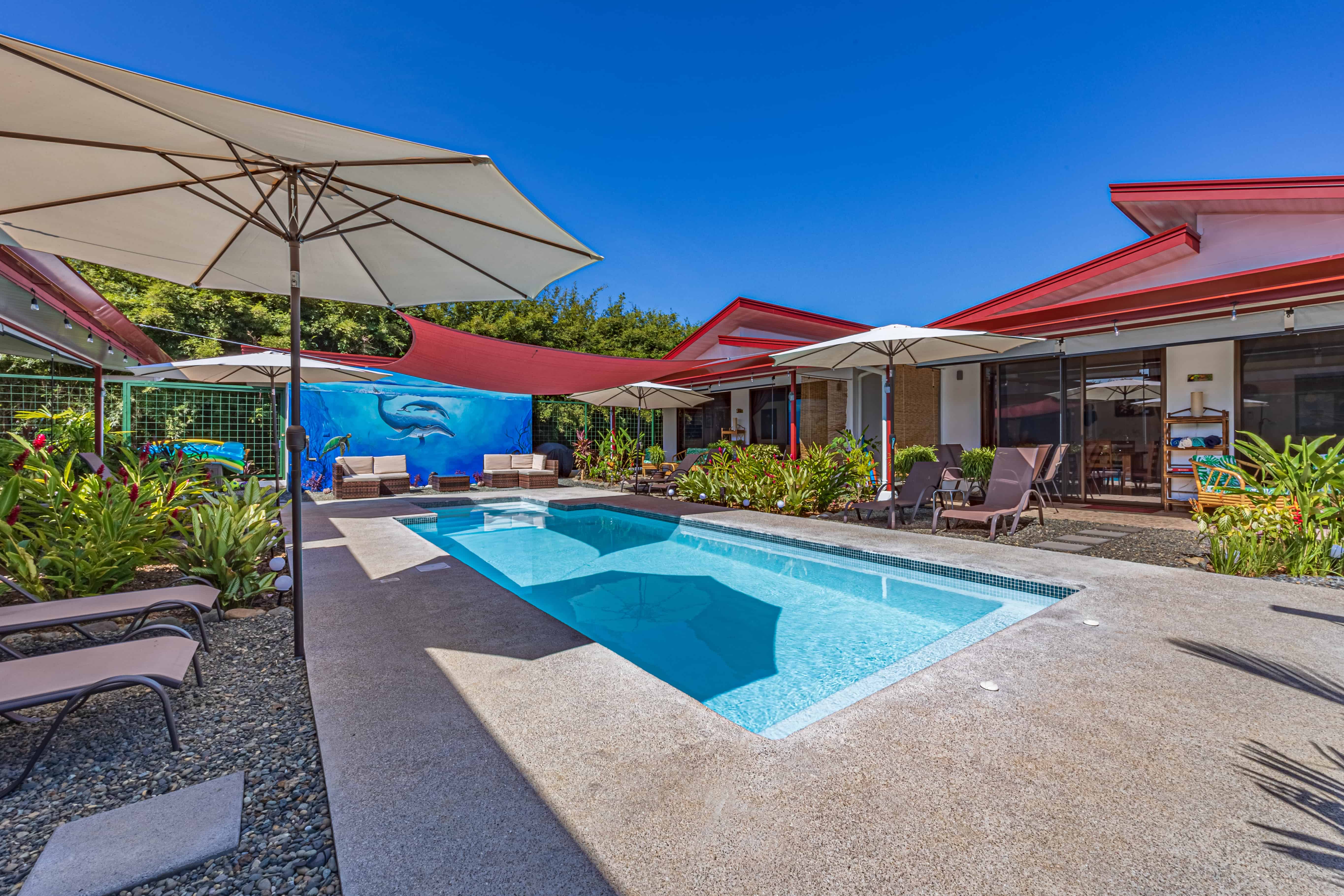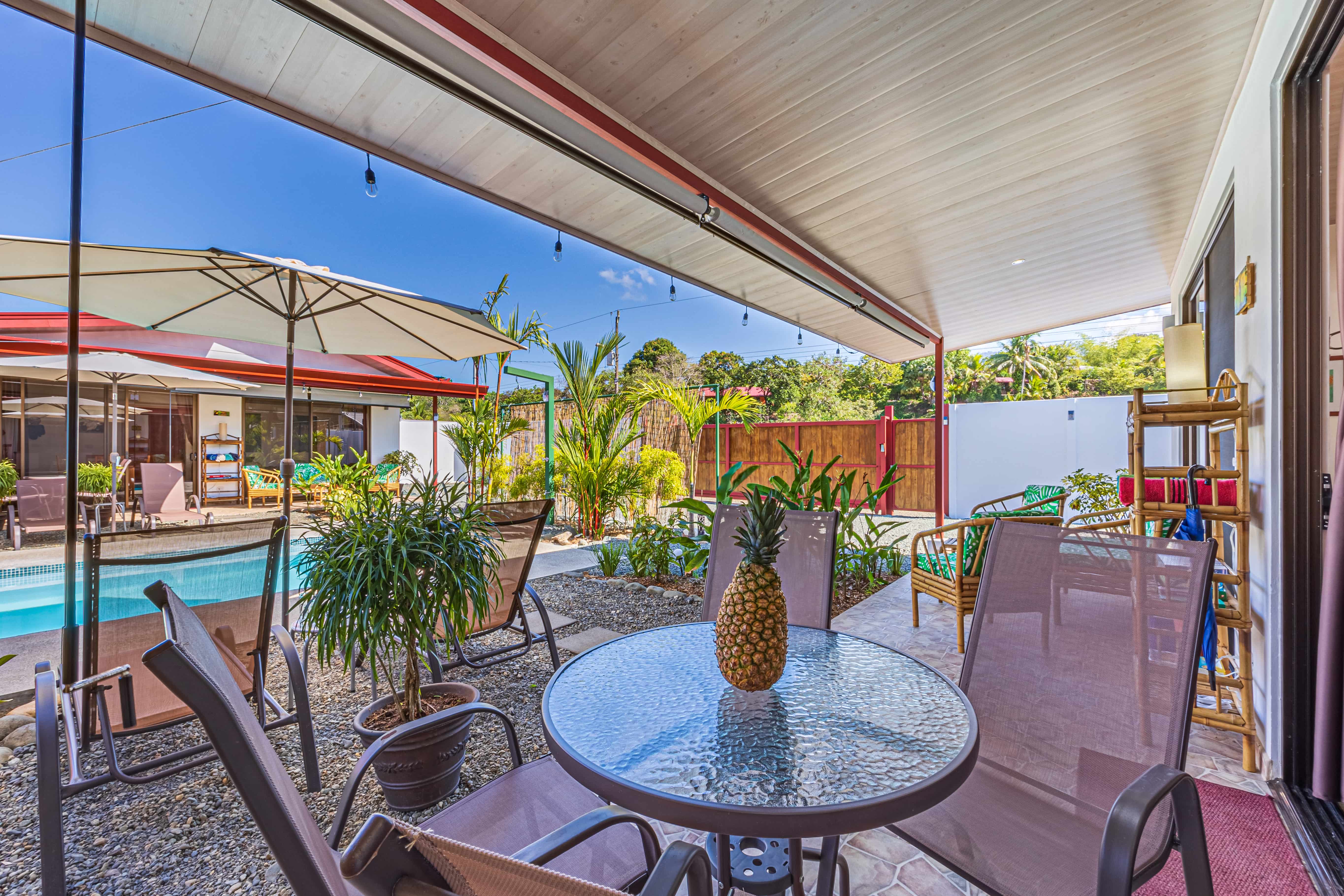 Additional amenities include a shared pool with an outdoor seating area, a laundry room equipped with a washer and dryer for staff use, and an outdoor covered laundry area for guests. The pool room acts as extra storage. Conveniently located, with an elegantly practical design, this property has garnered stellar reviews and enjoys high occupancy rates on Airbnb.