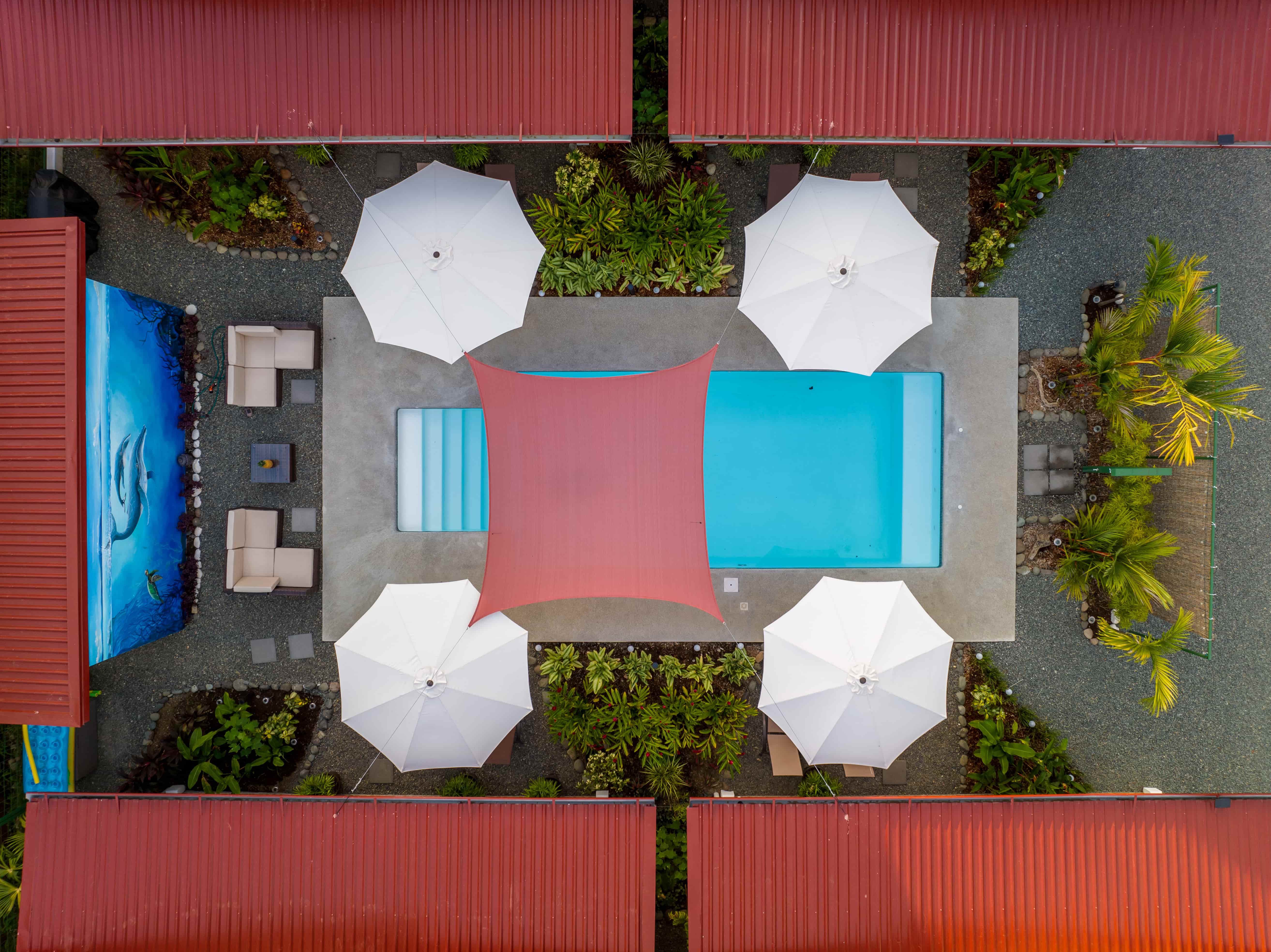 Accommodating up to four guests, each villa includes a sleeping sofa that extends into a full-sized bed and features a fully equipped kitchen to delight any chef. Ceiling fans and air conditioning ensure comfort after a day in the sun. The property is enclosed by an electric sliding gate and includes parking for four cars, with a spot designated for each villa.