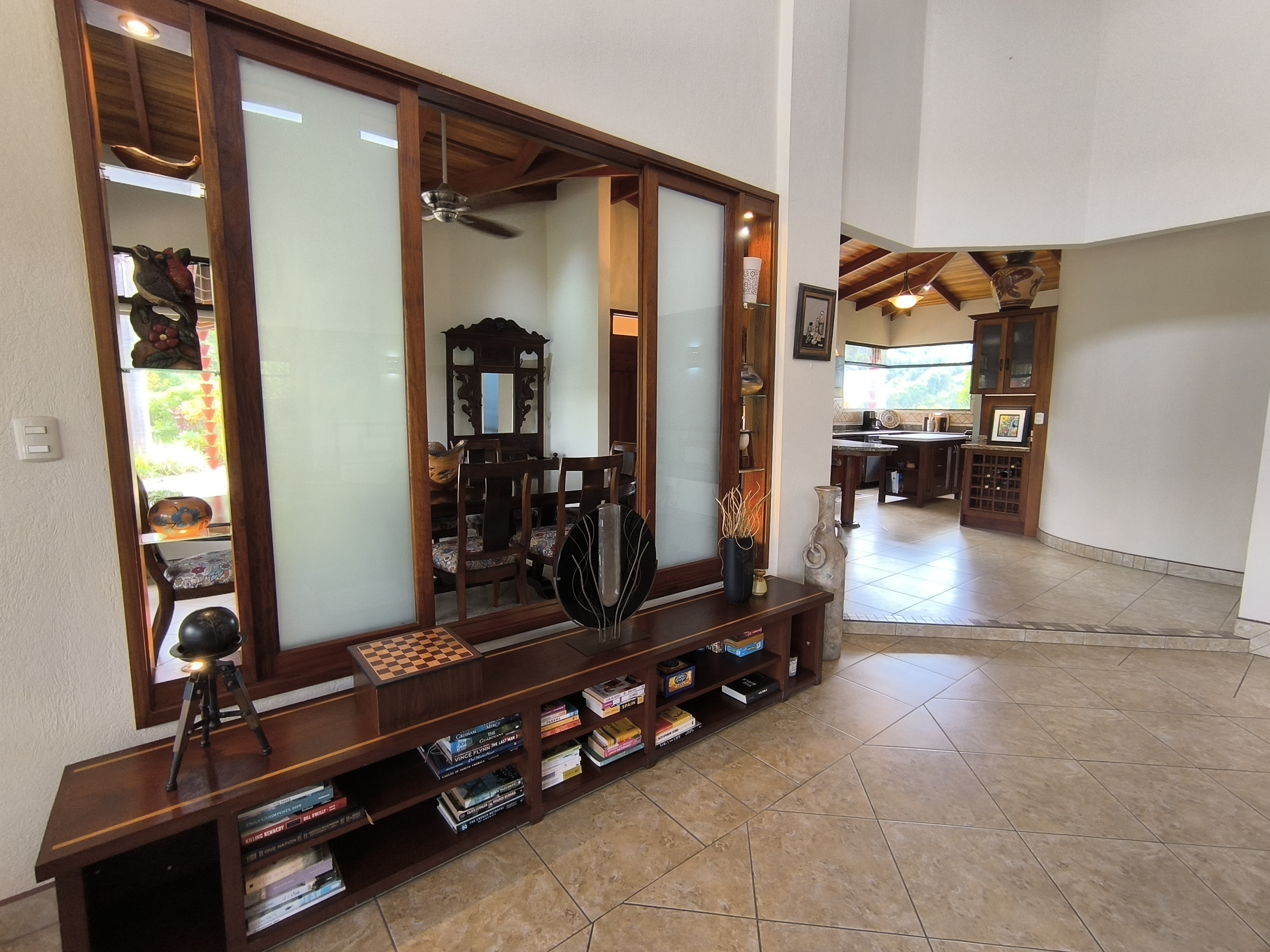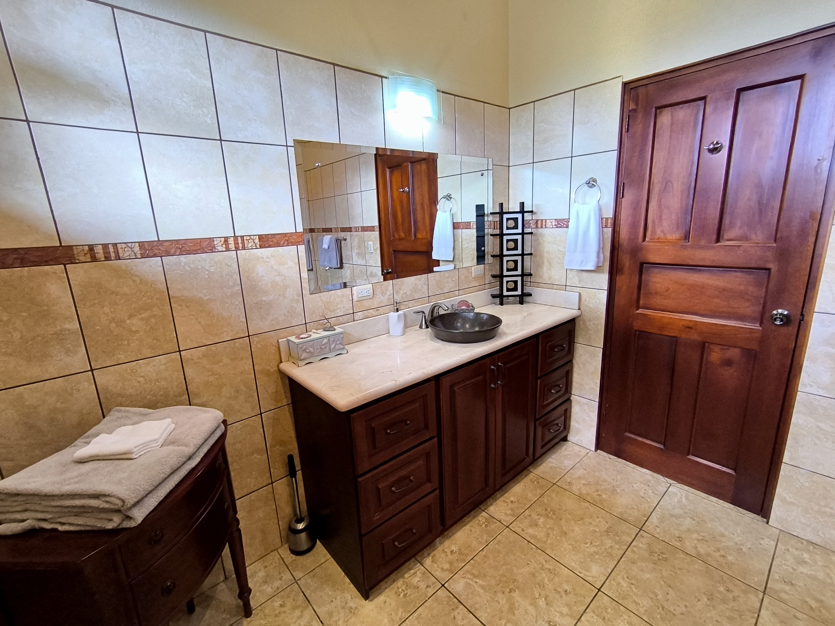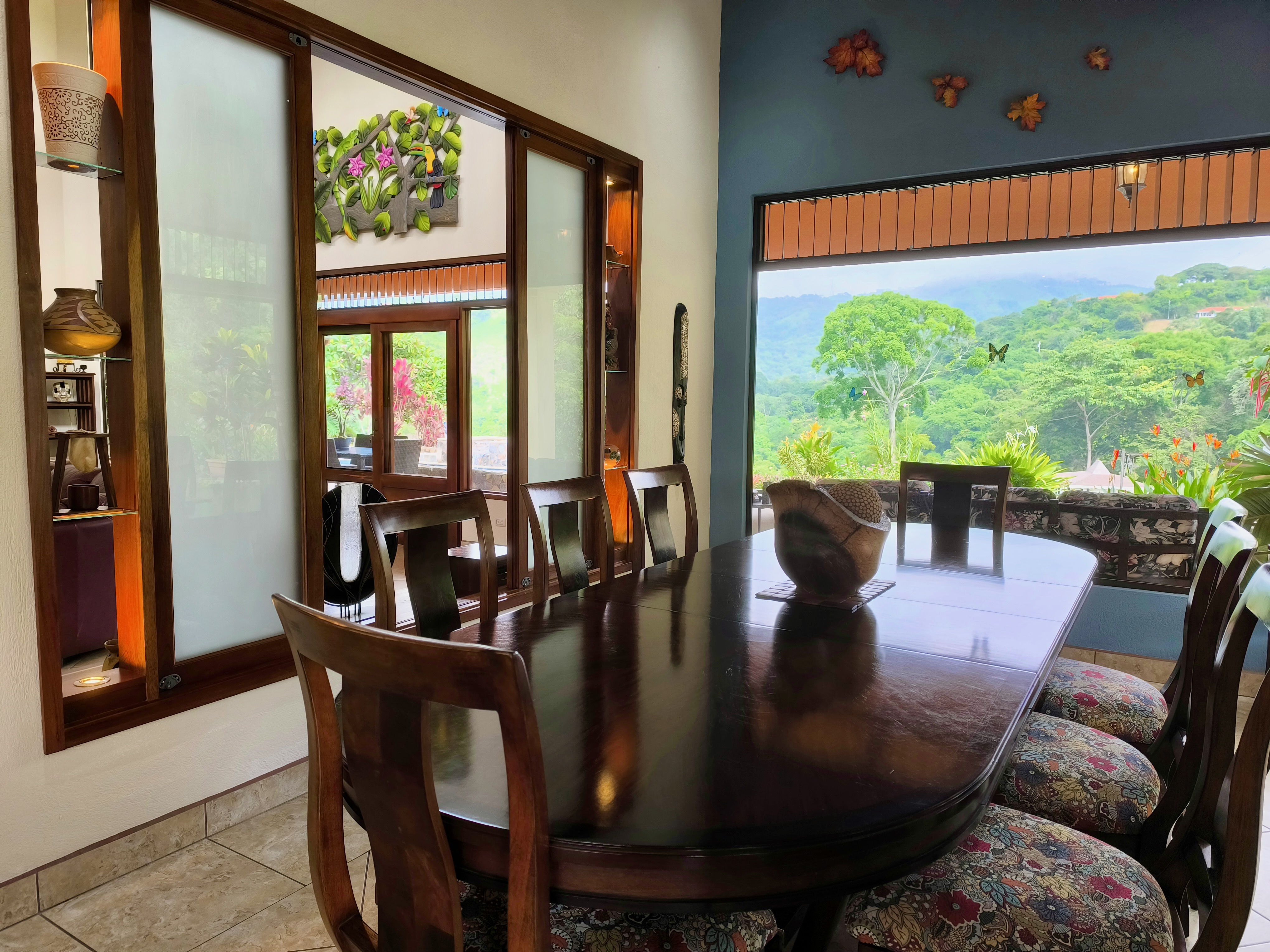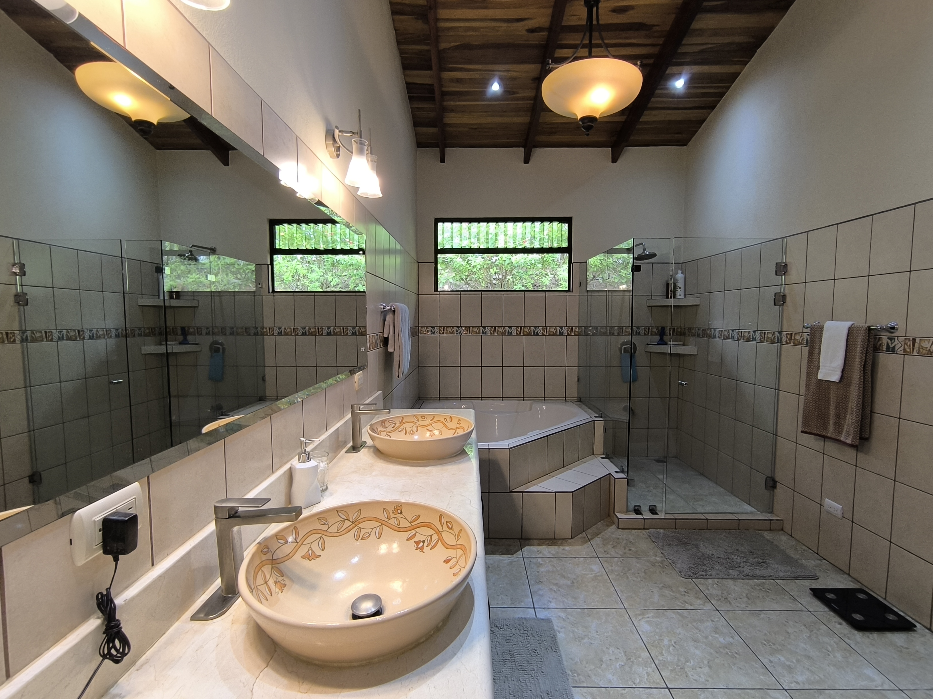 Comprising 3 bedrooms and 2.5 bathrooms, the primary residence embodies a harmonious fusion of classic design elements and distinctive Costa Rican architectural touches, including soaring vaulted wood ceilings, expansive wall-to-wall windows, and sliding glass doors, seamlessly blending indoor and outdoor living spaces.