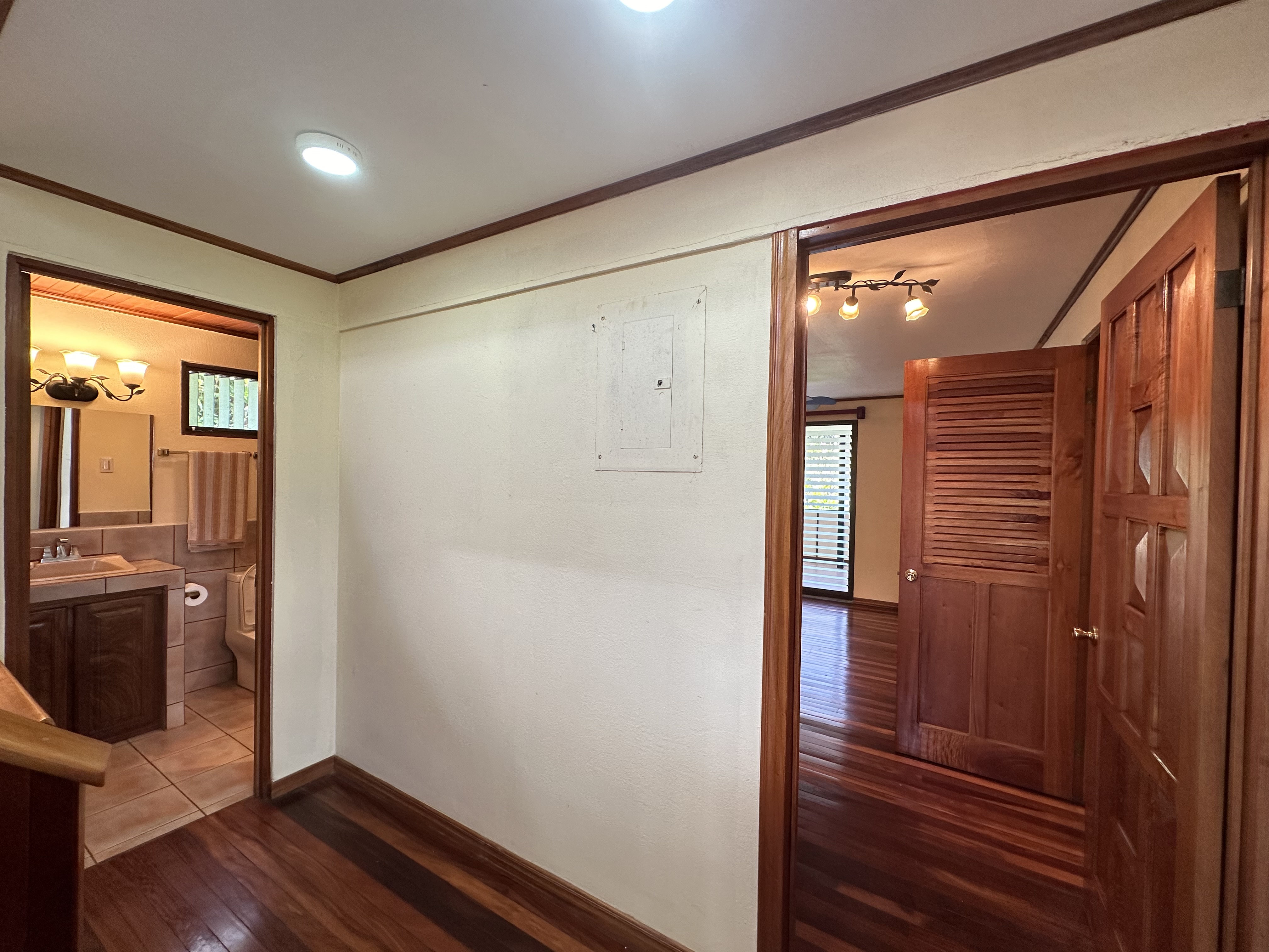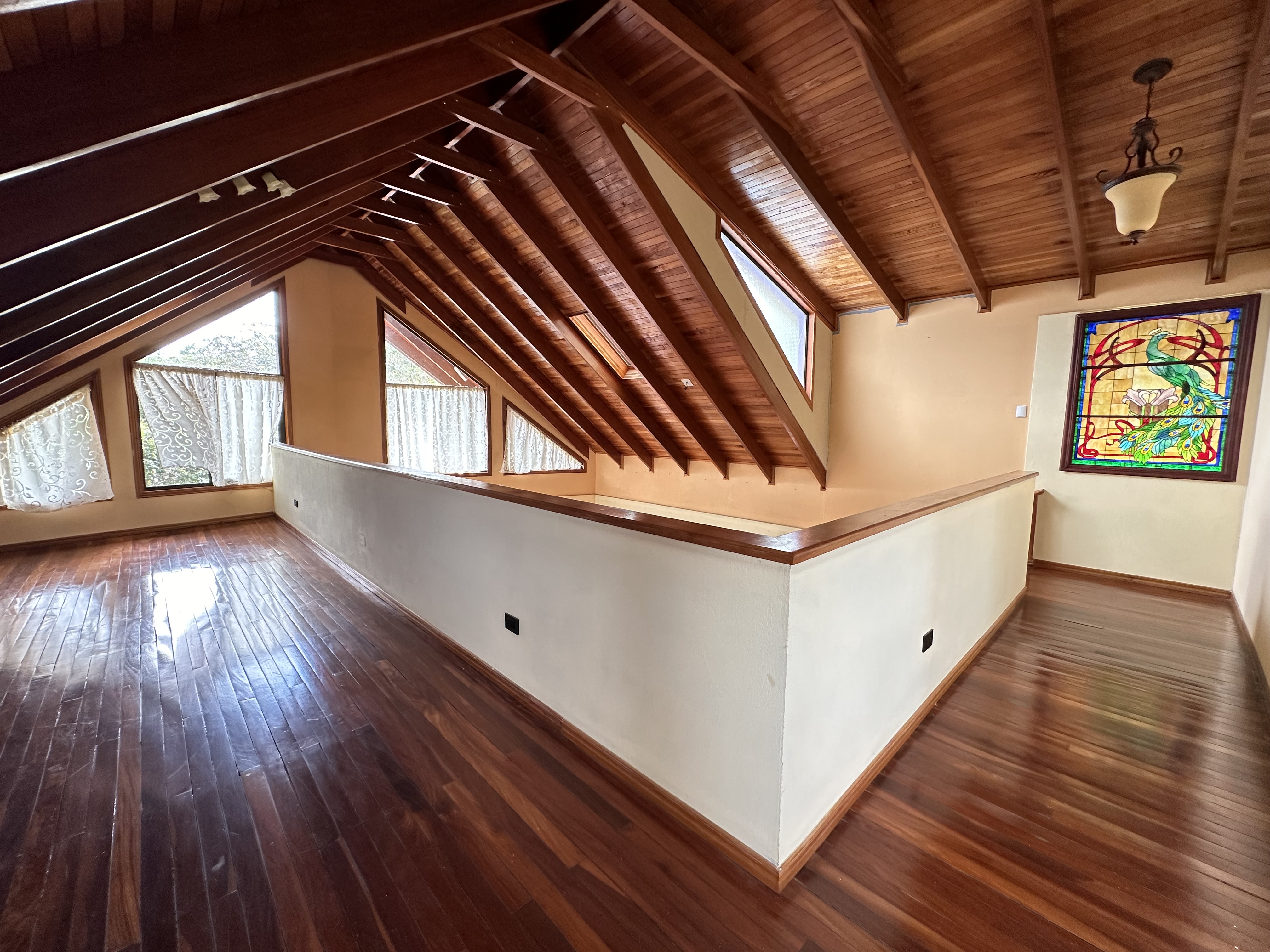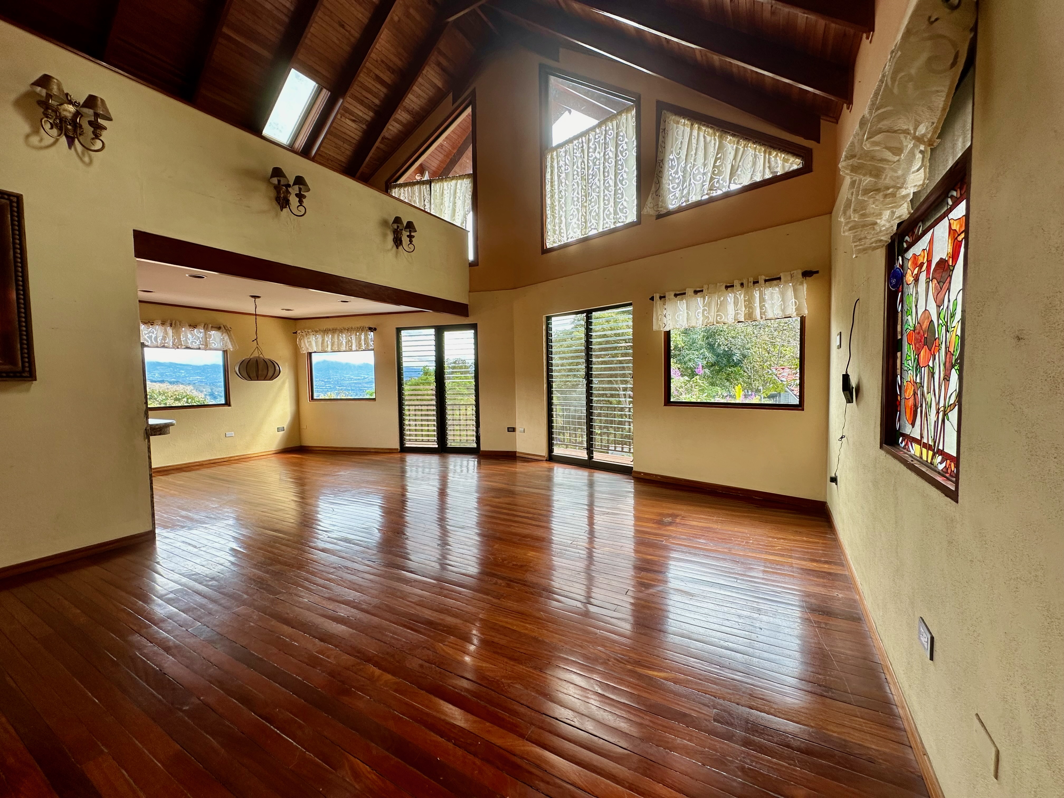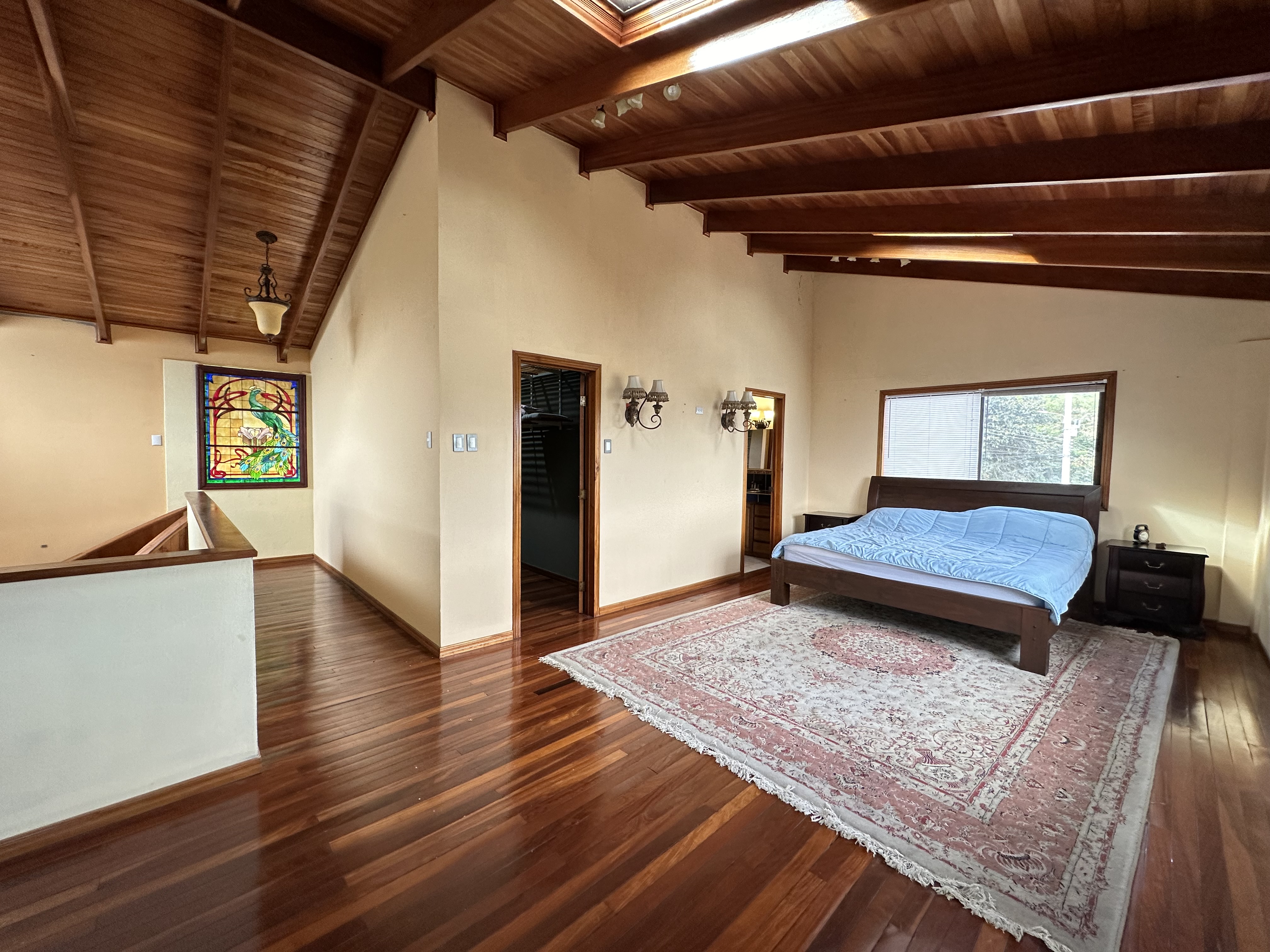 Second Floor: A stunning spiral staircase with fine wooden steps leads to the top level, where the master suite awaits. This luxurious space includes a private bathroom, a walk-in closet, and breathtaking panoramic views—you can even spot multiple volcanoes on clear days! Additionally, there’s a spacious area that can serve as an office, studio, or anything you can imagine.