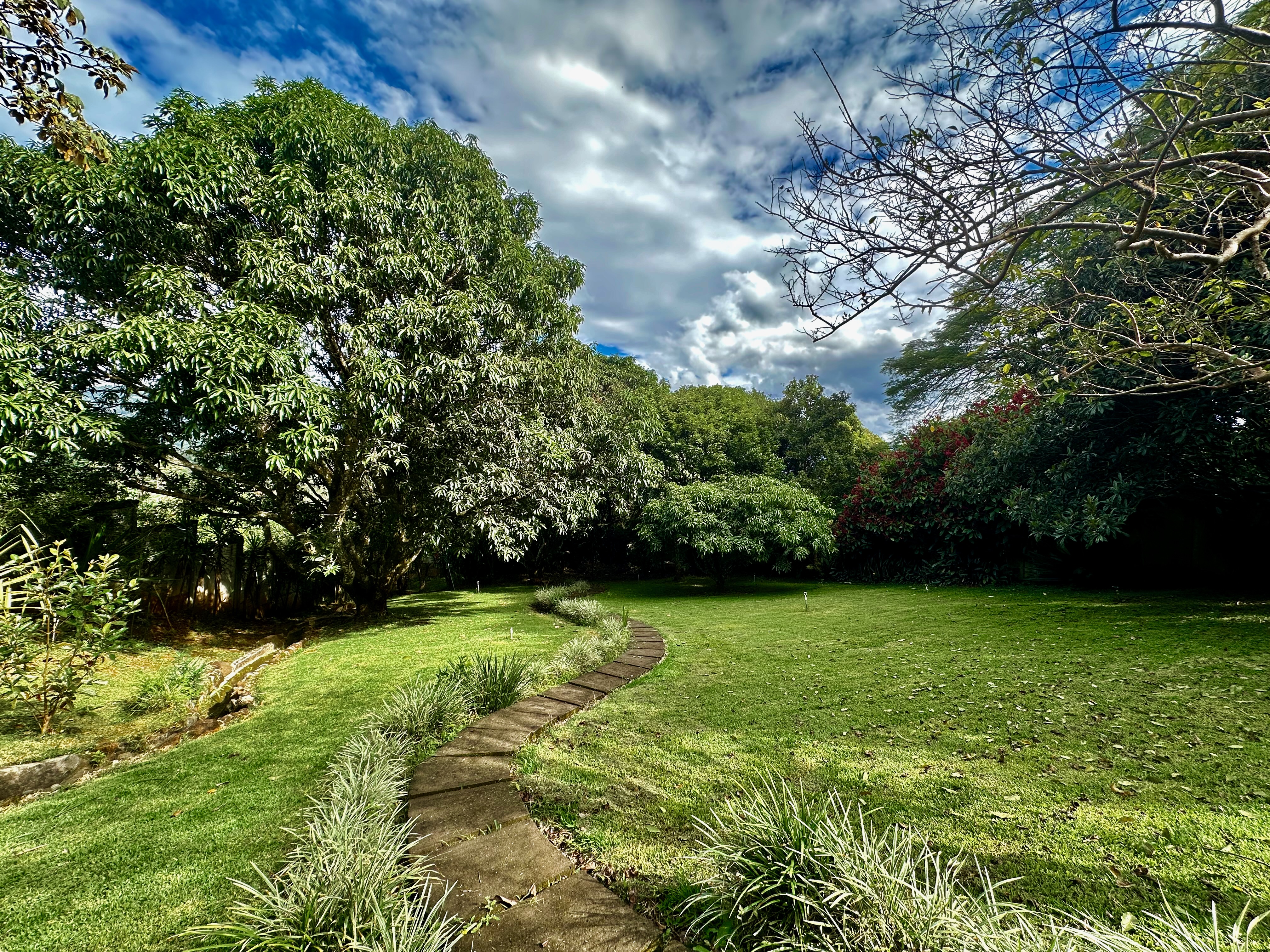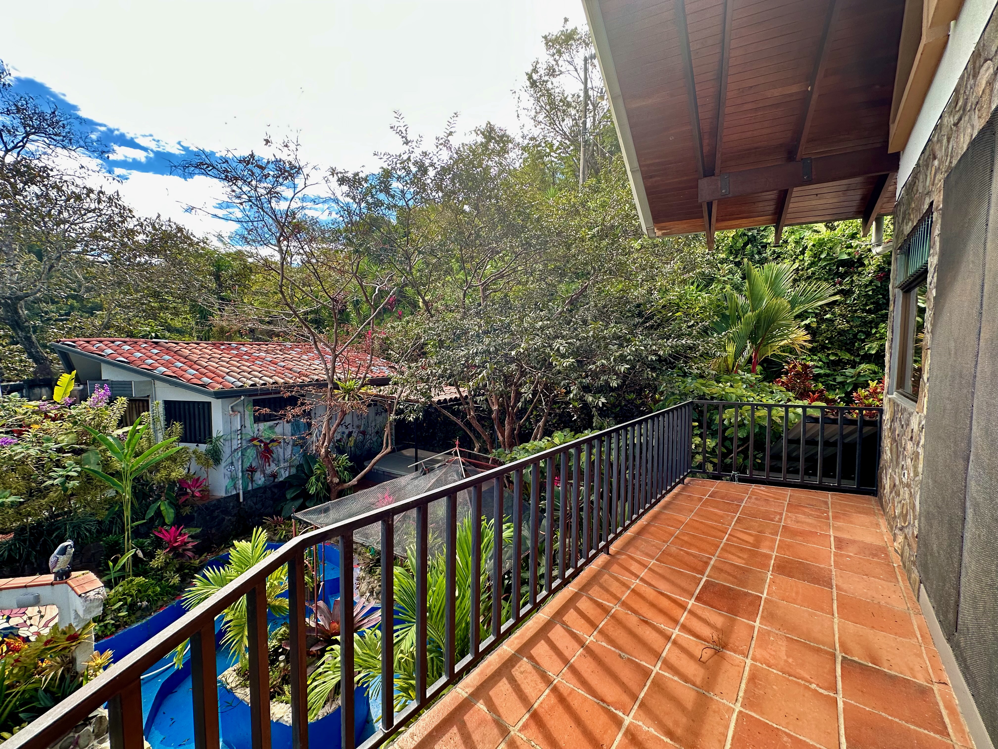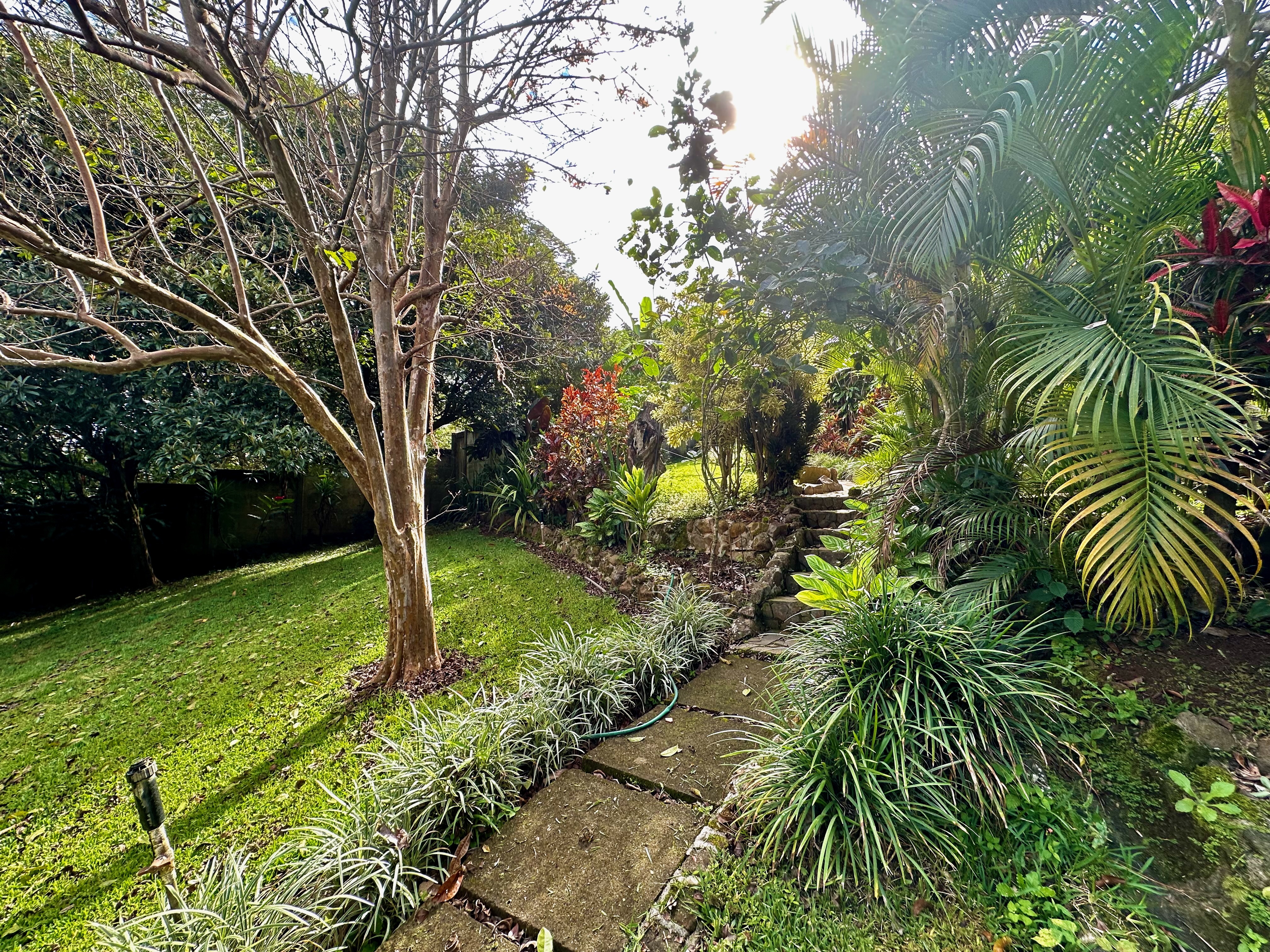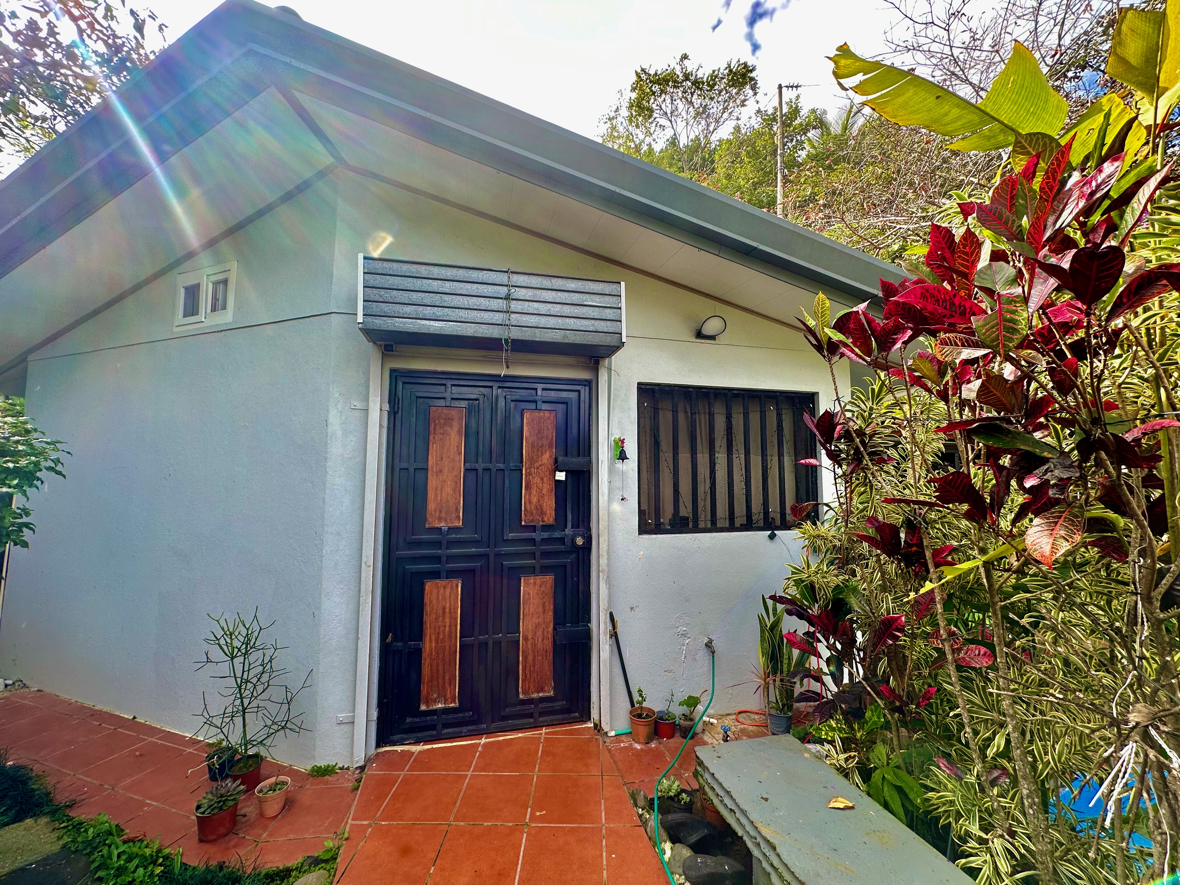 The beautifully landscaped tropical garden is accessible via concrete pathways, and a charming studio—currently used as a workshop—could be transformed into a guest room or yoga studio. There’s even a flat area ready for a guesthouse.