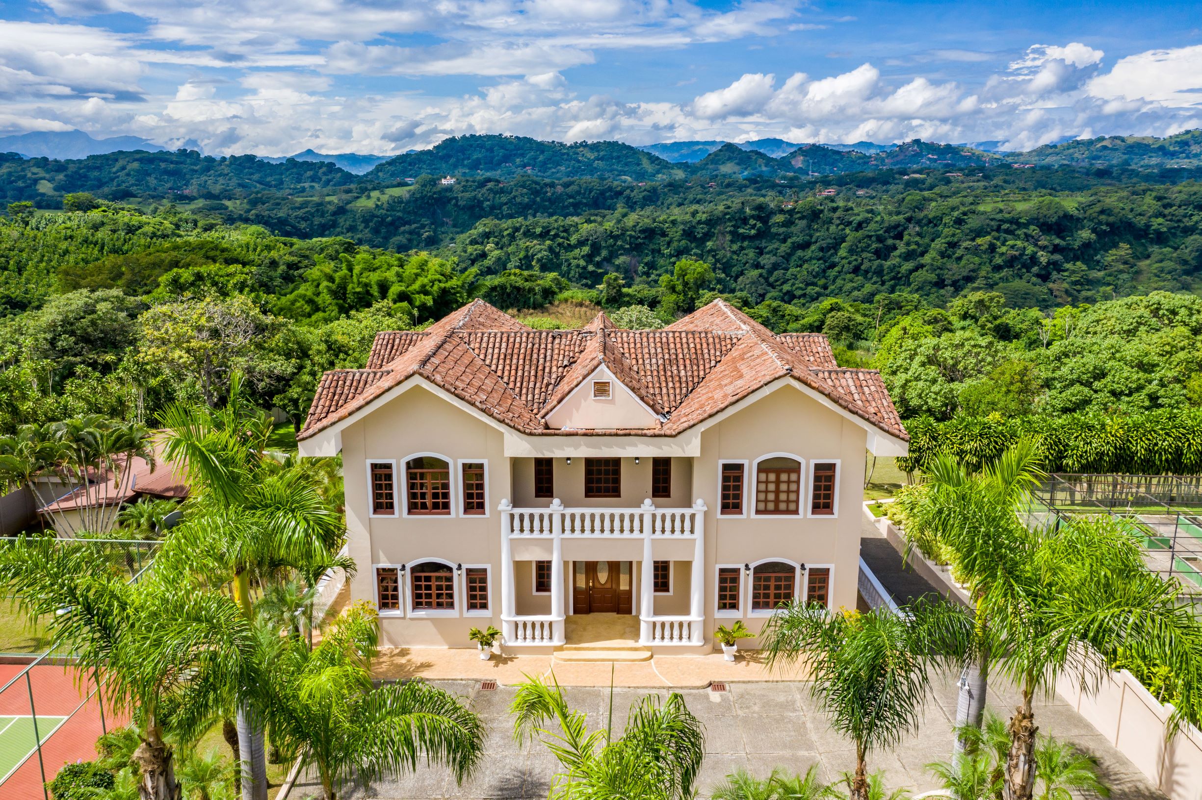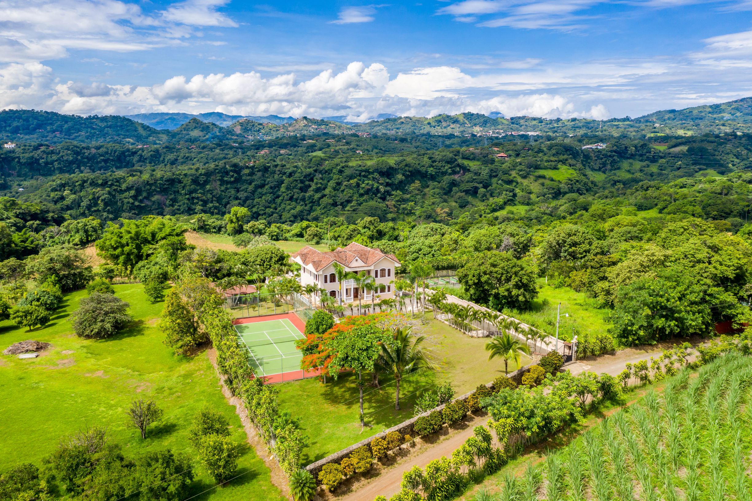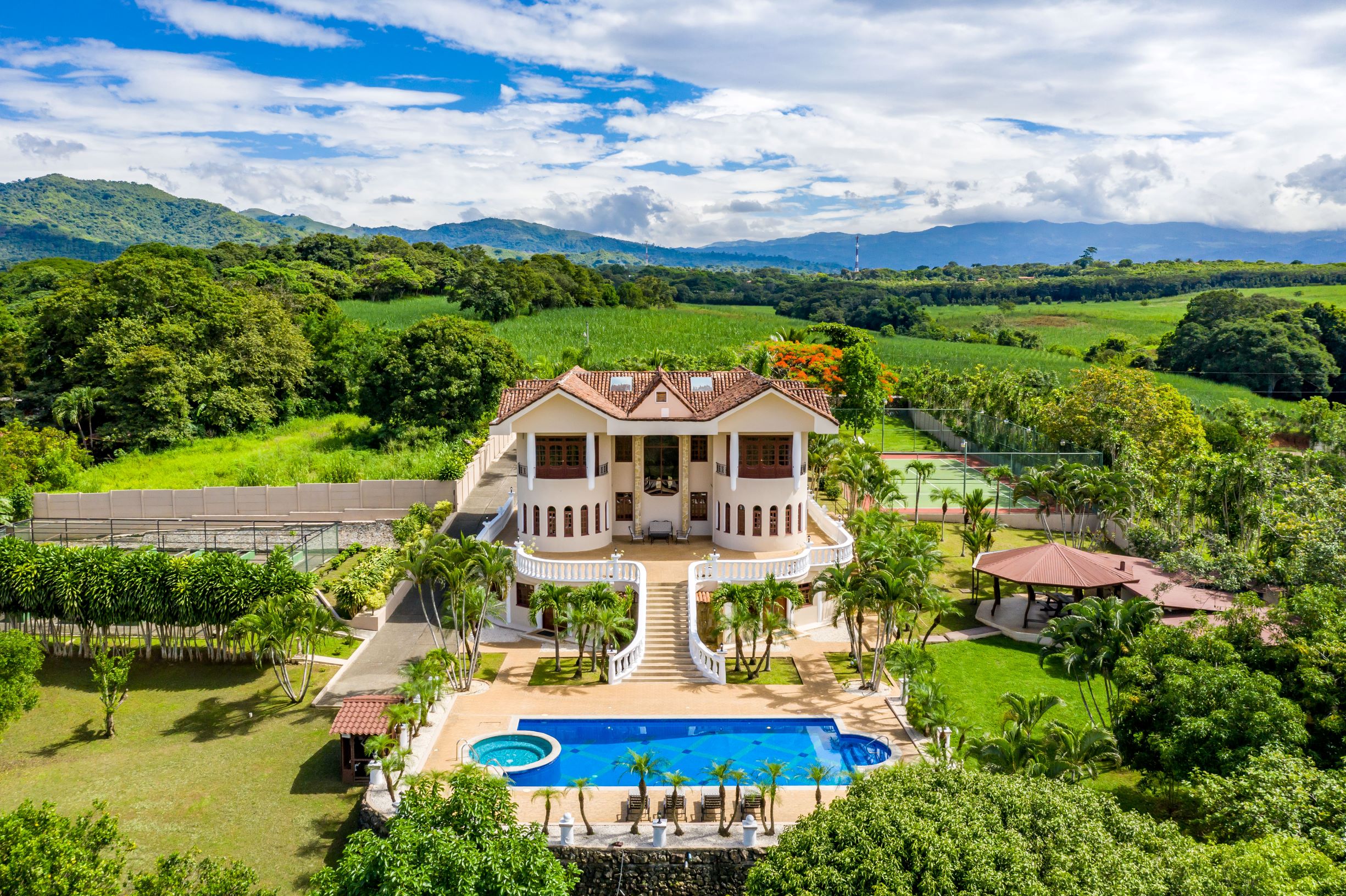 This 9,471m2 (2.34 acres), the private estate offers a resort and sustainable lifestyle with beautiful mountain views, a lighted tennis court, a large pool with jacuzzi and entertainment areas, solar panels, an irrigation system, well and raised gardens to grow your own organic vegetables and fruits.