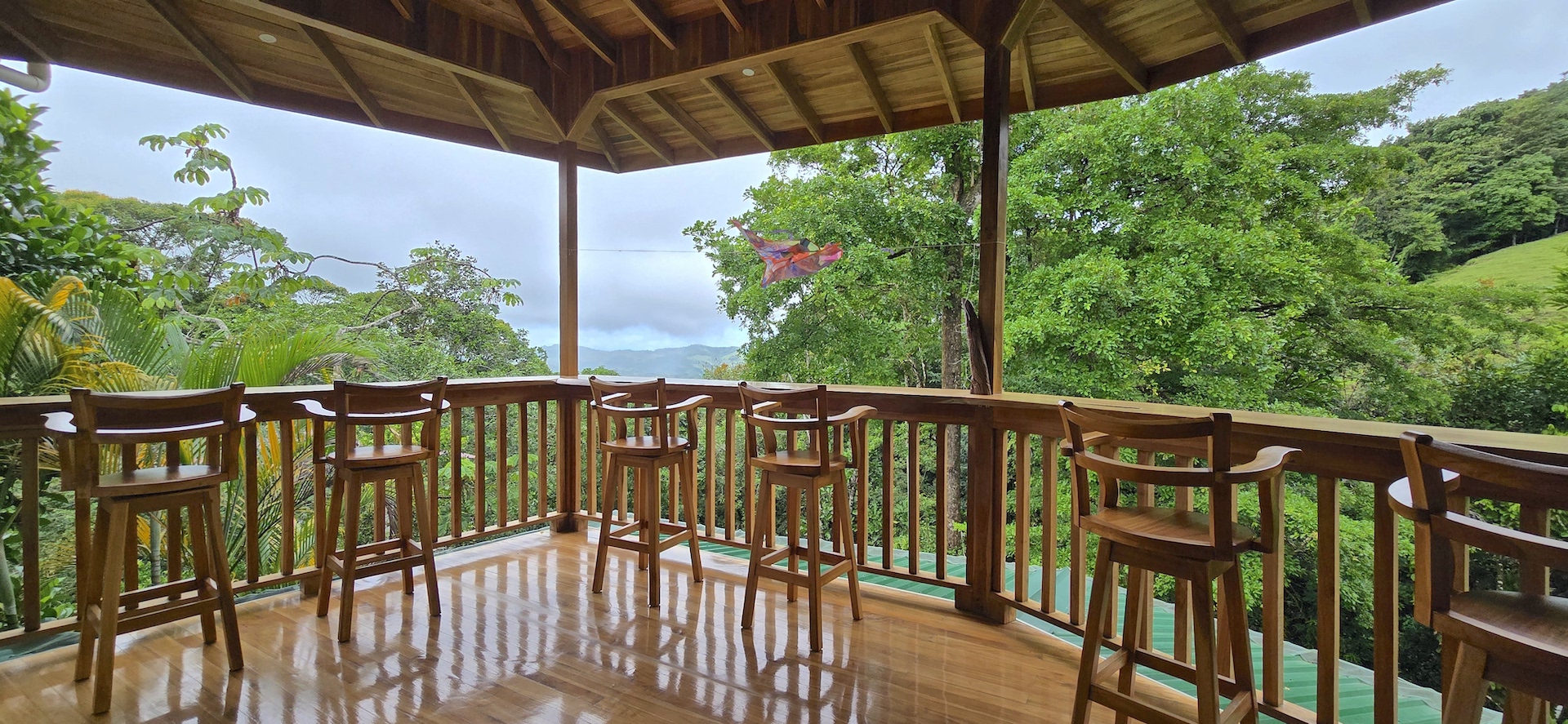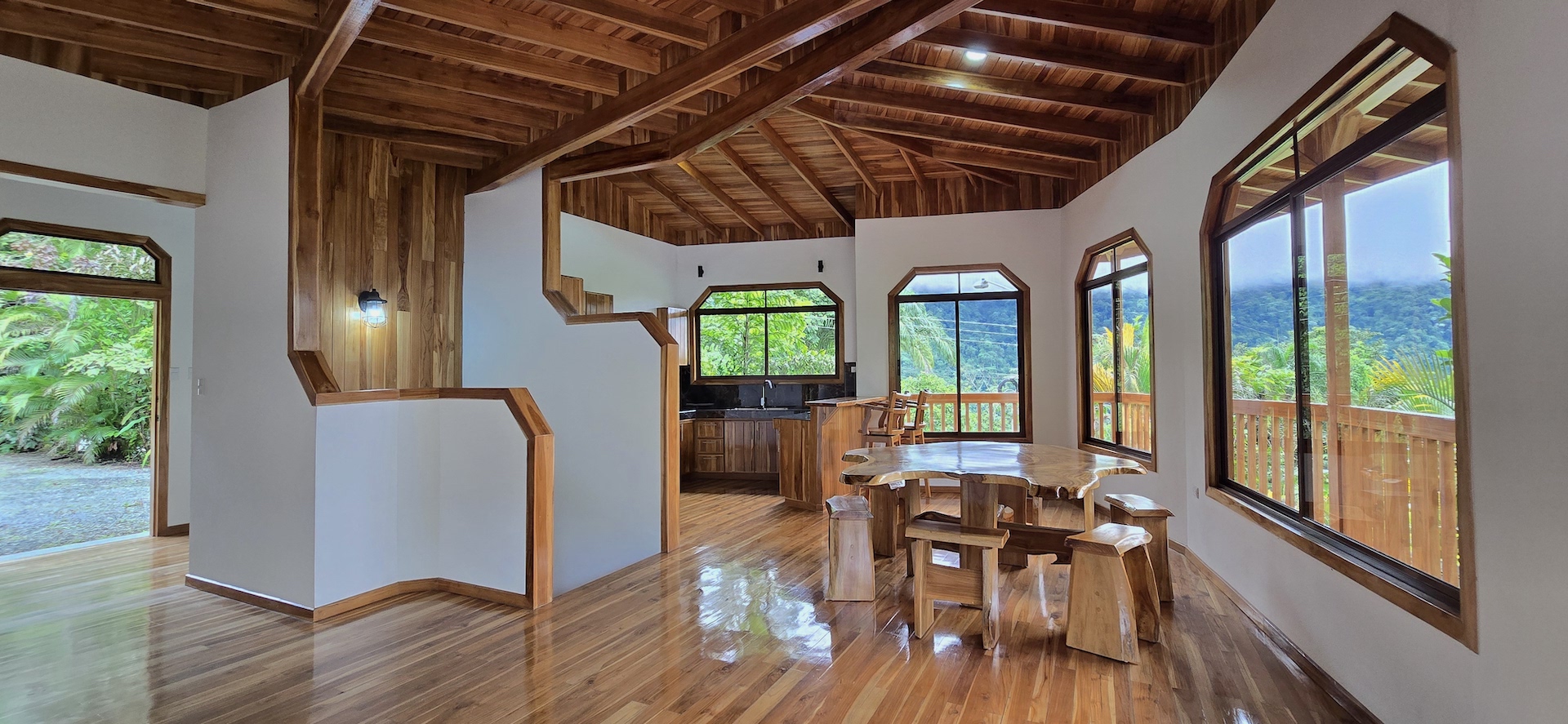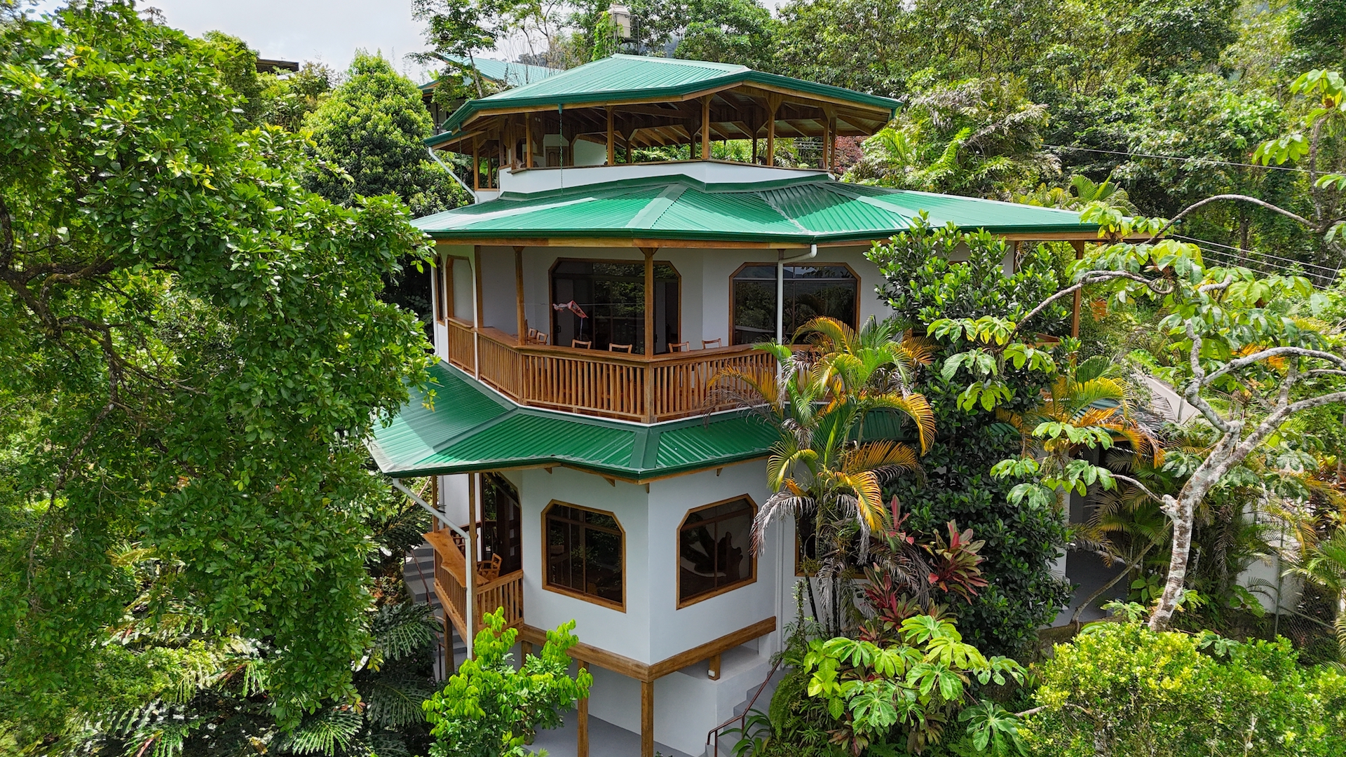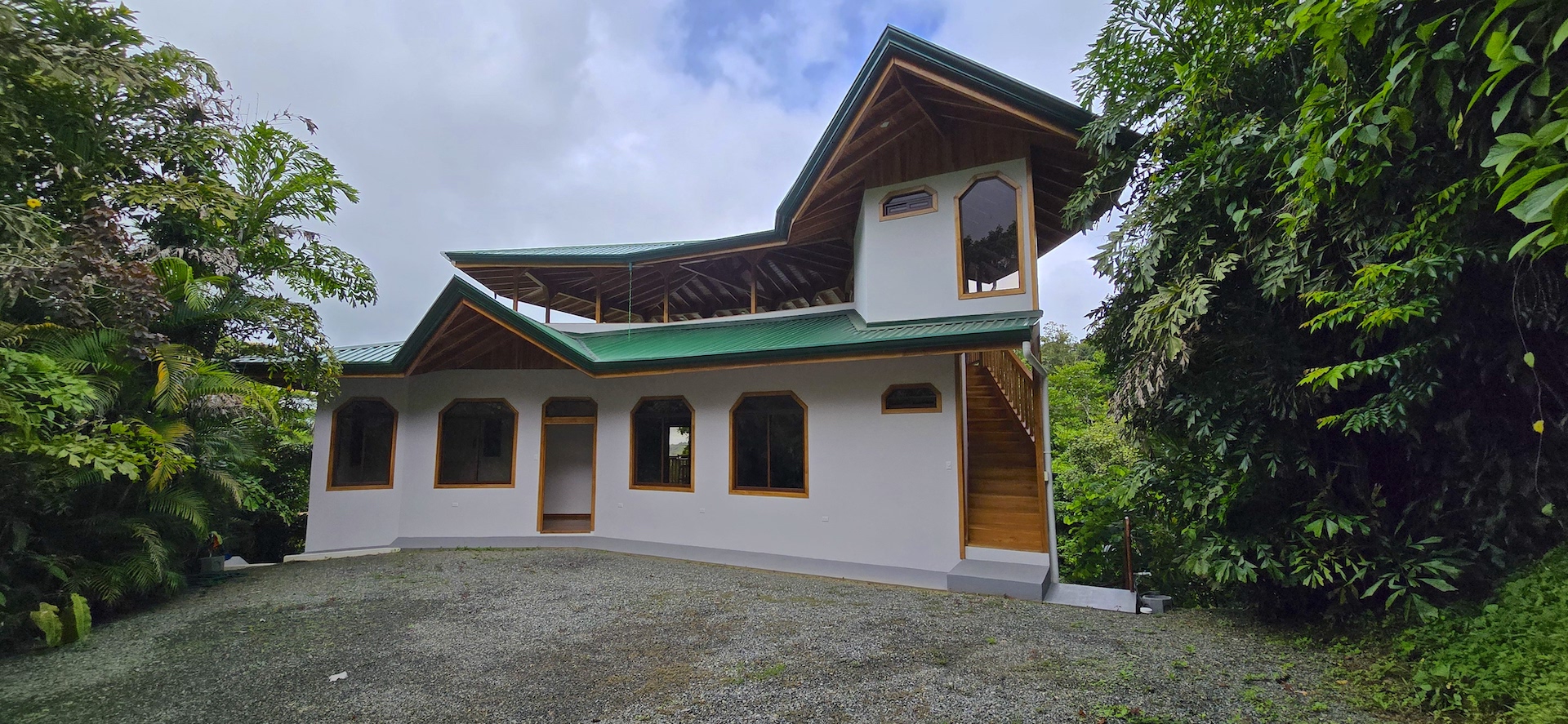 Completed in June 2024, this multi-level home features: - Construction with exotic hardwoods and premium materials - Spacious main living area with 2 bedrooms on the entry floor - A second full kitchen and bathroom on the top level with panoramic views—ideal for guests, rentals, or a creative studio - Large wrap-around terraces to enjoy the jungle sounds and misty mountain vistas - Gated access, with two entrances and a covered, secure garage - A natural creek with a small pool plus a vacant lot perfect for building a swimming pool or guesthouse
