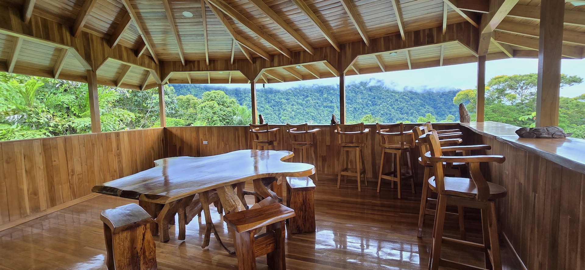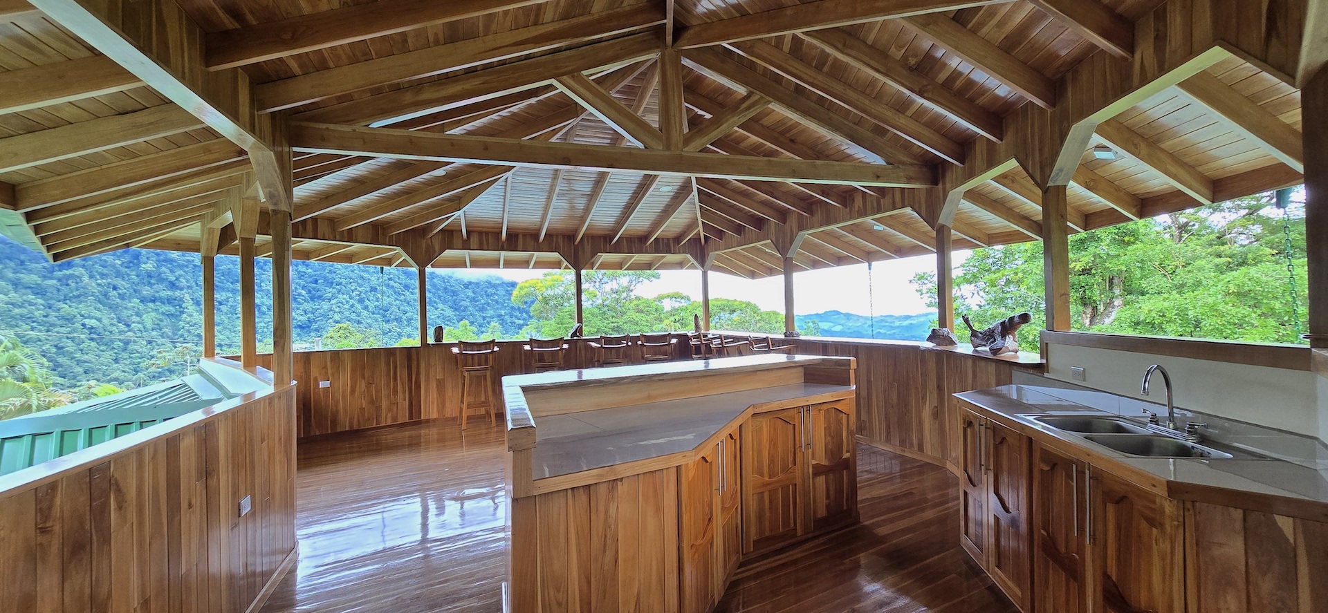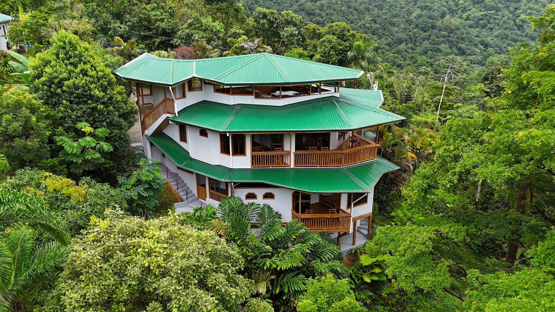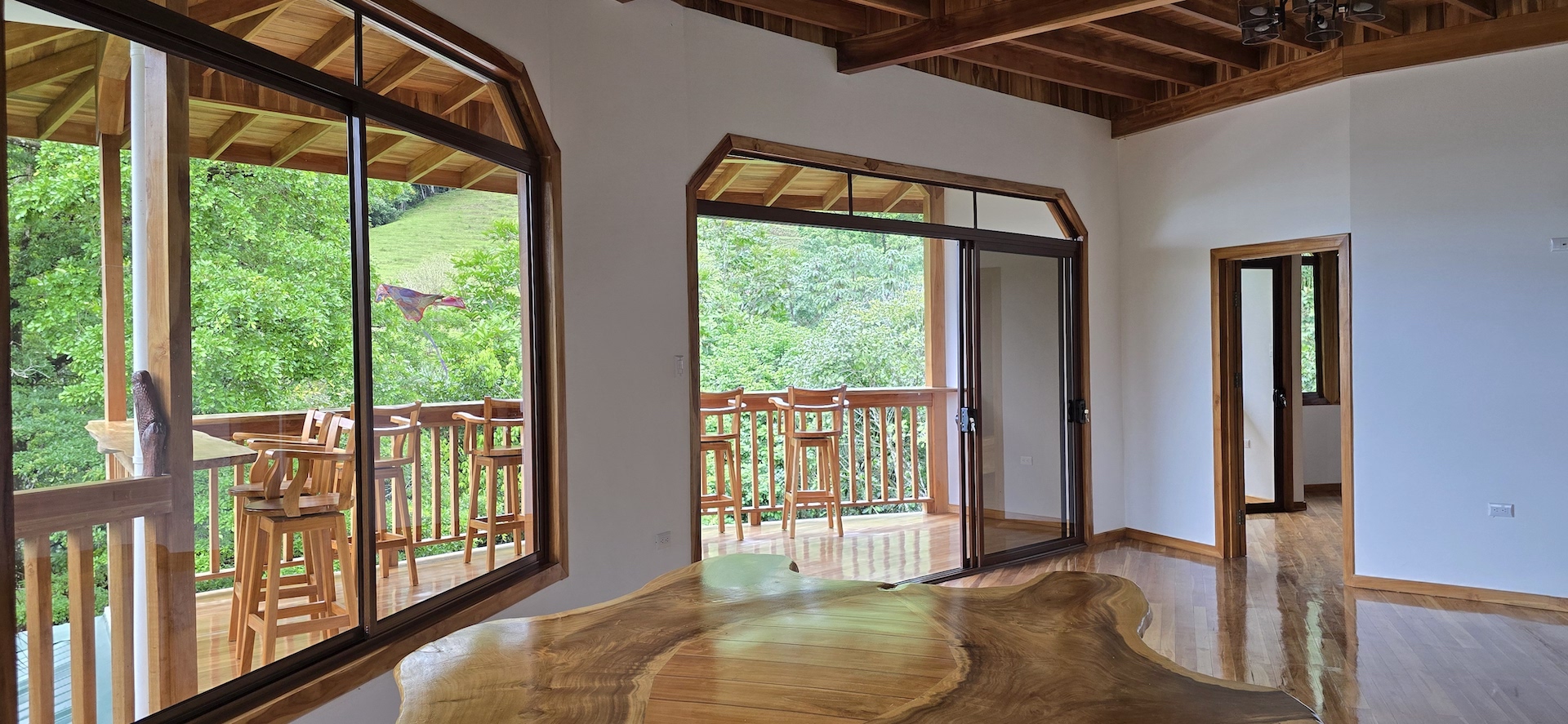 Completed in June 2024, this multi-level home features: - Construction with exotic hardwoods and premium materials - Spacious main living area with 2 bedrooms on the entry floor - A second full kitchen and bathroom on the top level with panoramic views—ideal for guests, rentals, or a creative studio - Large wrap-around terraces to enjoy the jungle sounds and misty mountain vistas - Gated access, with two entrances and a covered, secure garage - A natural creek with a small pool plus a vacant lot perfect for building a swimming pool or guesthouse