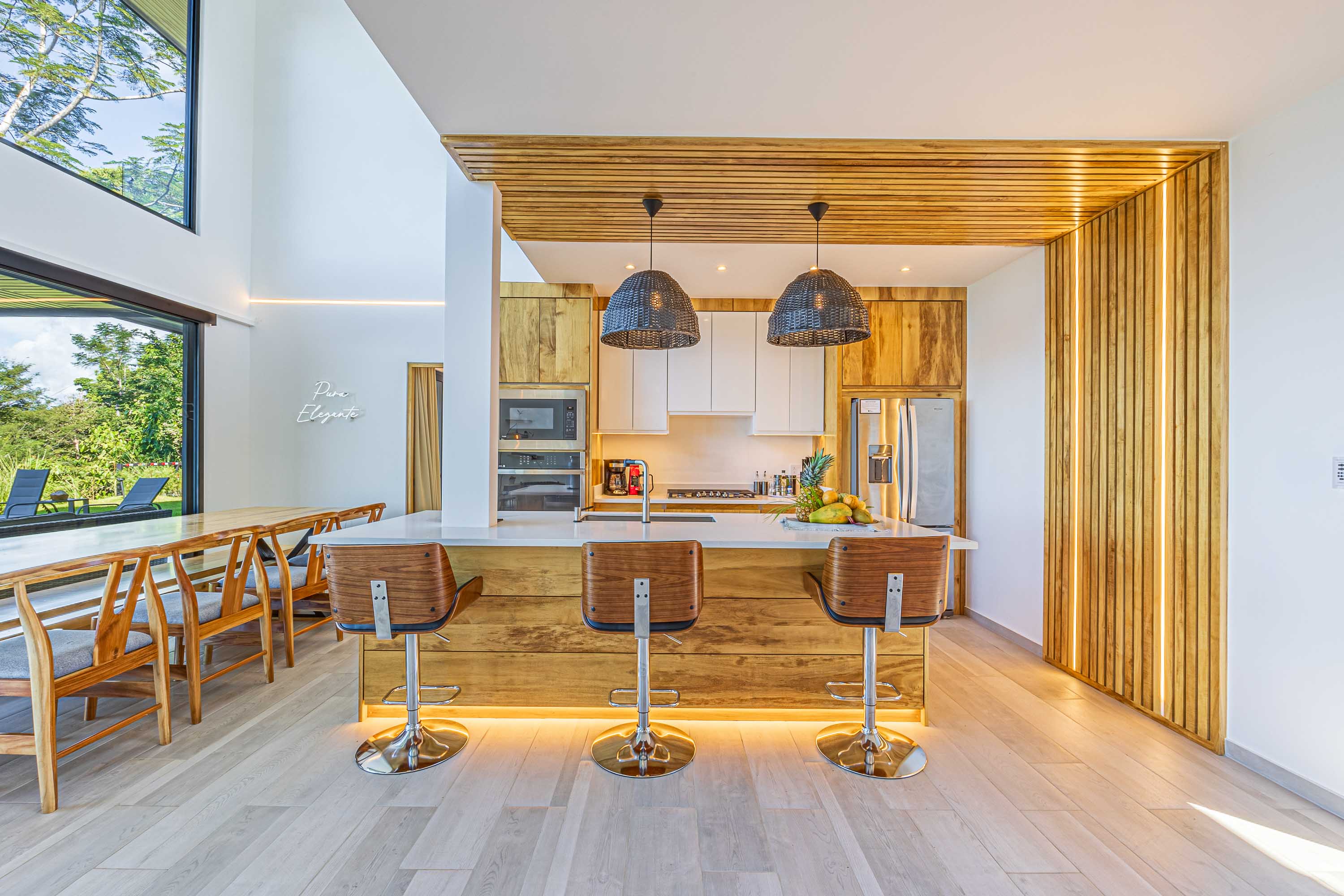 This custom-designed four-bedroom, four-and-a-half-bathroom villa represents a refined expression of tropical luxury within Papagayo Real Estate Set in Costa Rica’s Southern Pacific region, the home blends Nordic simplicity, Balinese calm, and natural Costa Rican elements to create an atmosphere that feels both sophisticated and deeply connected to its surroundings. Floor-to-ceiling windows, open living spaces, and thoughtful orientation frame sweeping views of the Pacific Ocean and lush jungle landscape.