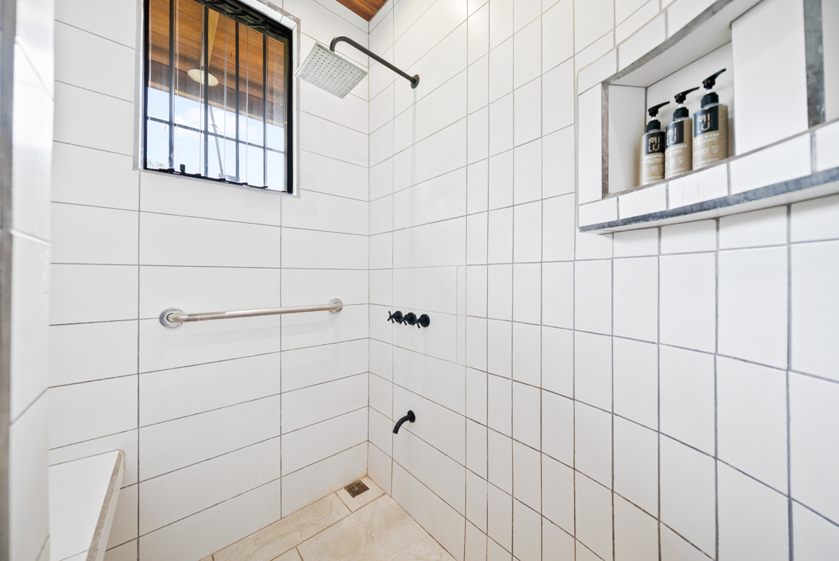 A separate rear master suite offering maximum privacy and a striking indoor/outdoor shower open to the sky, allowing you to bathe immersed in nature