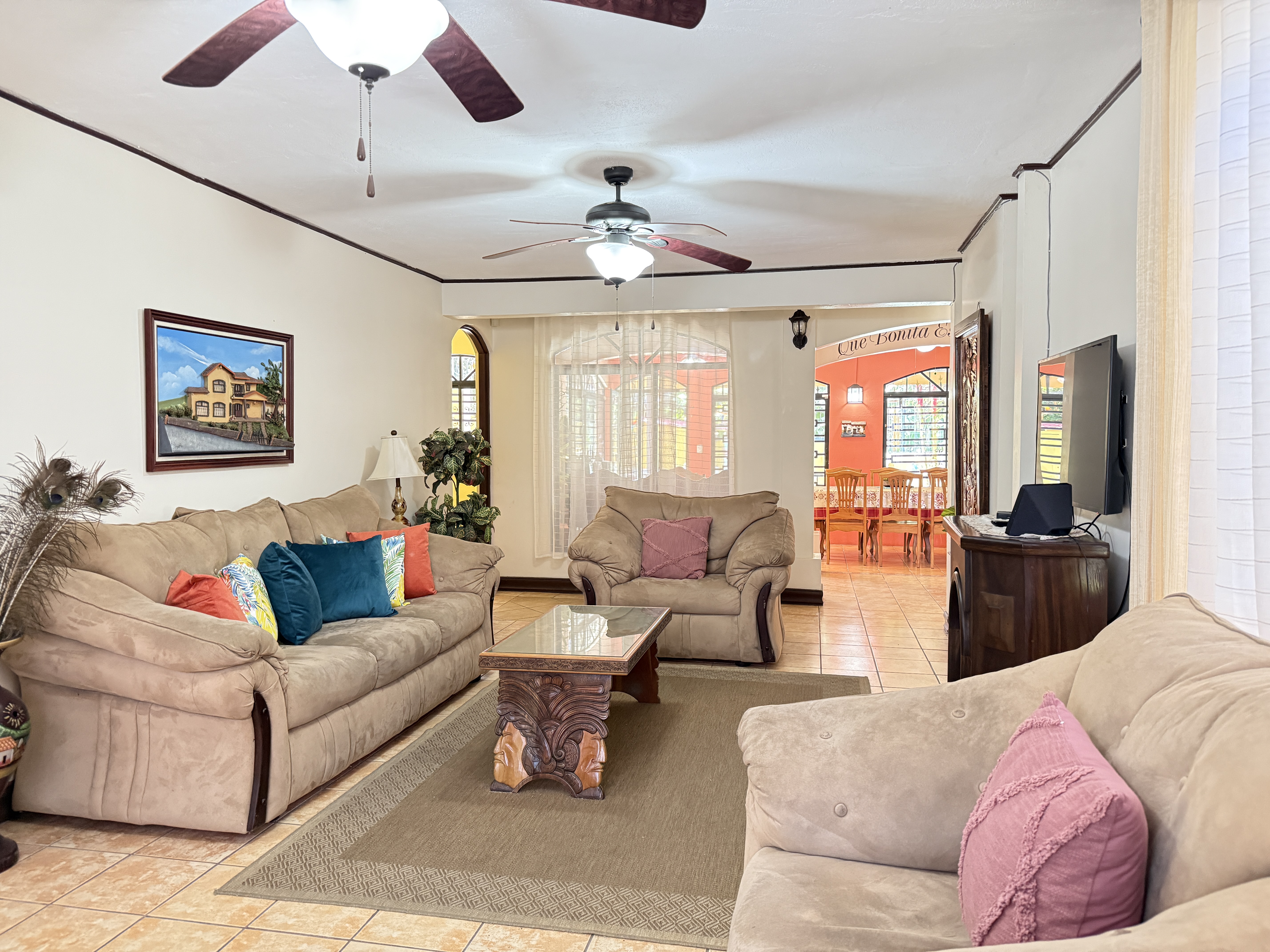 Property Features • 4 spacious bedrooms • 2 bedrooms with private balconies for enjoying fresh mountain breezes and serene views • Master suite with en-suite bathroom for added comfort and privacy • 2 full bathrooms + 1 guest half-bath • Open-concept living area featuring a modern kitchen, bright living room, and welcoming dining space • Beautiful covered terrace overlooking the pool – perfect for entertaining or unwinding • Private swimming pool for relaxation and enjoyment year-round • Covered garage for 1 vehicle + space for 4 additional cars outdoors • Security camera system for enhanced peace of mind • Freshly painted exterior and roof – meticulously cared for • Sold fully furnished with high-end furniture – just bring your suitcase! • Located in a quiet, peaceful neighborhood only 7 minutes from downtown Grecia