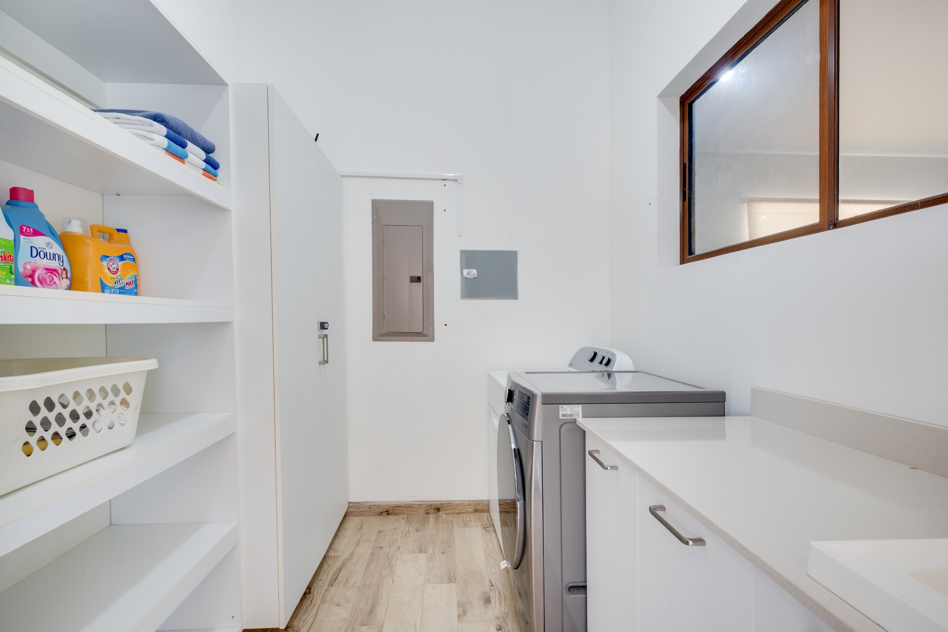 A chefβs dream! Featuring built-in appliances, a waterfall porcelain island, matching backsplash, and a pass-through window to the patio β ideal for alfresco meals or morning coffee by the pool.