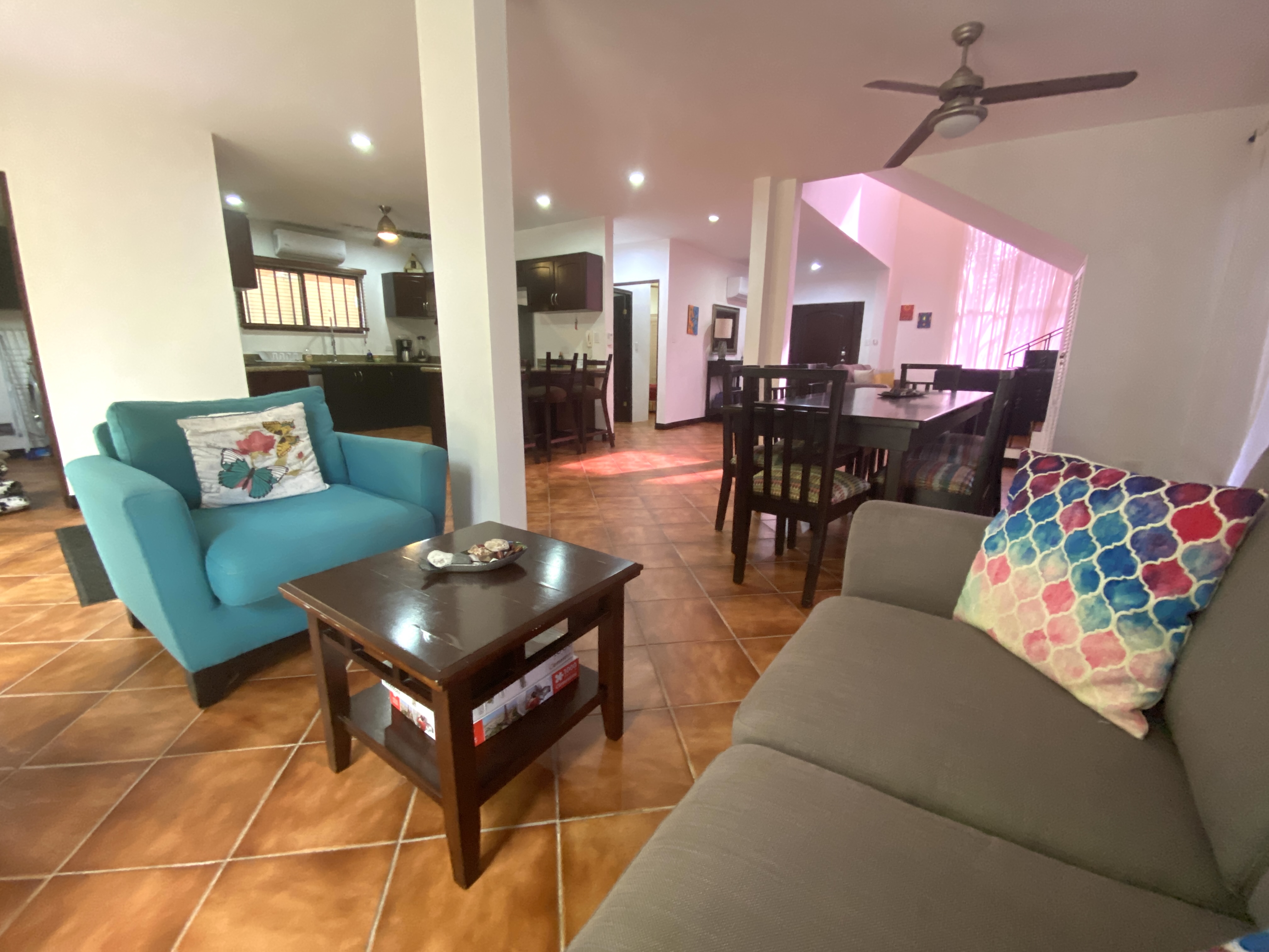 Rare opportunity to purchase a single family home in a secure, gated, beachfront community. This large 4 bedroom, 3 bath is the perfect vacation home of full time residence in Costa Rica. This well kept and maintained home is turn key ready, sold fully furnished. With a large terrace of the bedrooms and spacious terrace off the dining you will find plenty of space to enjoy outdoor living. Just steps to the community pool and steps to the beach. Located on the North end of Jaco Beach in La Flor Beach Residences, a gated beachfront community of just 29 fee simple, fully titled, detached homes, one of the only such communities in all of Costa Rica.