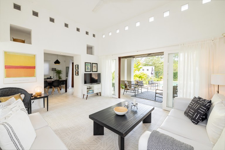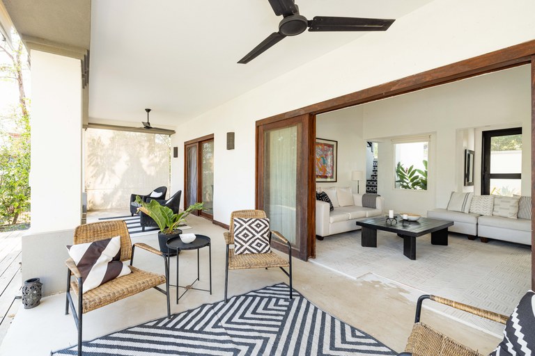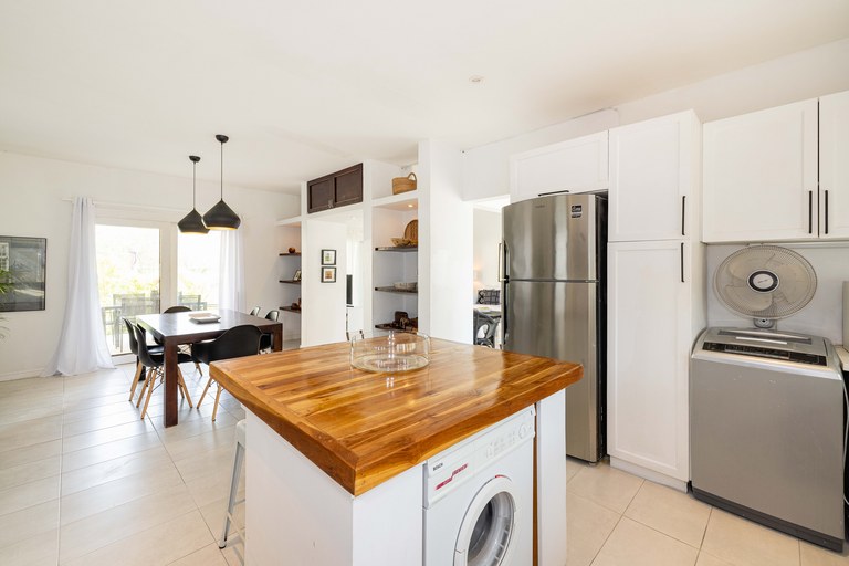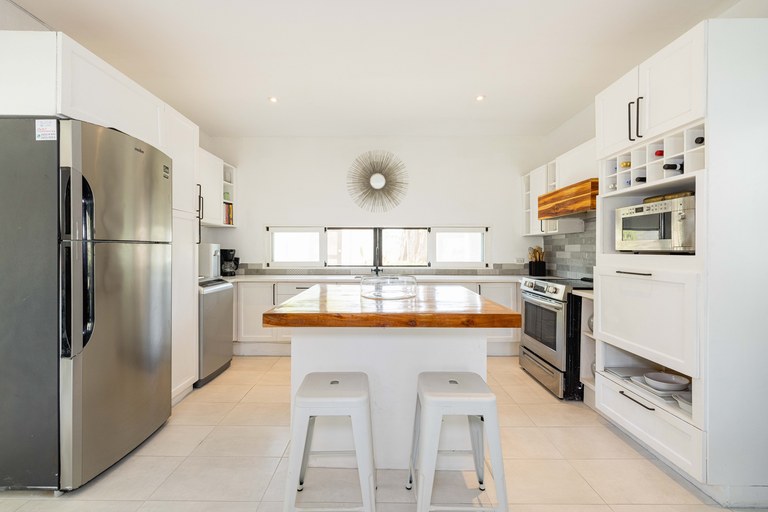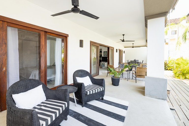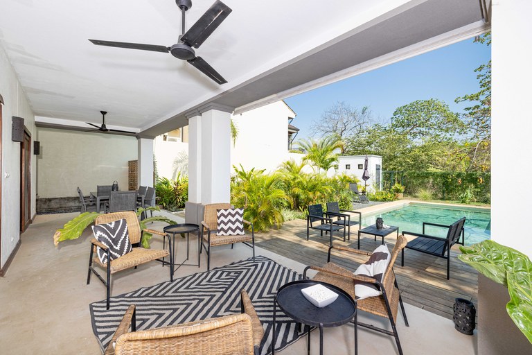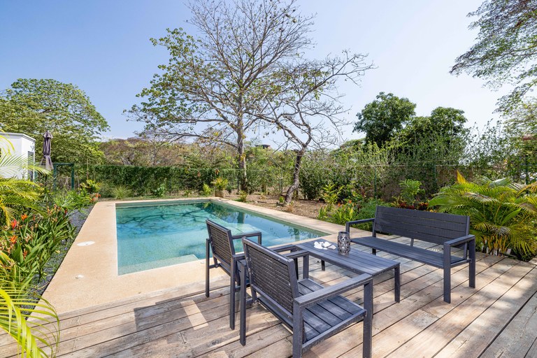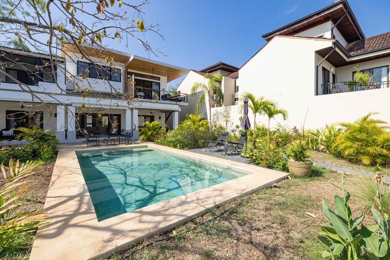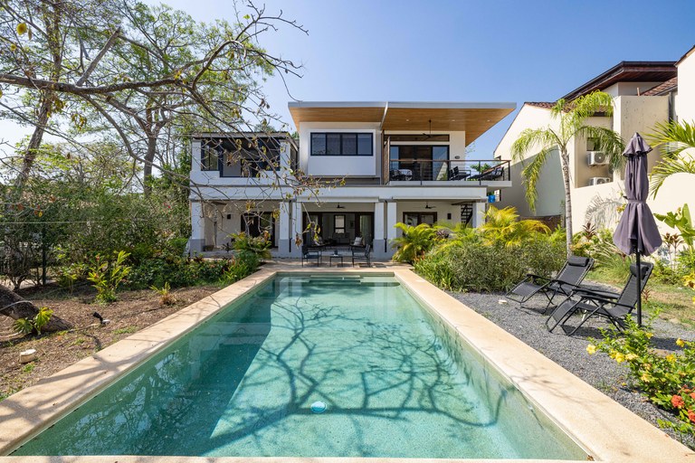 Exclusive neighborhood of Playa Langosta, in the trendy beach town of Tamarindo, lies this beautiful property. This gorgeous four-bedroom house is just 3 blocks / 3 min walk to the beach. uilt in 2009, the property went through major renovation in 2021 including the addition of a 2 bedroom apartment. The main house consists of two bedrooms and two bathrooms, while the newly built apartment boasts two additional bedrooms and one bathroom.