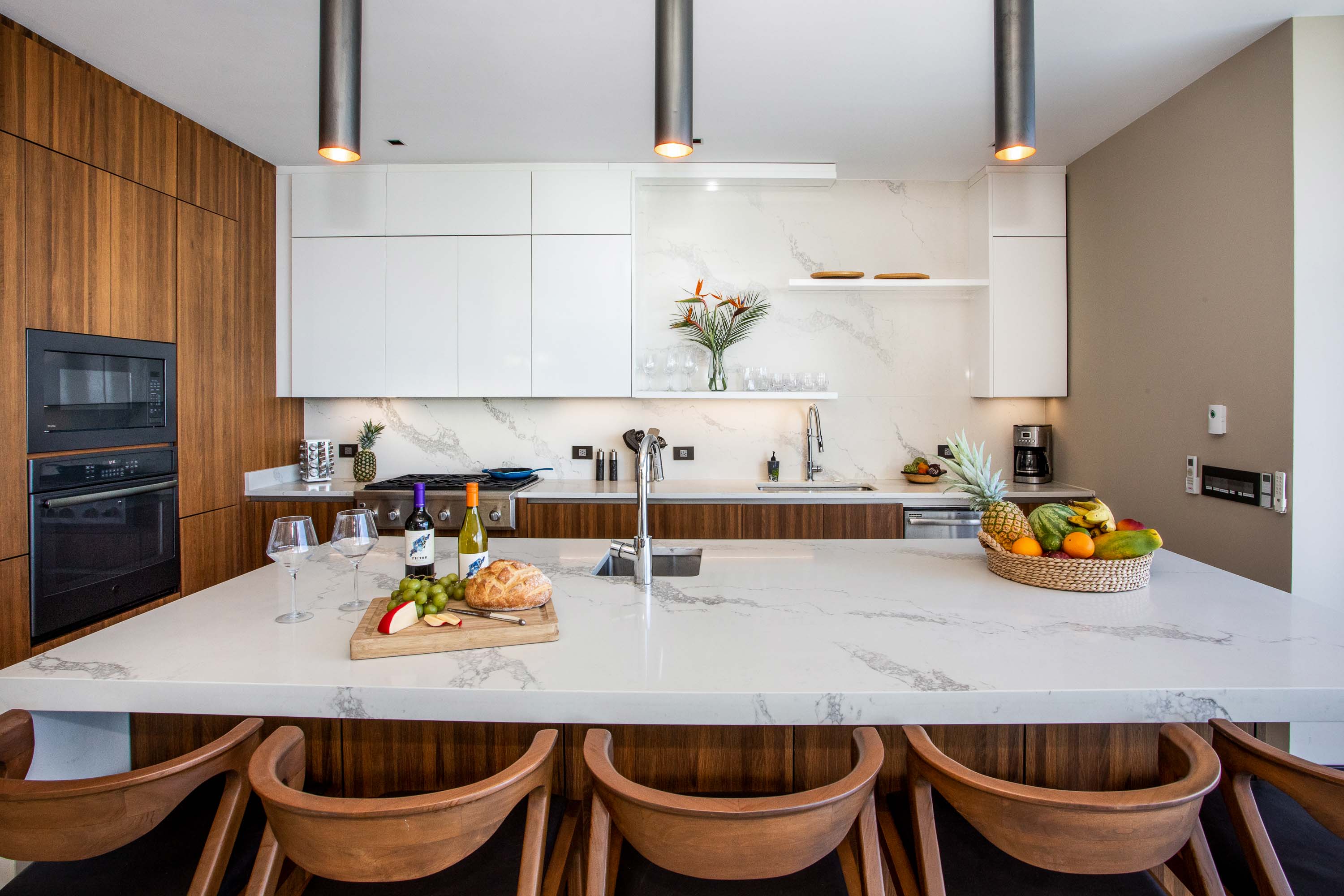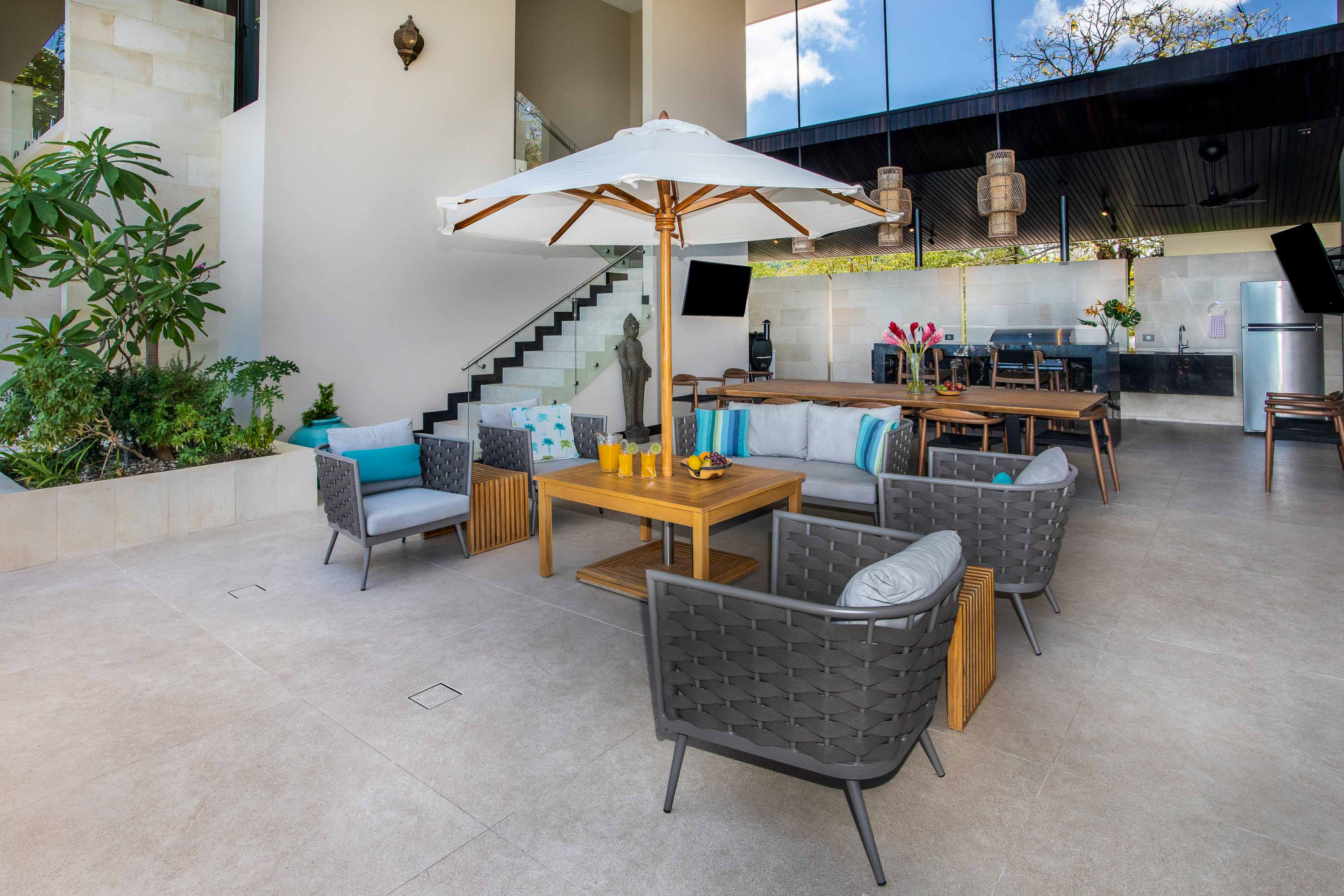 Perched on a ridge in the exclusive gated community of La Reserva in Quepos, this exceptional 4-bedroom, 4 full bath and 2 1/2 bath luxury residence offers an unparalleled combination of privacy, natural beauty, and high-end living. Ideally located just five minutes from the world class Marina Pez Vela and only ten minutes from the golden beaches and lush rainforest pathways of Manuel Antonio National Park, this home is perfectly positioned to enjoy the very best of Costa Rica’s Central Pacific coast. Set on a hillside above the jungle canopy, the property commands spectacular AAA ocean views that stretch across the horizon. From vibrant multi-colored sunsets over the Pacific to the quiet rustle of treetops below, every day brings a new visual masterpiece. The elevated setting provides total tranquility and privacy, yet the home remains close to fine dining, sportfishing, beaches, and entertainment. The surrounding environment is alive with Costa Rica’s iconic wildlife, including scarlet macaws soaring overhead, monkeys playing in the treetops, and toucans, sloths, and exotic birds making frequent appearances which allows residents to experience nature’s magic from the comfort of home. Inside, the home is designed with spacious luxury in mind. All four oversized bedrooms are well-appointed and offer ensuite bathrooms for ultimate comfort and privacy. The principal suite, located on the second floor, features commanding ocean views that transform the waking hours into an unforgettable experience. One of the guest bedrooms offers private exterior access, making it ideal for visiting friends, family, or extended stays. The expansive open-concept kitchen and living area creates a seamless atmosphere for gathering and entertaining. High-end appliances, premium finishes, and sumptuous seating define a space that is as functional as it is stylish, with large doors opening to the outdoor living spaces. Outside, the infinity-edge pool appears to blend into the Pacific, creating a dramatic setting for relaxation. A generous covered terrace features a large dining table and premium Napoleon grill, absolutely perfect for alfresco meals while listening to the sounds of the jungle or enjoying a gorgeous sunset. A half bath and outdoor shower add convenience to the pool area. Luxurious, private, and immersed in nature, this remarkable La Reserva residence offers a rare opportunity to live among world-class scenery with unparalleled ocean views in one of Costa Rica’s most desirable coastal communities.