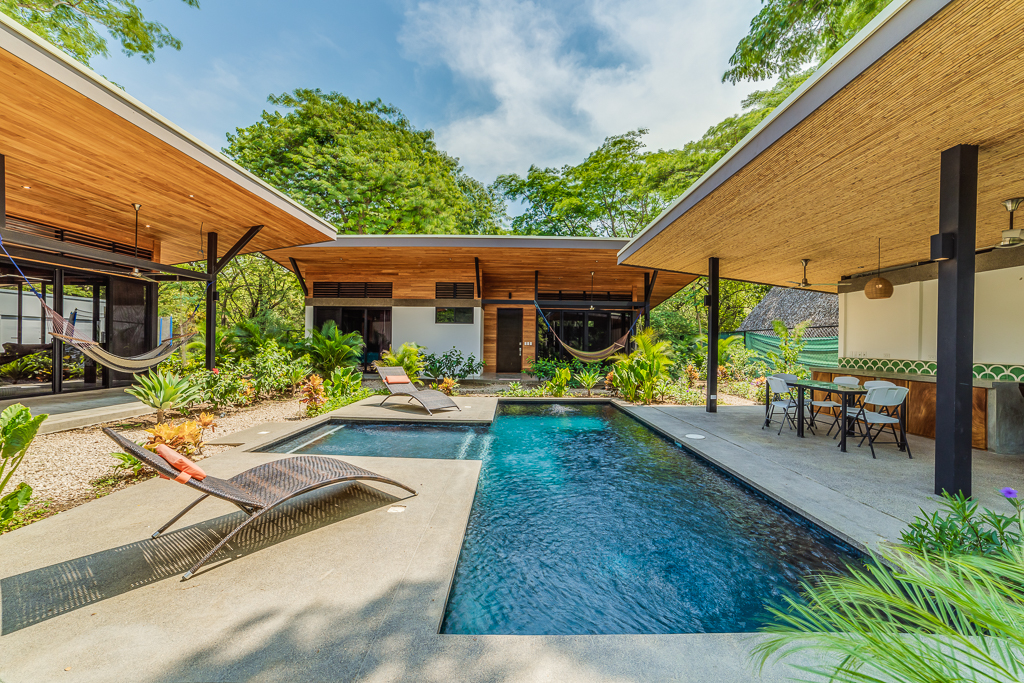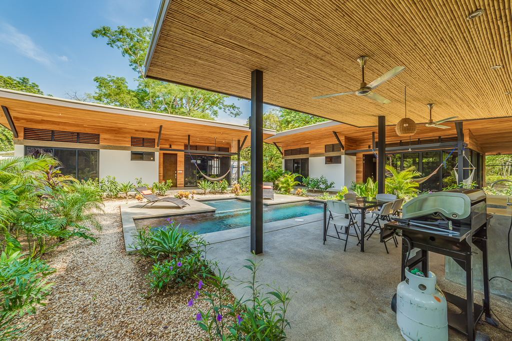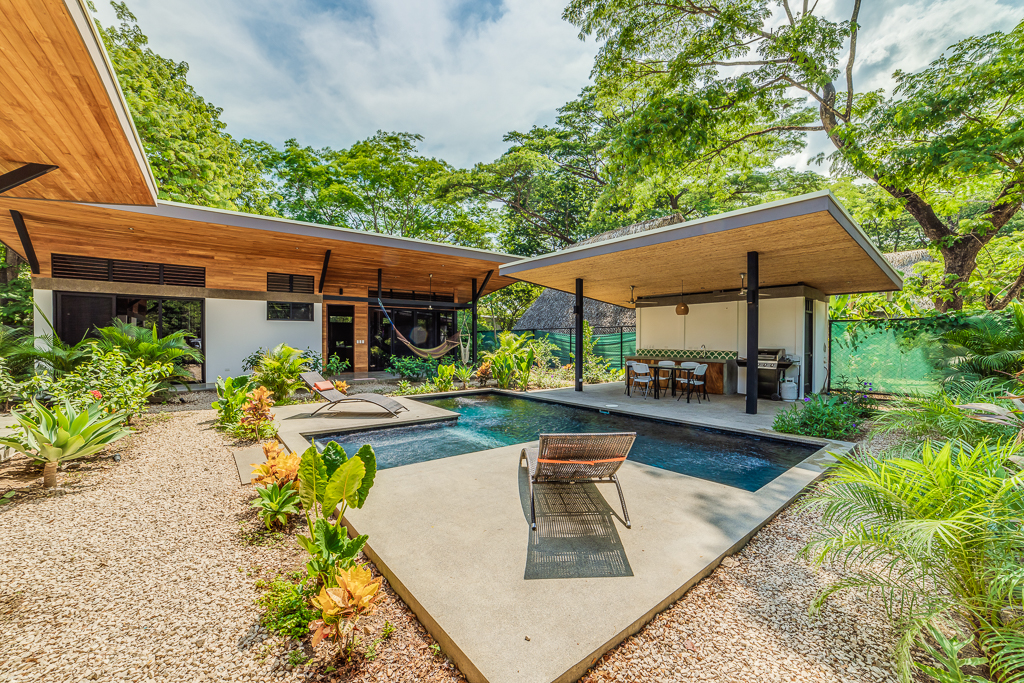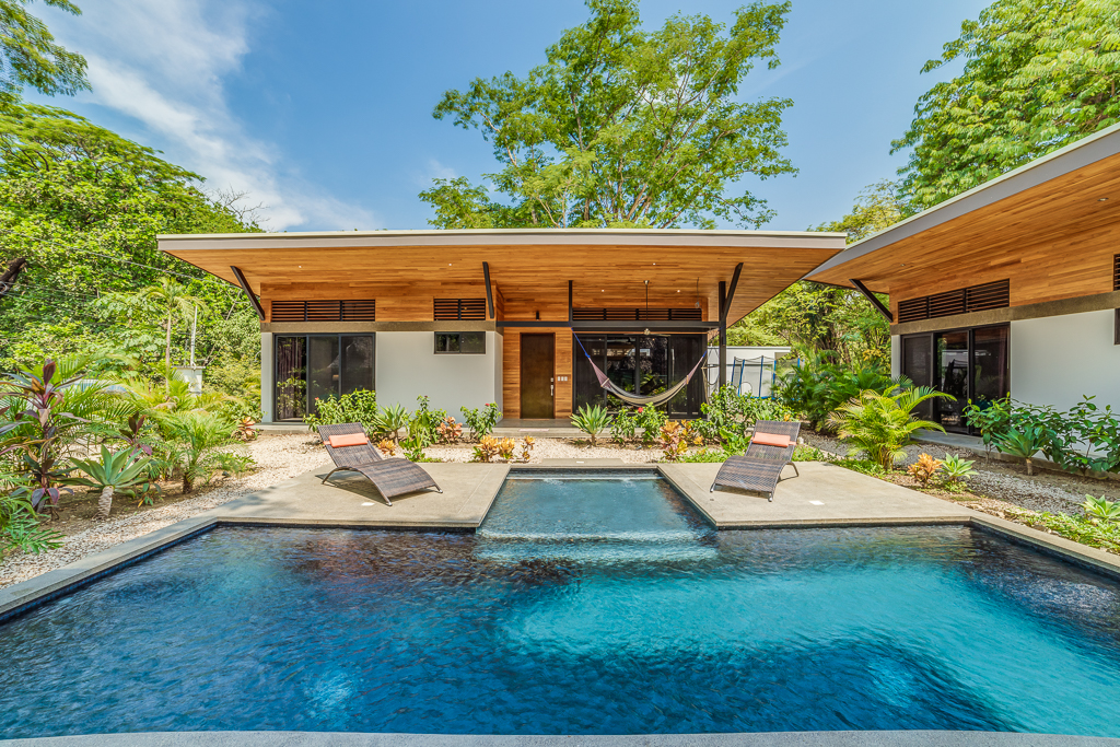 Two new modern homes in the beautiful Nosara Springs designed by the prestigious local architect, Victor Rojas. Each house has 2 bedrooms and 2 bathrooms, with an open concept floor plan with big sliding doors and a spacious kitchen with a big island bar.