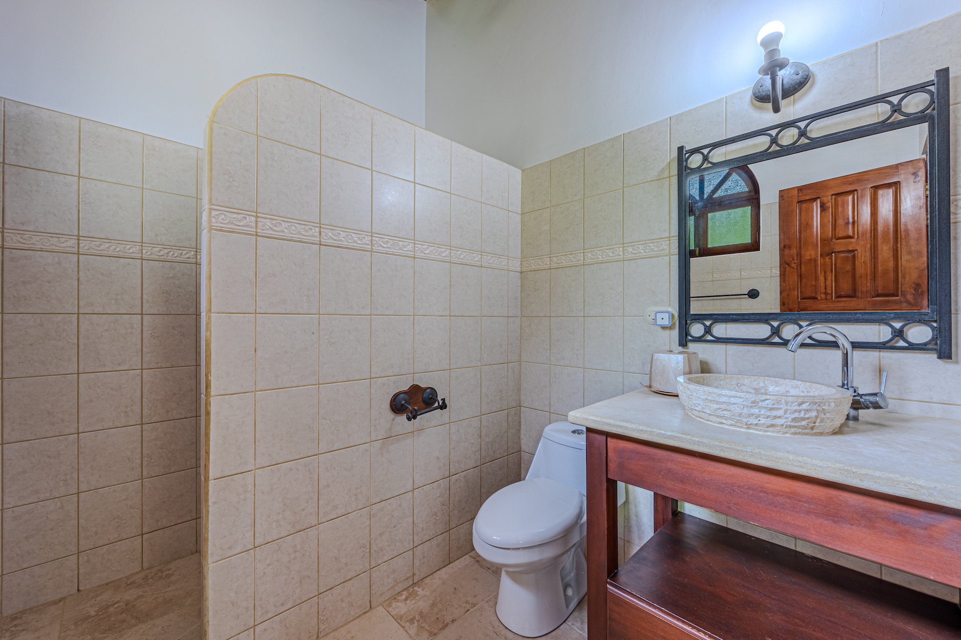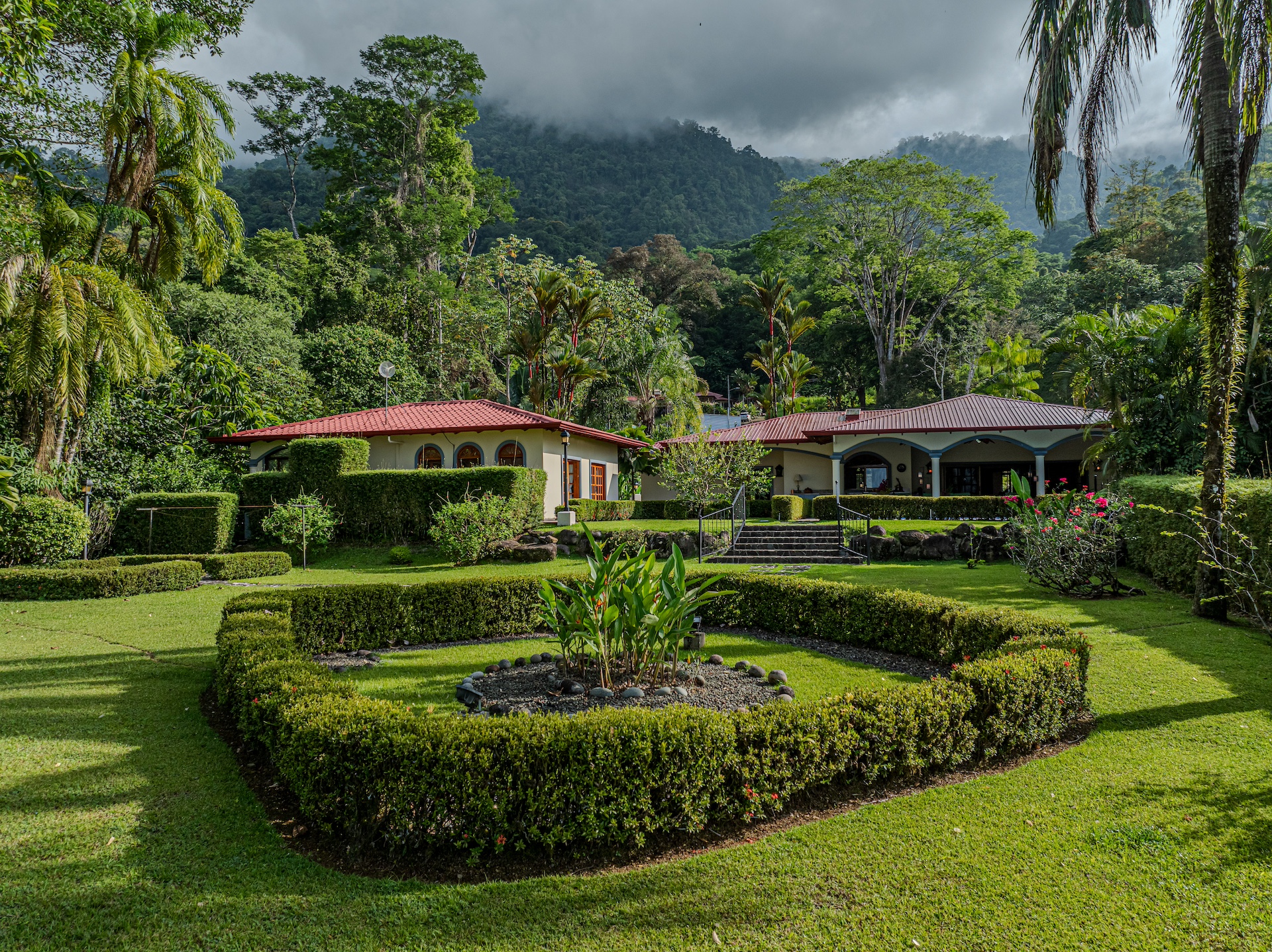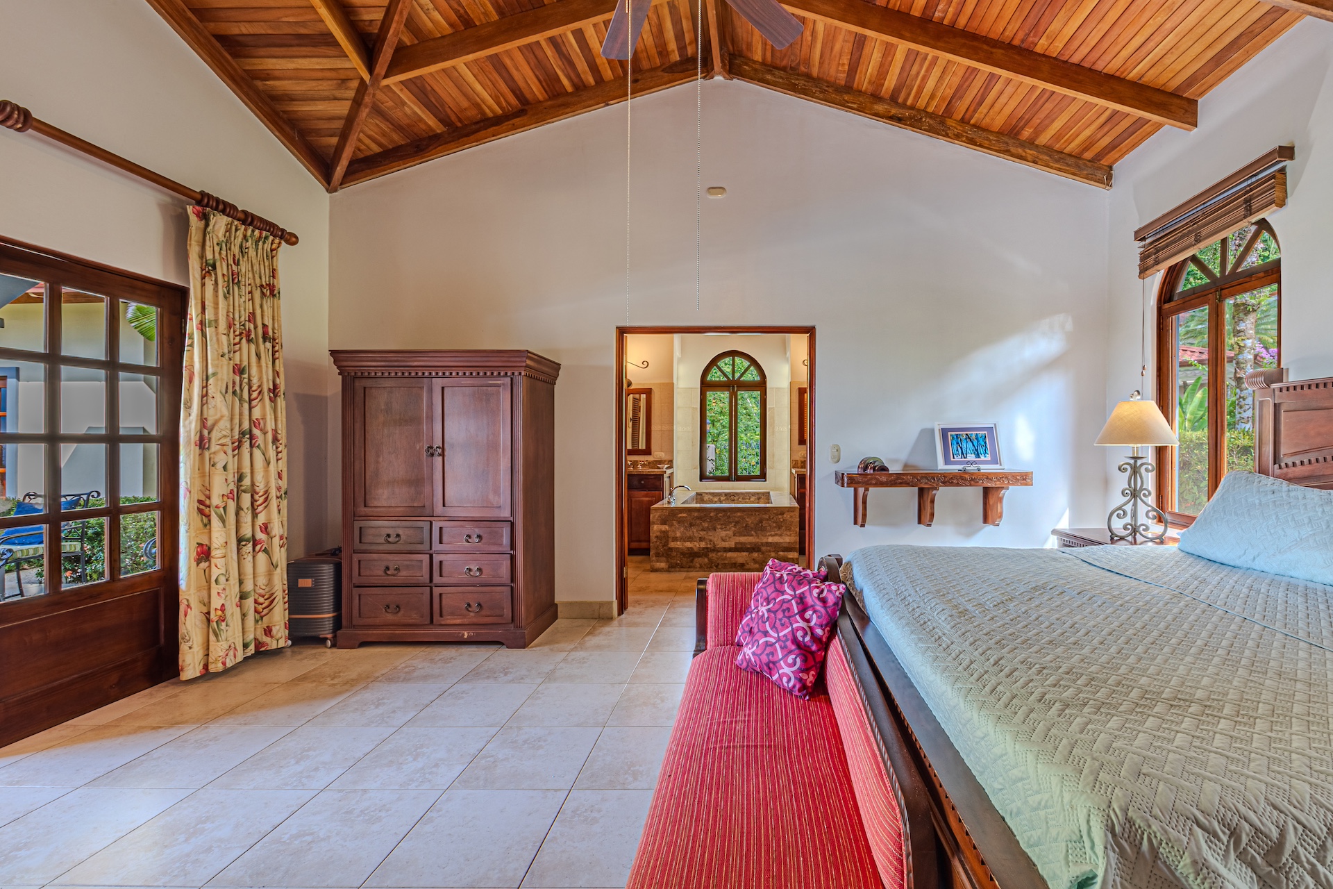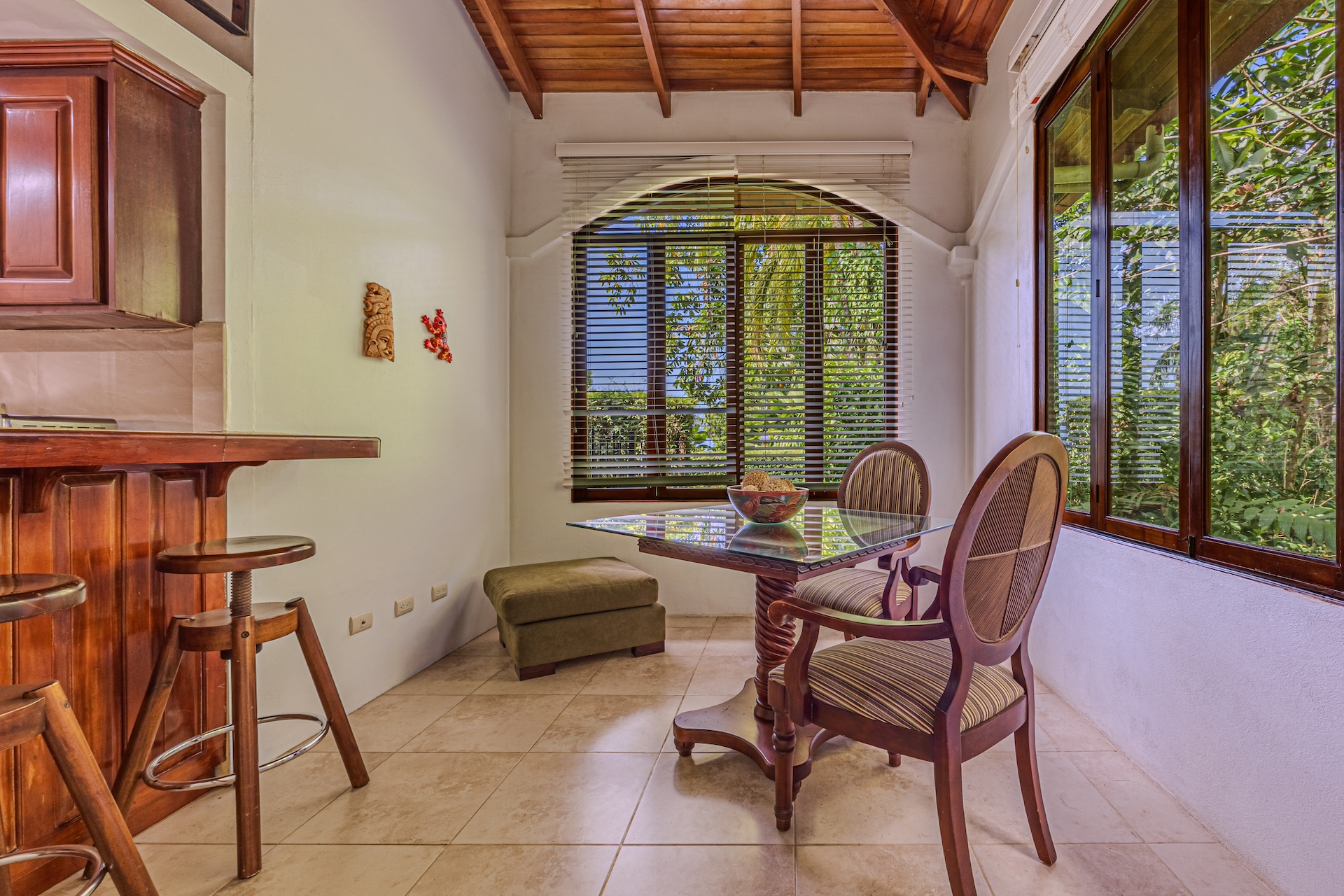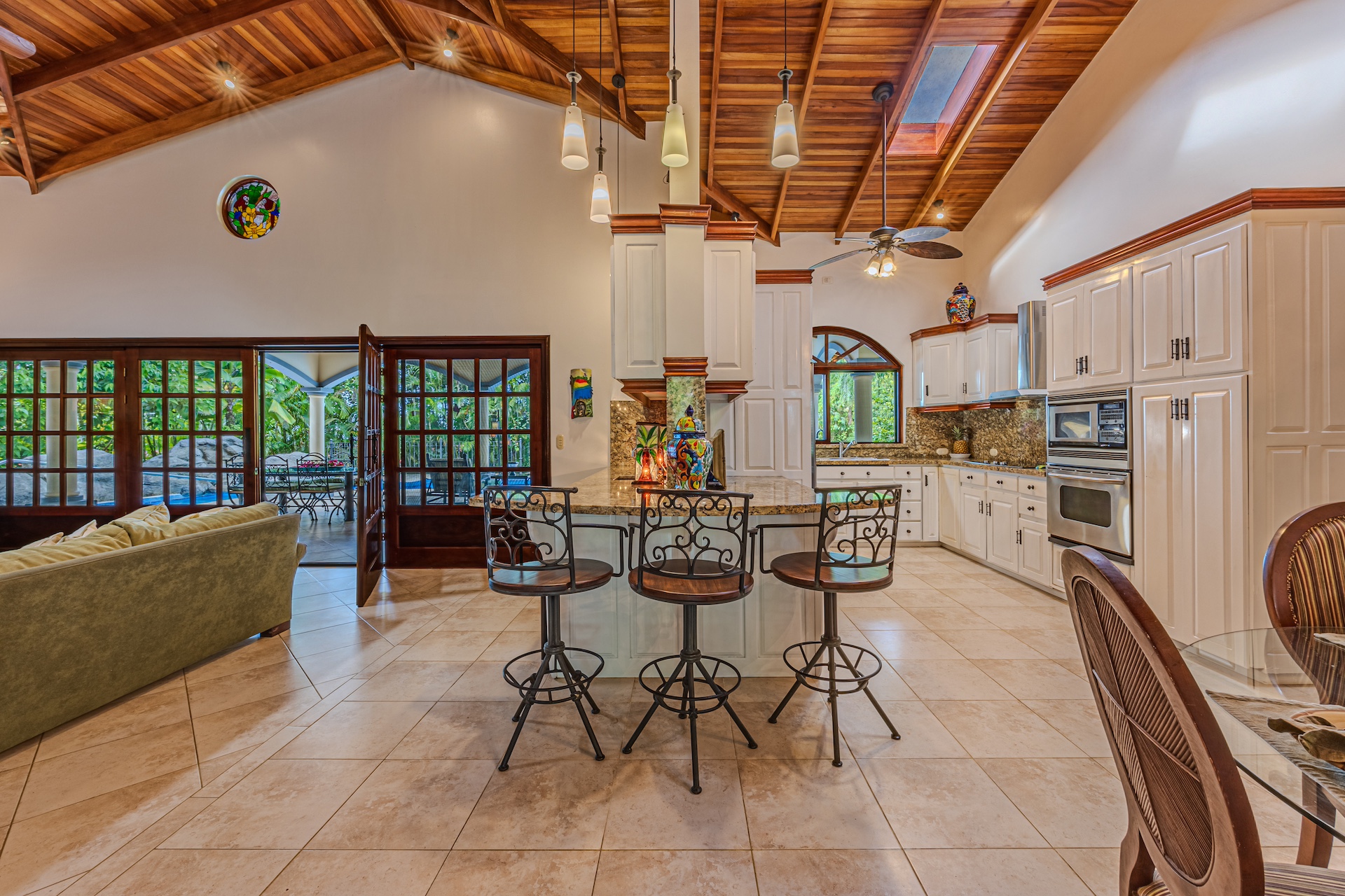 Your guests will be welcomed with the very large covered seating and dining area outside. After all, Costa Rica is about enjoying nature and everything that surrounds you. The sounds of the river that line the property are a perfect backdrop for peaceful serenity. The half bath off the handicapped equipped lap pool is fantastic use of space as is the expansive outdoor kitchen. Everything is there for your enjoyment.