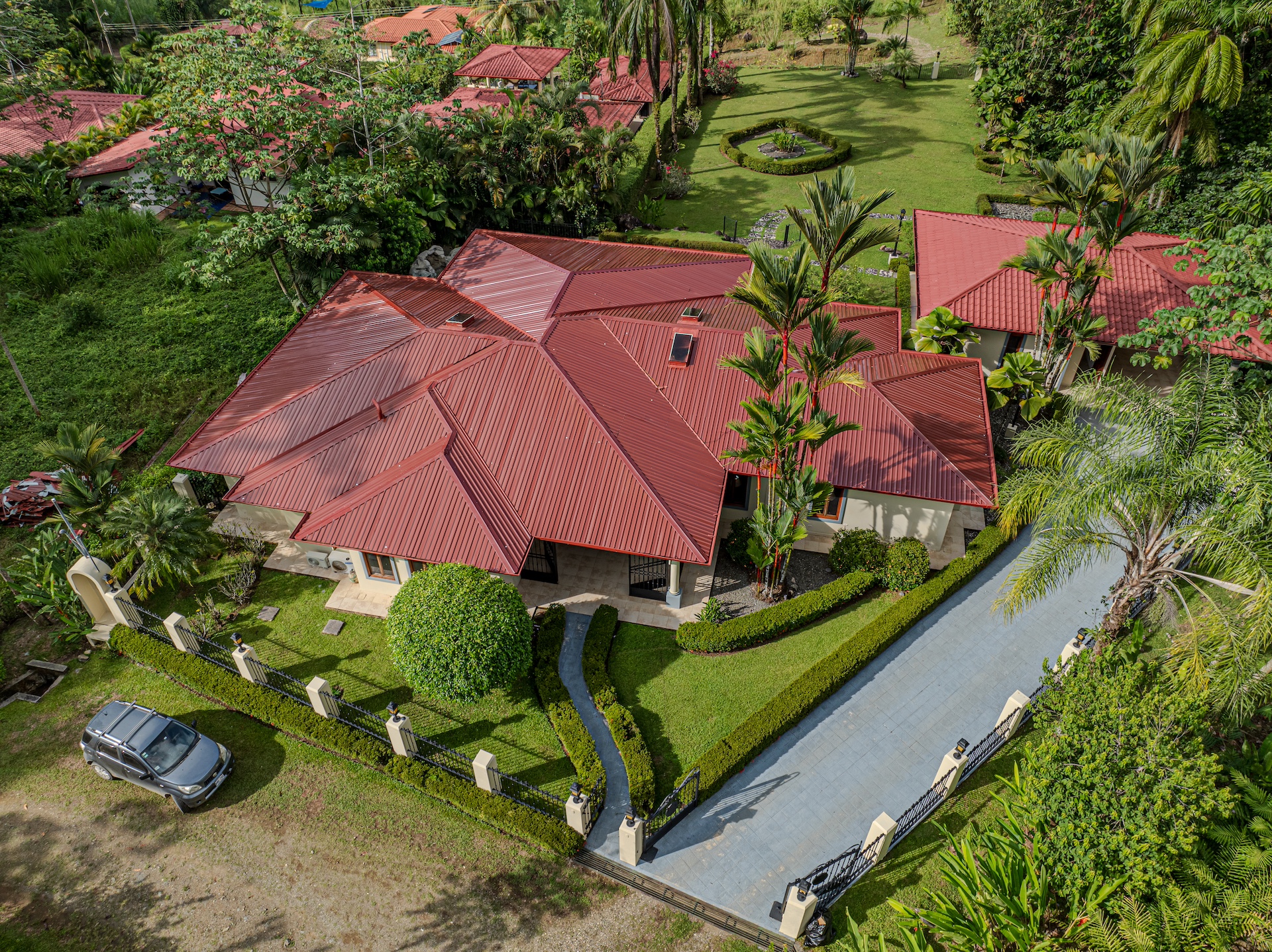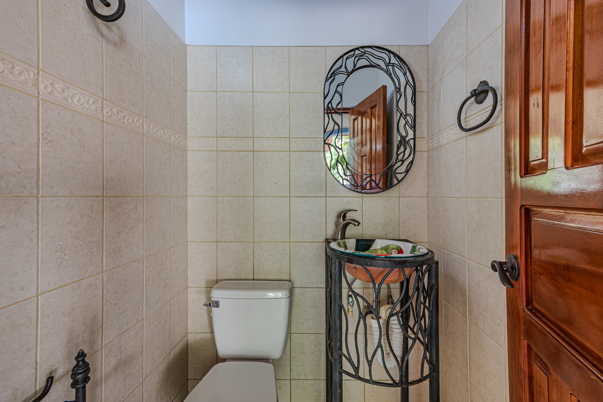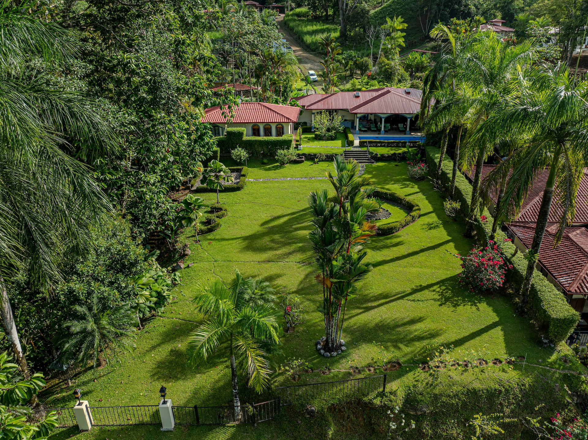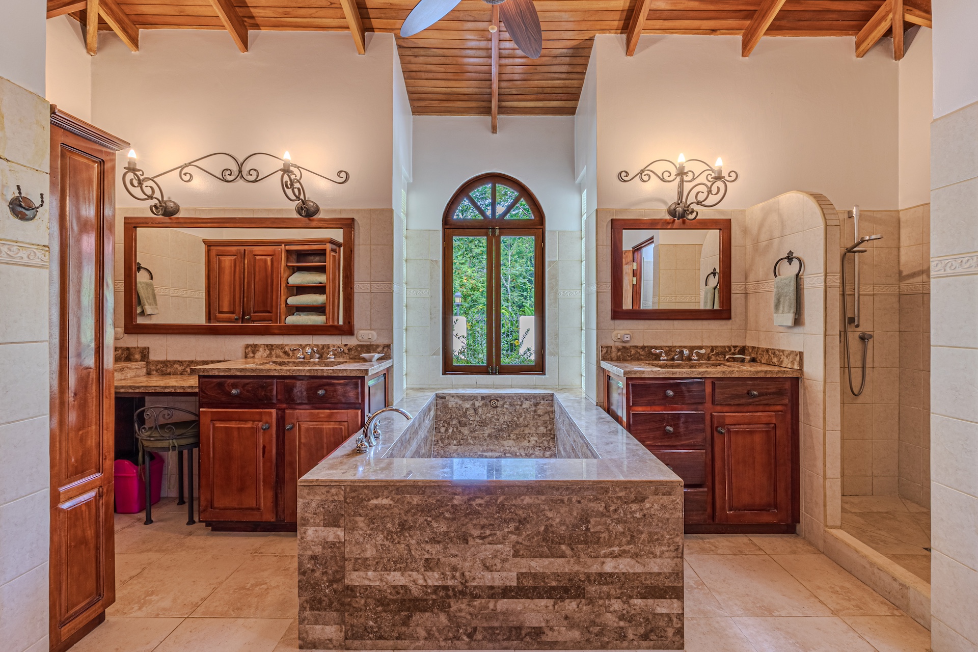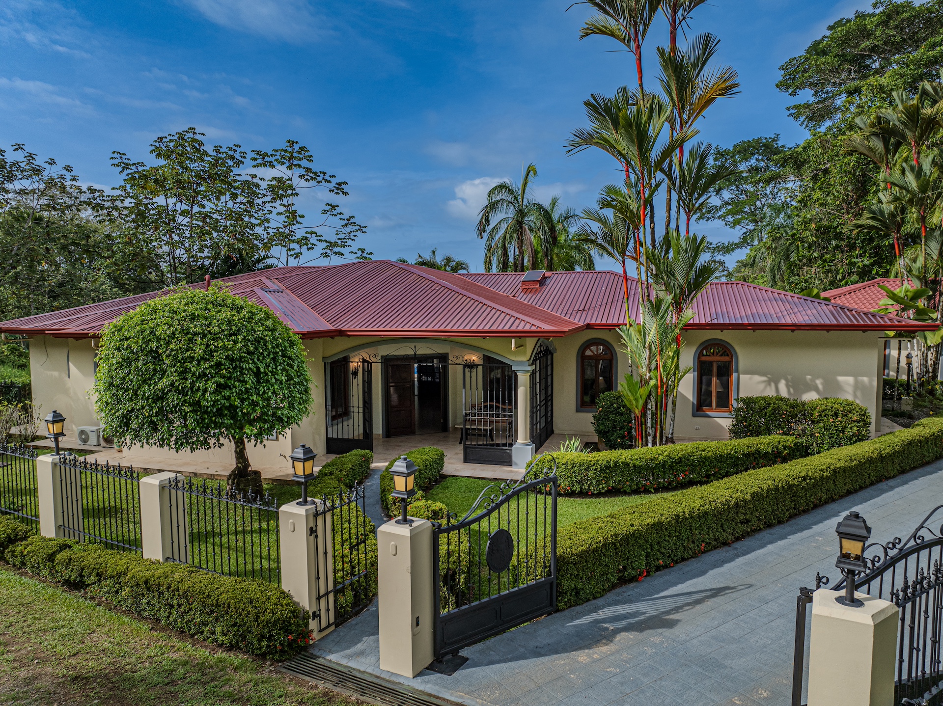 Your guests will be welcomed with the very large covered seating and dining area outside. After all, Costa Rica is about enjoying nature and everything that surrounds you. The sounds of the river that line the property are a perfect backdrop for peaceful serenity. The half bath off the handicapped equipped lap pool is fantastic use of space as is the expansive outdoor kitchen. Everything is there for your enjoyment.