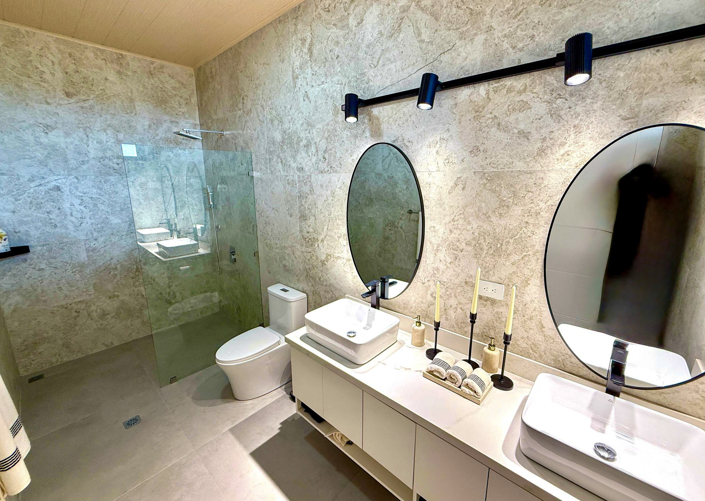 From the moment you enter, you’ll be captivated by the fresh, bright, and spacious modern style, accentuated by soaring high ceilings and generous proportions. This villa is delivered fully furnished with high-end furnishings and appliances, ensuring a seamless move-in experience. Discover exquisite finishes throughout, including high-end imported Spanish ceramic tiles and stunning waterfall countertops, showcasing an uncompromising commitment to quality and luxury.