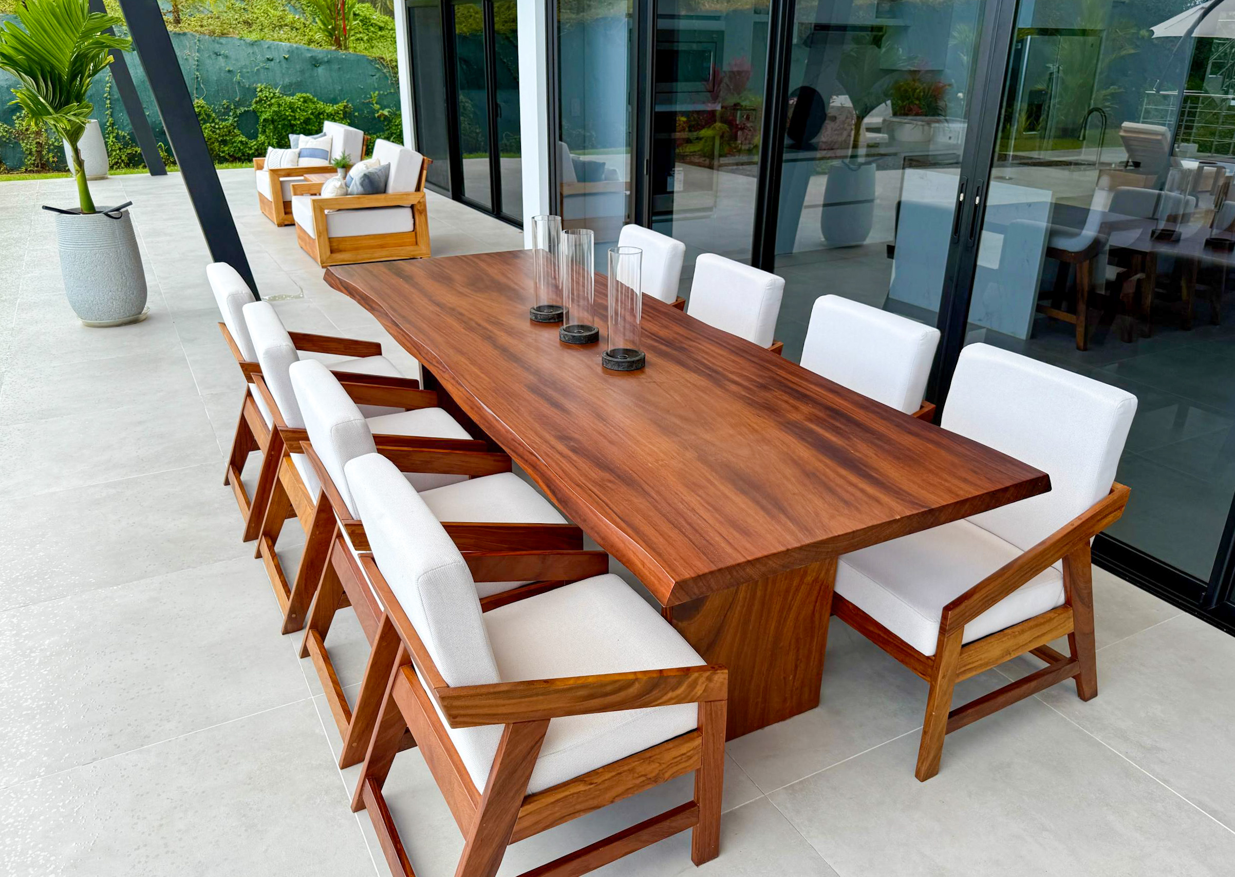 Beyond the interior, just off the kitchen you will find an outdoor dining area that invites stylish and intimate al fresco meals, imagine sharing a meal with your friends and family in this special space with the sounds of nature calling from the jungle. In front of the home, between you and the sparkling Pacific Ocean, the oversized terraza is calling you with a tiled infinity pool and a separate spa to enjoy that nightly beverage with your friends while you soak and ample room to spread out and catch some rays. Also, don’t miss the family firepit with plenty of room for the whole family to gather after a day of adventures.