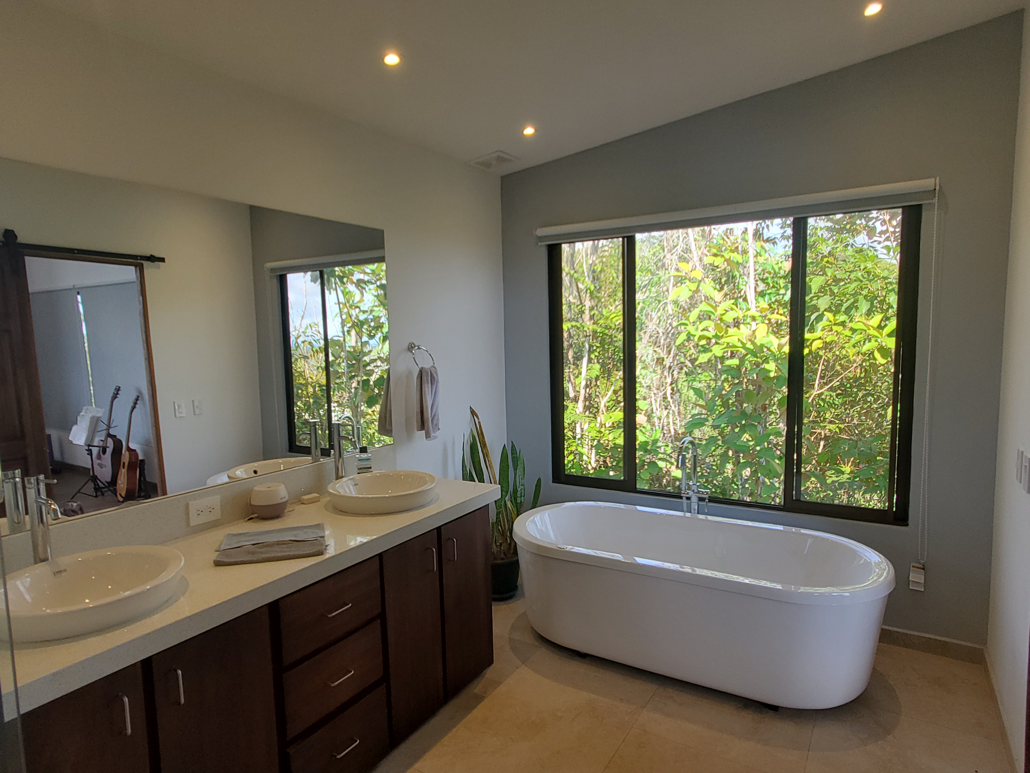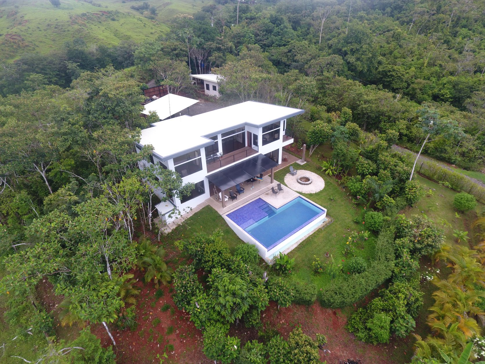 The front gate is automatic and you have a two car carport with additional space to park inside. The guest home is also modern, studio style with lots of light streaming in the windows. You can use it for guests, family or a caretaker if you choose, who can also take care of your gardens and home while you relax and enjoy the Pura Vida lifestyle.