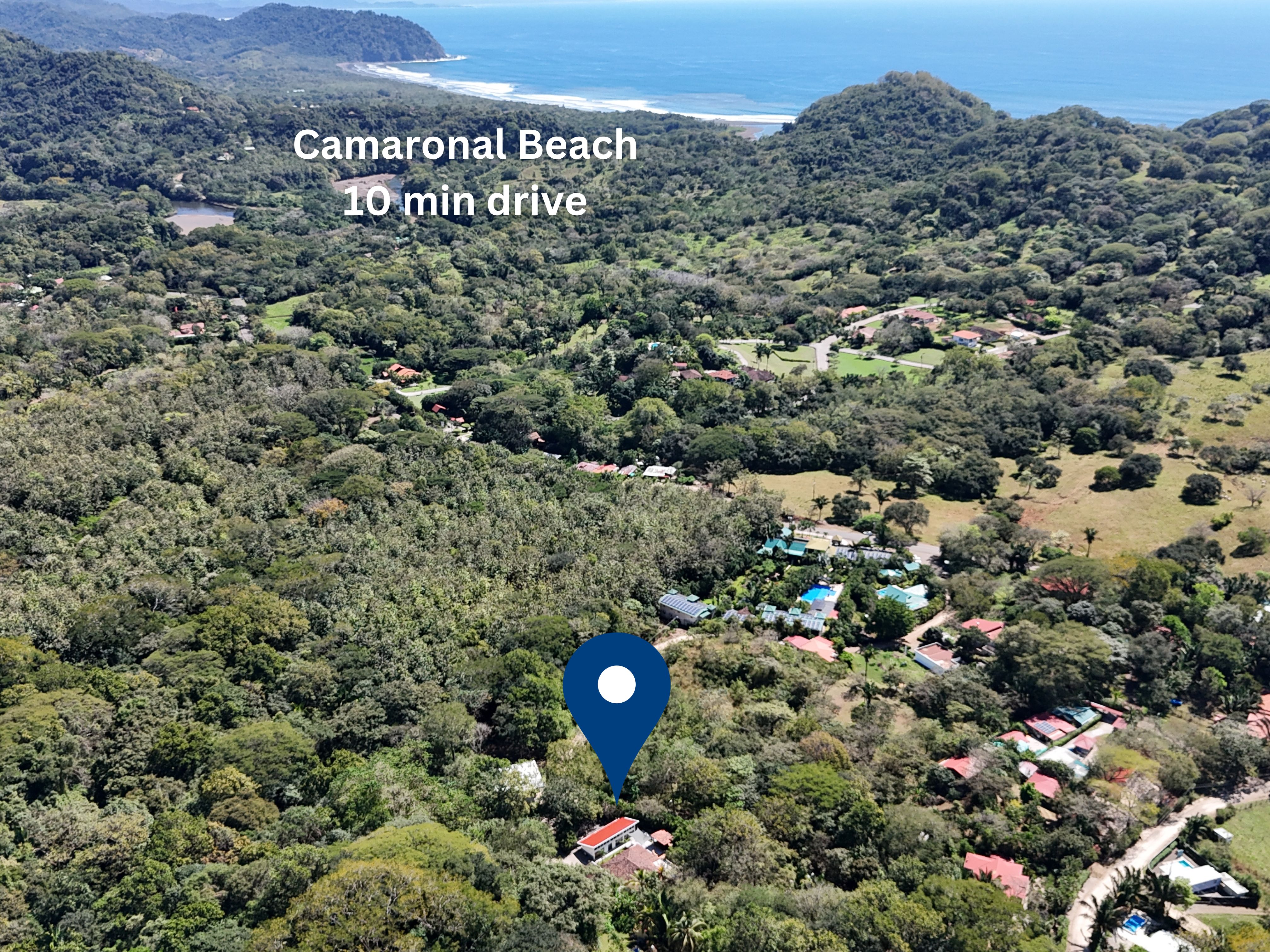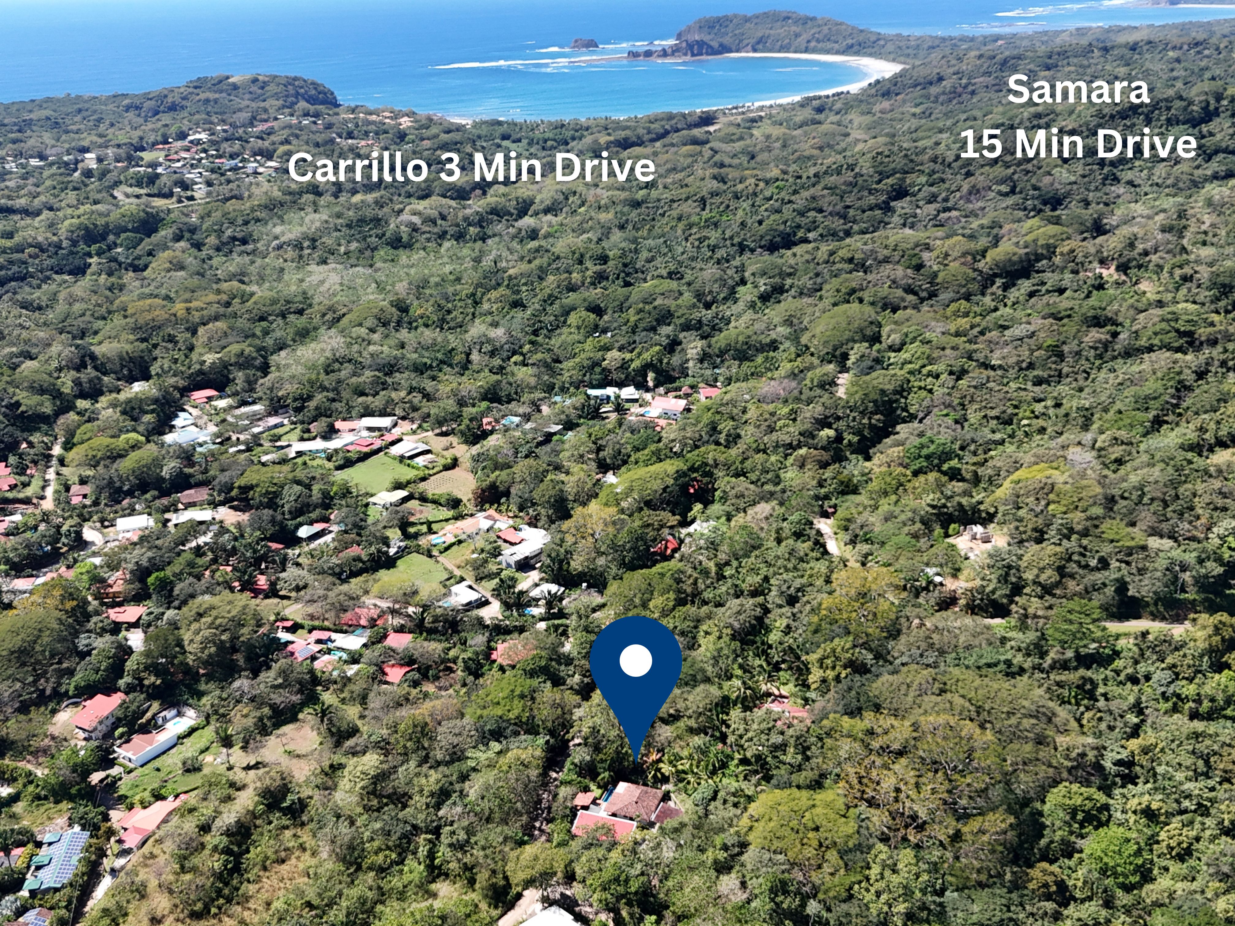 Discover the ultimate tropical retreat at Villas Arena y Mar, a unique property offering the best of both traditional charm and modern architecture. Set on a large 2,314m² lot near Bosques del Lago, this tranquil property is just 3 minutes from Carrillo Beach and a convenient 15-minute drive to Samara via a paved road.