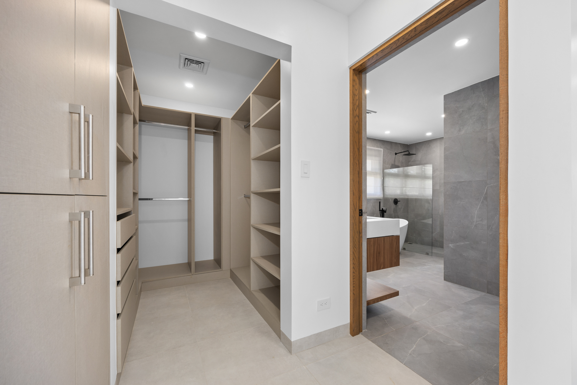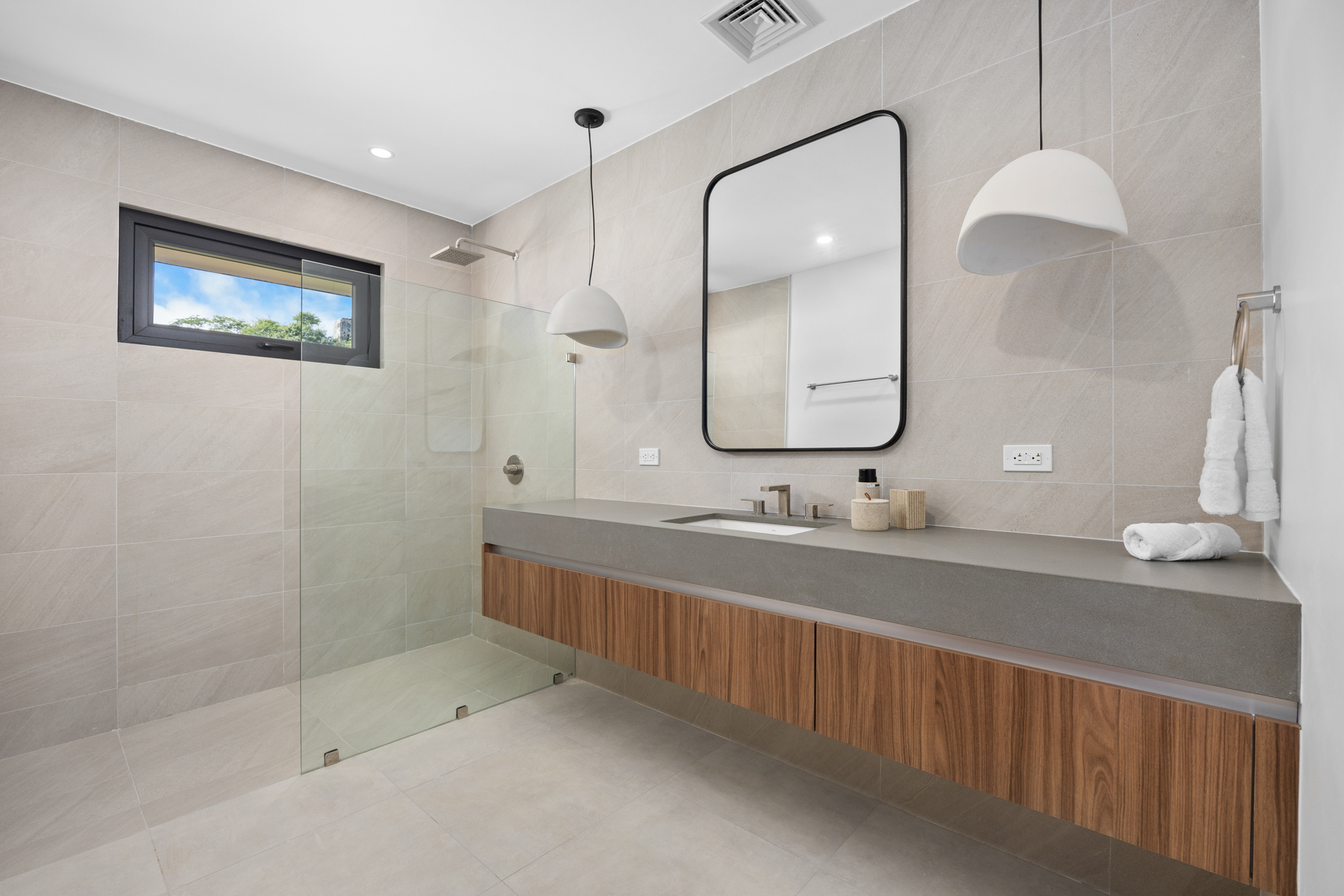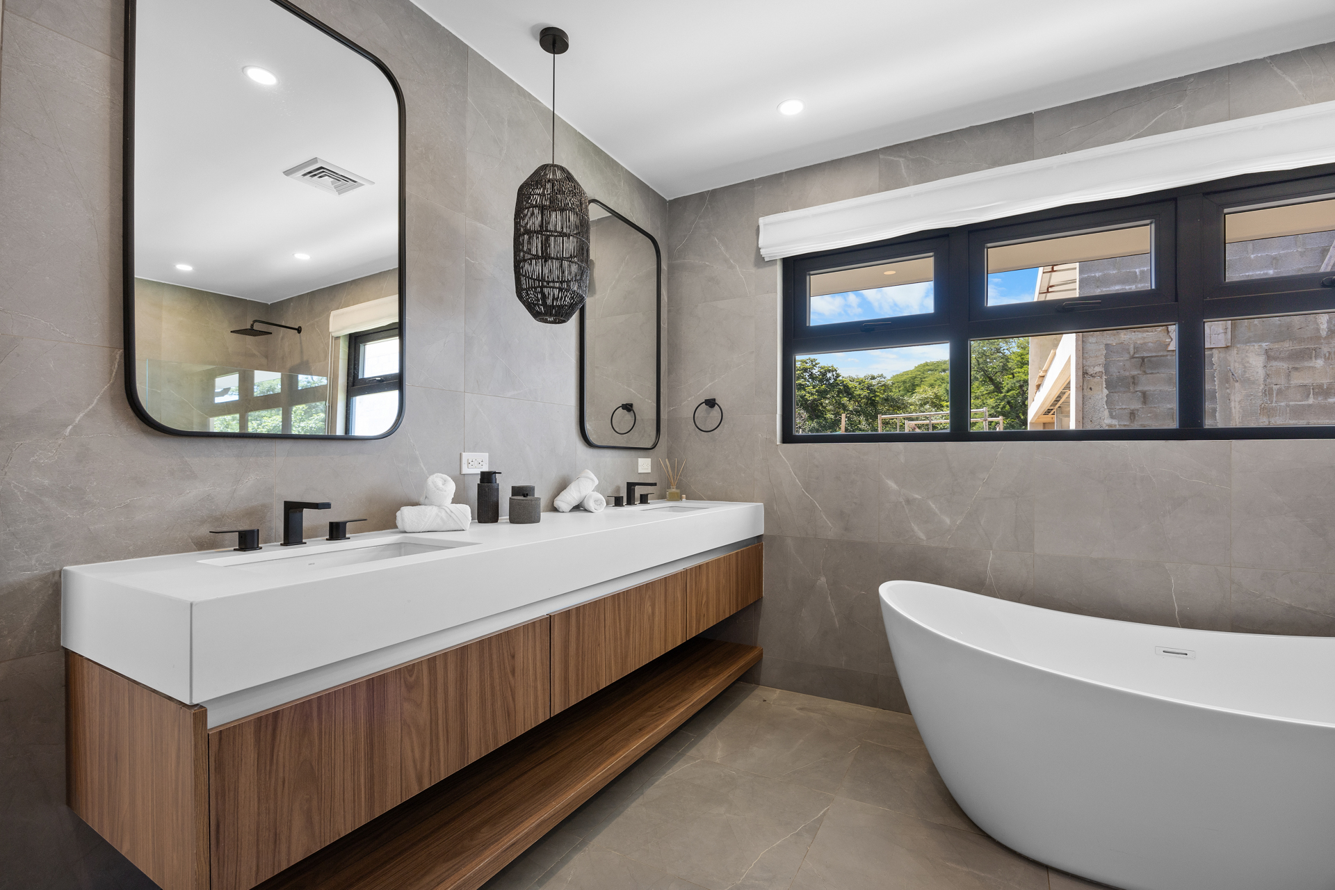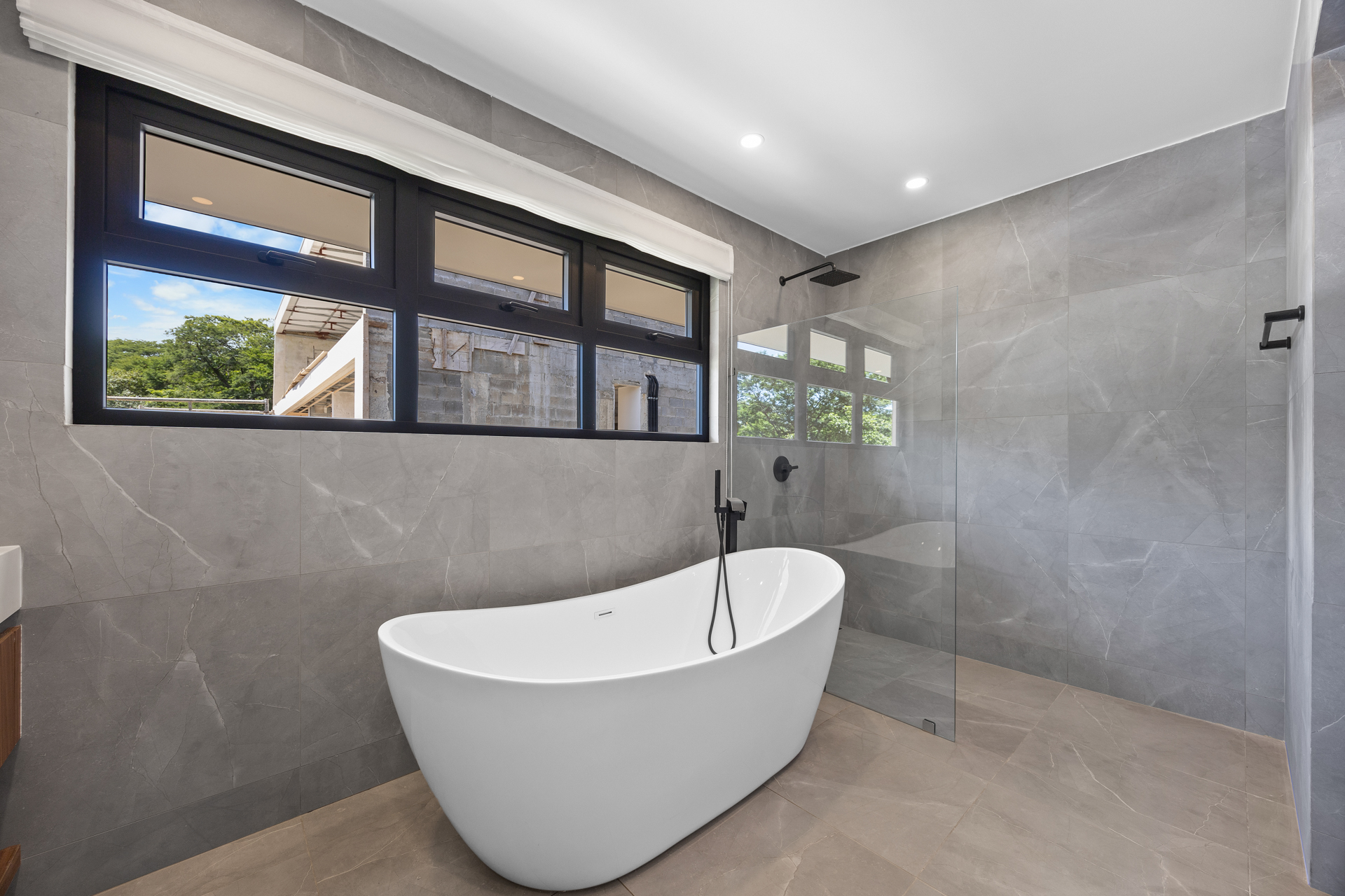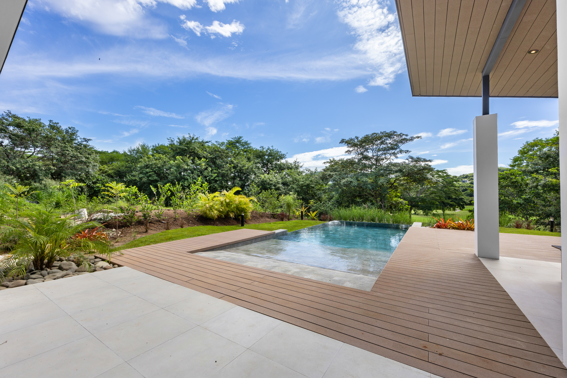 This brand-new Casa Aguasalada is a magnificent opportunity to own a piece of paradise! This luxurious residence is located in front of hole #16 of the renowned Robert Trent Jones II Golf Course at Reserva Conchal in the closest community to the beach. Aguasalada is a stunning 4-bedroom, 5 full bathroom and 2 half bath home that boasts 4769 sq ft of living space on 1321.56m2 of land and offers a modern tropical design with teak accents throughout, providing ample room for entertaining guests and family. The bedrooms are separated in their own wing, ensuring privacy, and the common areas are open and spacious. Each bedroom has its own ensuite bathroom so every guest is happy!