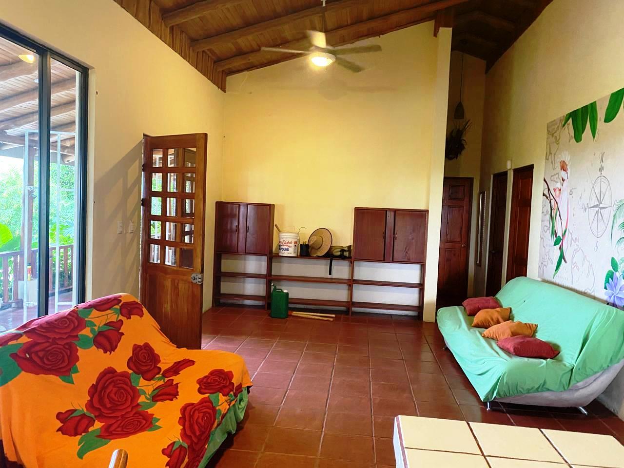 This large hilltop property, surrounded by farms and rural lands, has two complete good-sized homes, completely furnished. The road access is good all year round. It is near Playa Blanca, the white sand beach and near the ferry Playa Naranjo. One home is 1500sf with 3 bedrooms and 1 bath, the other home is amost 1500sf with 2 bedrooms and 2 baths. Each has a nice social living room and washing areas. There is room for additional construction or gardens and is perfect to enjoy country living with beautiful views. For the price, it is like buying the land with a house and getting another house for free.