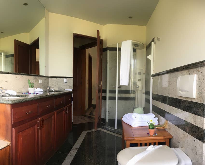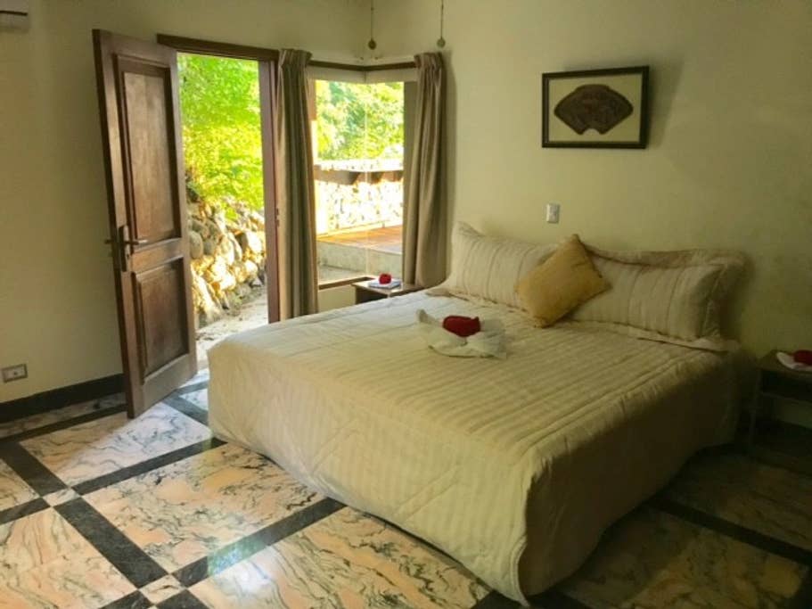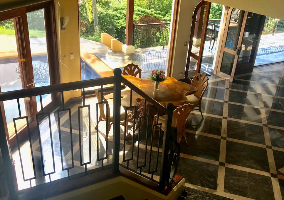 This well constructed 3 story home sits on 1.25 acres, leaving plenty of room to expand. It's foundation goes 30 ft deep into the ground and the home is in excellent condition. Built in 1997 and remodeled in 2013. You'll find imported granite and marble from Turkey, Bulgaria and India, tropical hardwood cabinetry and framework, German hardware, imported blue glazed rood tiles from Holland. With granite and marble surfaces and tropical native hardwoods featured throughout in columns, closets and the kitchen cabinets. You have walk in closets, en-suite bathrooms, fan and ACs in all 3 bedrooms and the 4th bedroom can be used as a children's room or office. There's a storage room off of the kitchen and great views from the 1st floor living room.