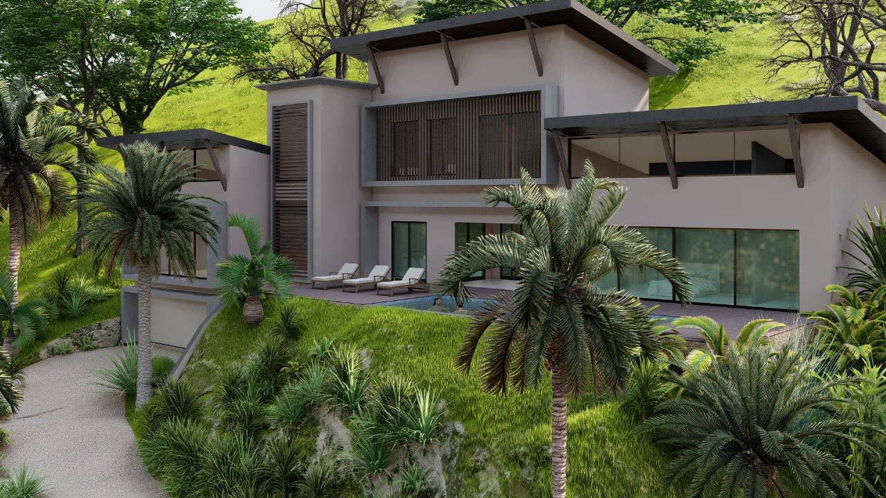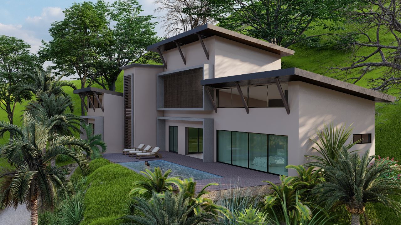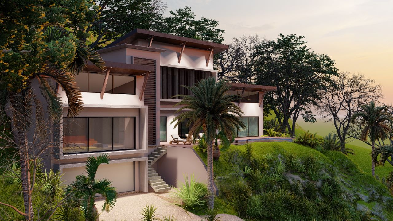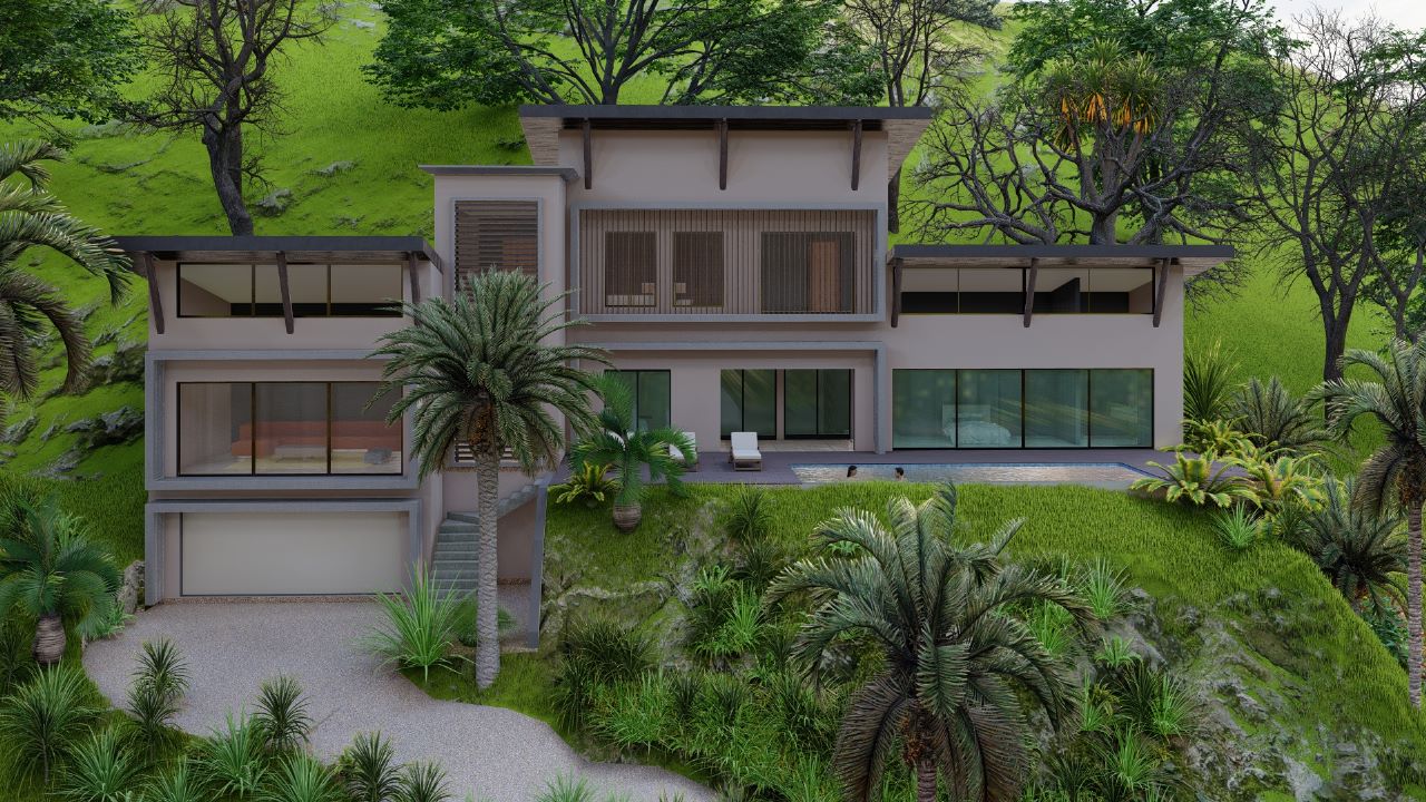 This modern ocean-view residence sits within Coco Bay Estates, an exclusive gated community in Playas del Coco. Designed with clean contemporary lines and positioned on a generous 3,221.57 m² (0.80-acre) lot, the home is under construction with full permits and a commitment to high-end craftsmanship. Its elevated setting captures panoramic views of the Pacific and the surrounding green hillsides of Coco and Ocotal.