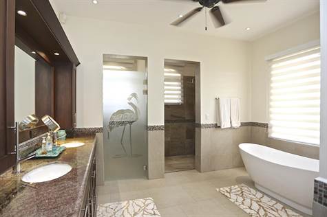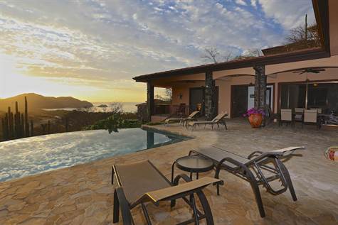 Be amazed by this One Level, 4 Bed, 4.5 Bath Luxury Home in Pacifico. Set on over a quarter acre private lot with a stunning ocean view this custom designed 1-level house was purposely built and fully furnished with extreme attention to detail using only top-quality materials, furnishings and fixtures. This open floor plan home is fitted with porcelain tile, granite counter tops, custom hardwood doors and cabinetry and energy efficient LED lighting. Upon entering the front door you are met with the stunning ocean view from the great room where you find the living room, dining area and kitchen which in turn open out onto the large covered terrace and ample sized ocean view infinity edge pool, an ocean view wet bar and BBQ that has room for lounging and a full outdoor dining area. The main master bedroom suite has vaulted recessed ceilings and a large walk-in closet with custom-made wardrobe cabinets along with a free standing tub and separate shower. The second master bedroom has an efficiency kitchen and a luxurious bathroom and private ocean view terrace. The third and fourth bedrooms have their own private bathrooms and custom wardrobe closets. The oversized 2-car attached garage provides ease of entrance past the ample laundry room. As an owner in Pacifico you enjoy many amenities like the private Beach Club, various Common Pools, Spa and fitness Center, Walking Trails and a Waterfall.