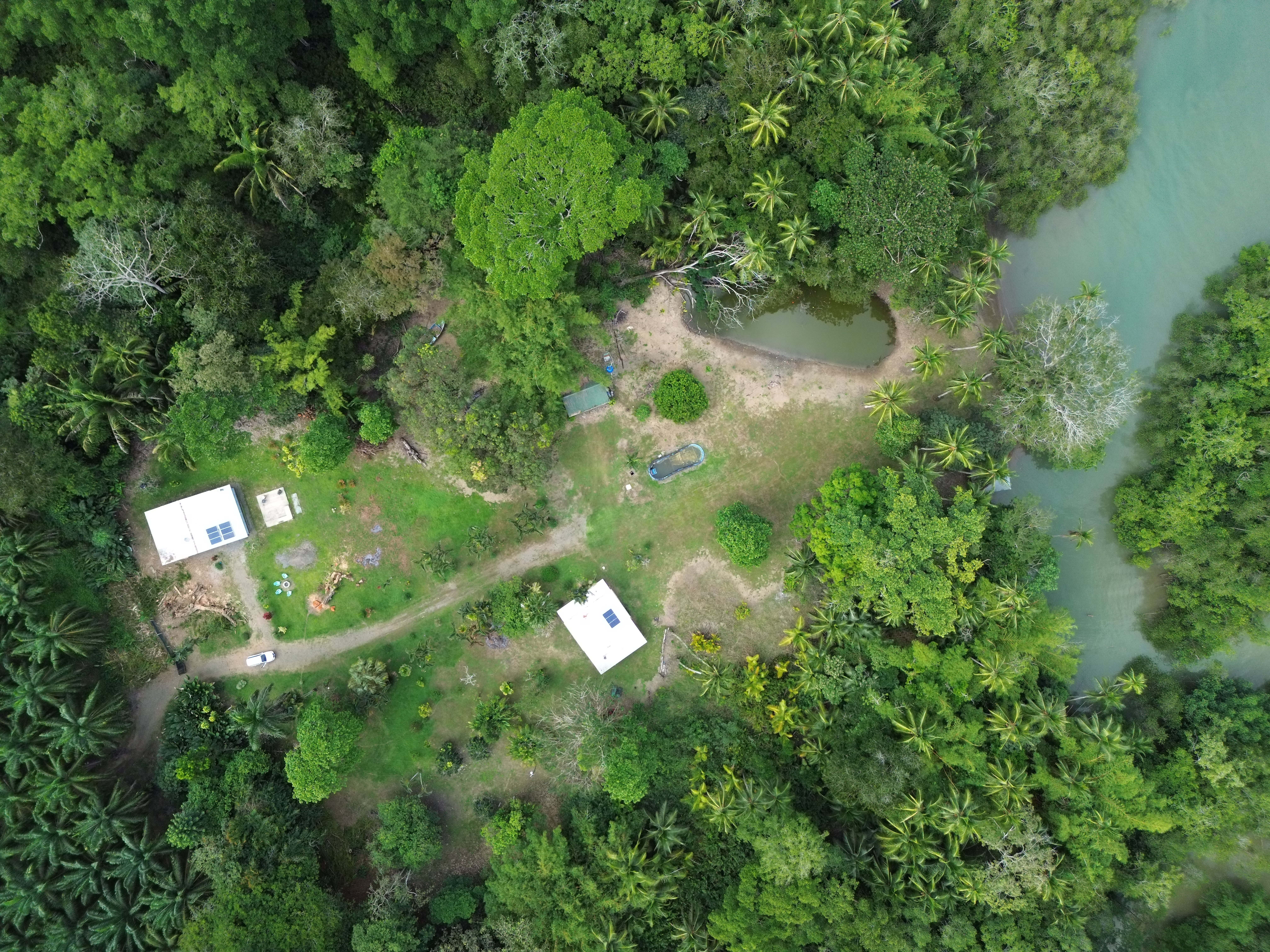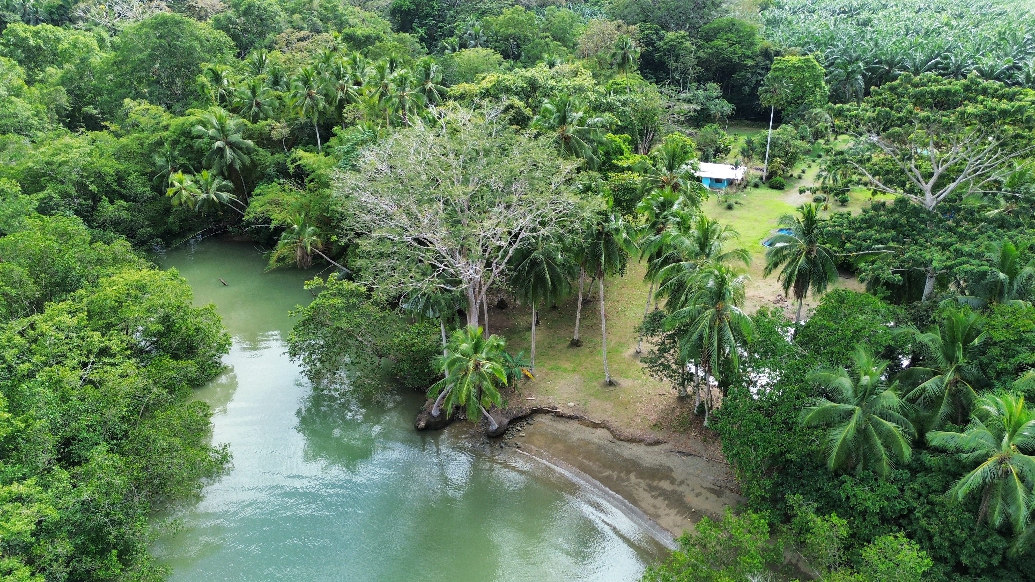 The river access is a major highlight for boating and fishing enthusiasts, providing easy navigation to the calm waters of the Golfo Dulce or through nearby mangroves and natural channels.