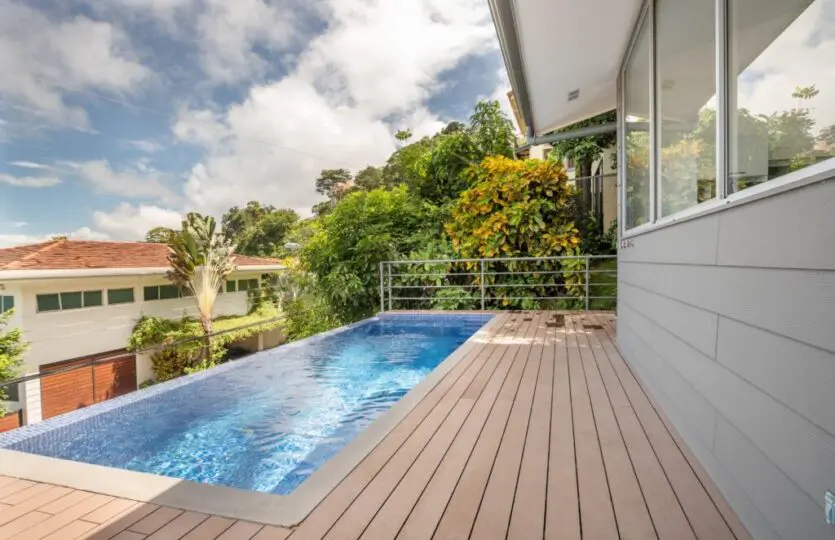 Step outside to the expansive deck, where an infinity pool invites you to relax and soak in the tranquil ocean views. This outdoor oasis is ideal for creating unforgettable memories with loved ones.